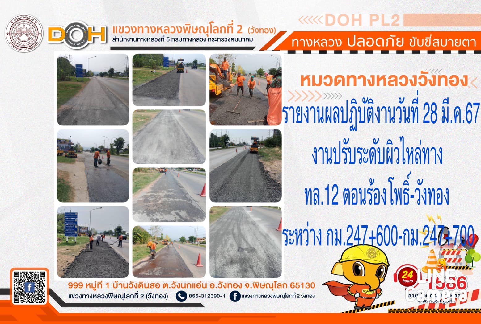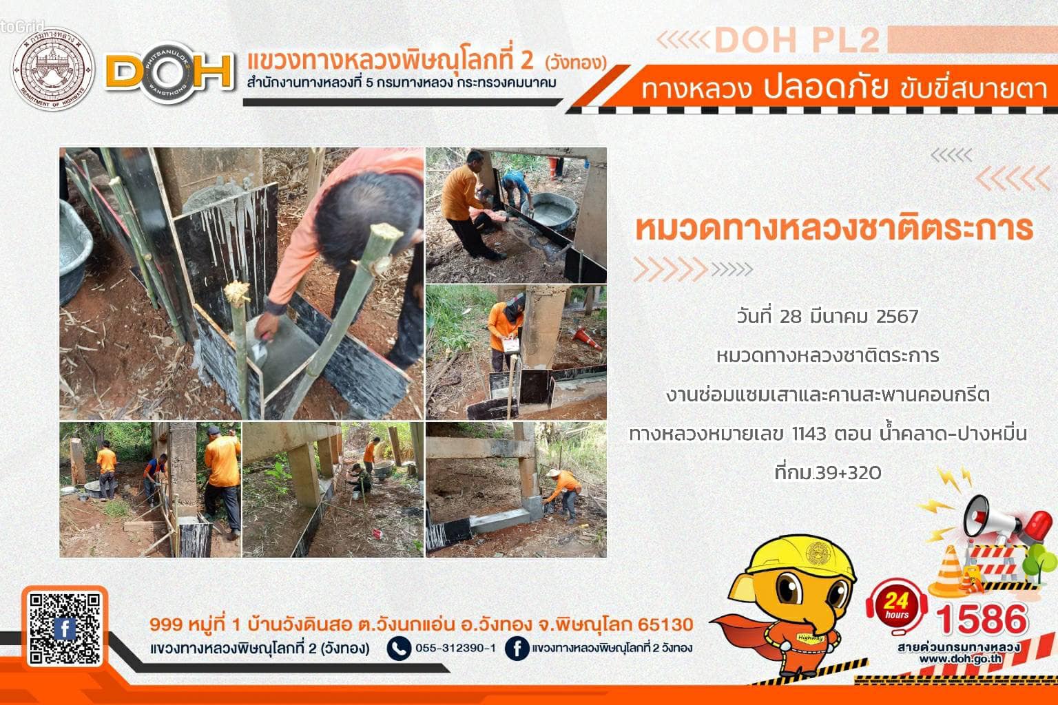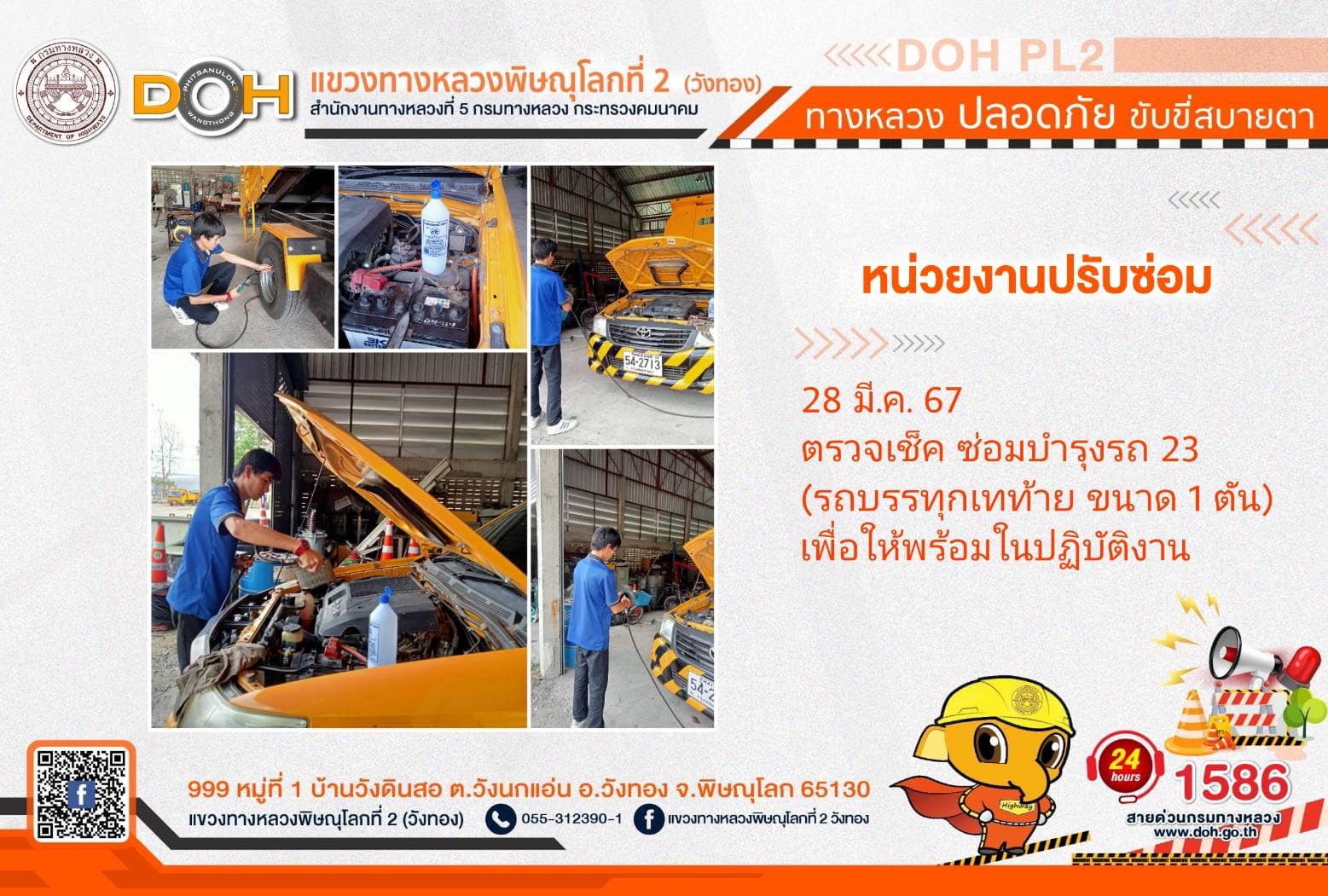 การปฏิบัติงานของ หมวดทางหลวง และ หน่วยงานในสังกัด เพื่ออำนวยความสะดวก และปลอดภัยให้กับประชาชนผู้ใช้เส้นทาง ประจำ วันพฤหัสบดีที่ 28 มีนาคม 2567