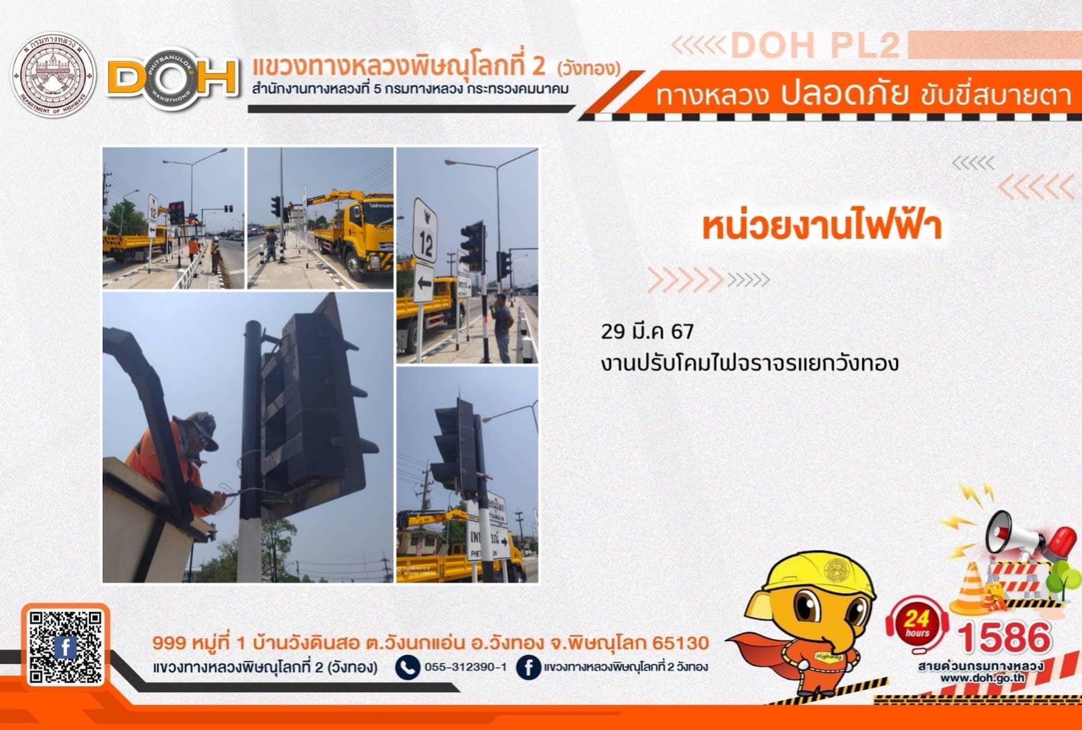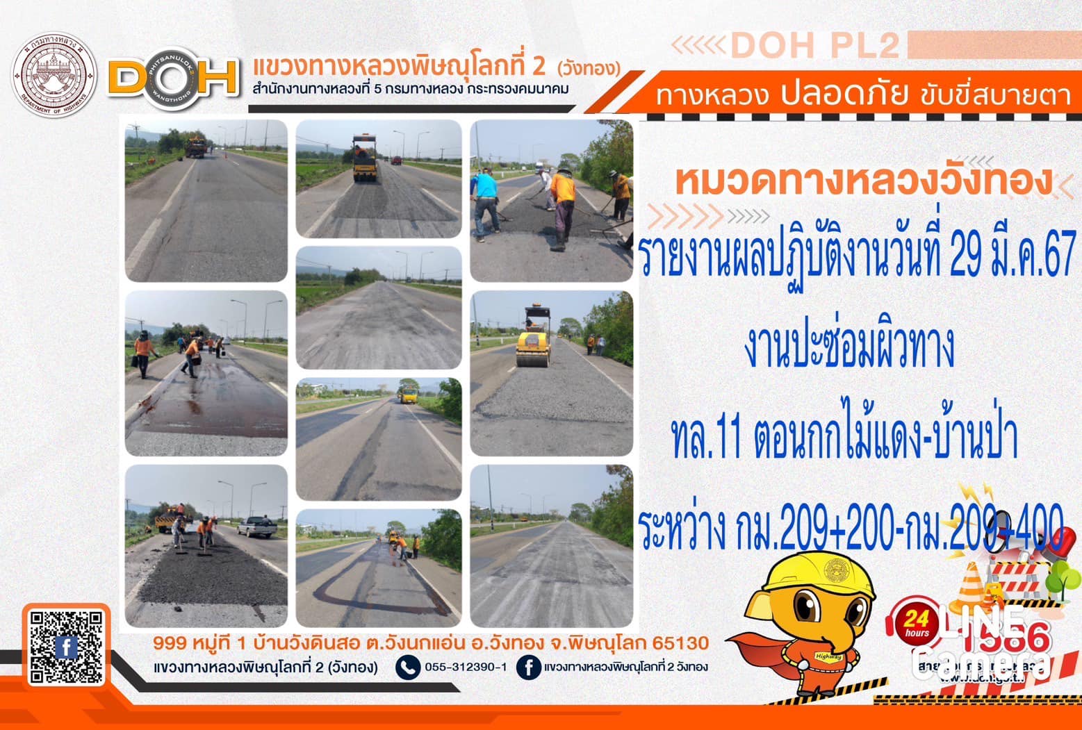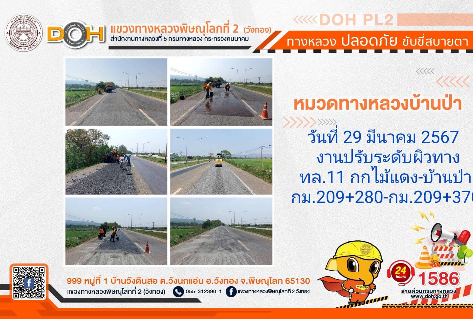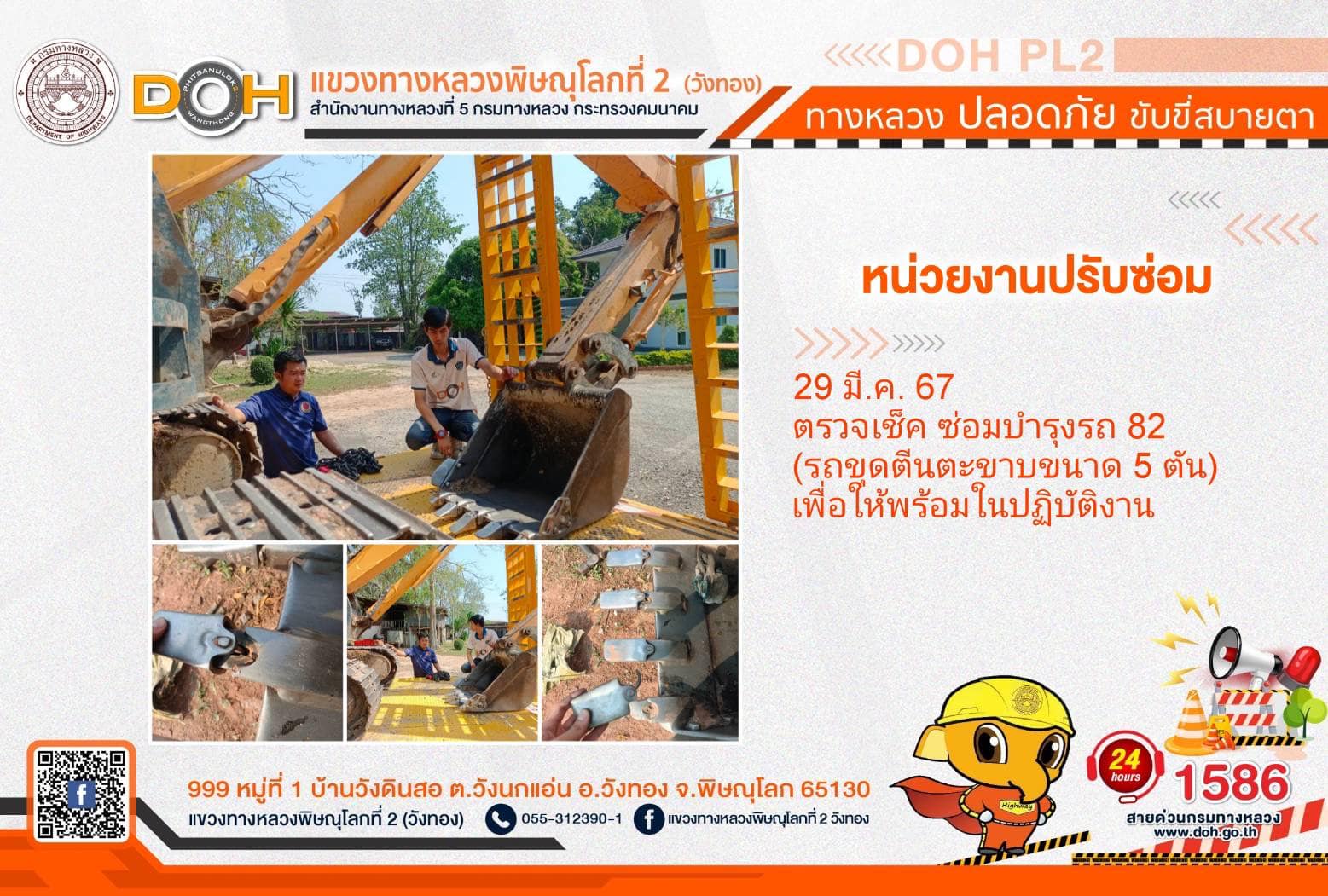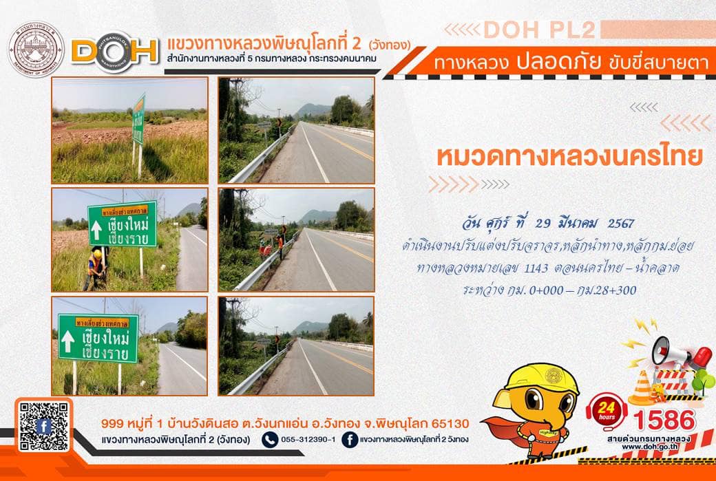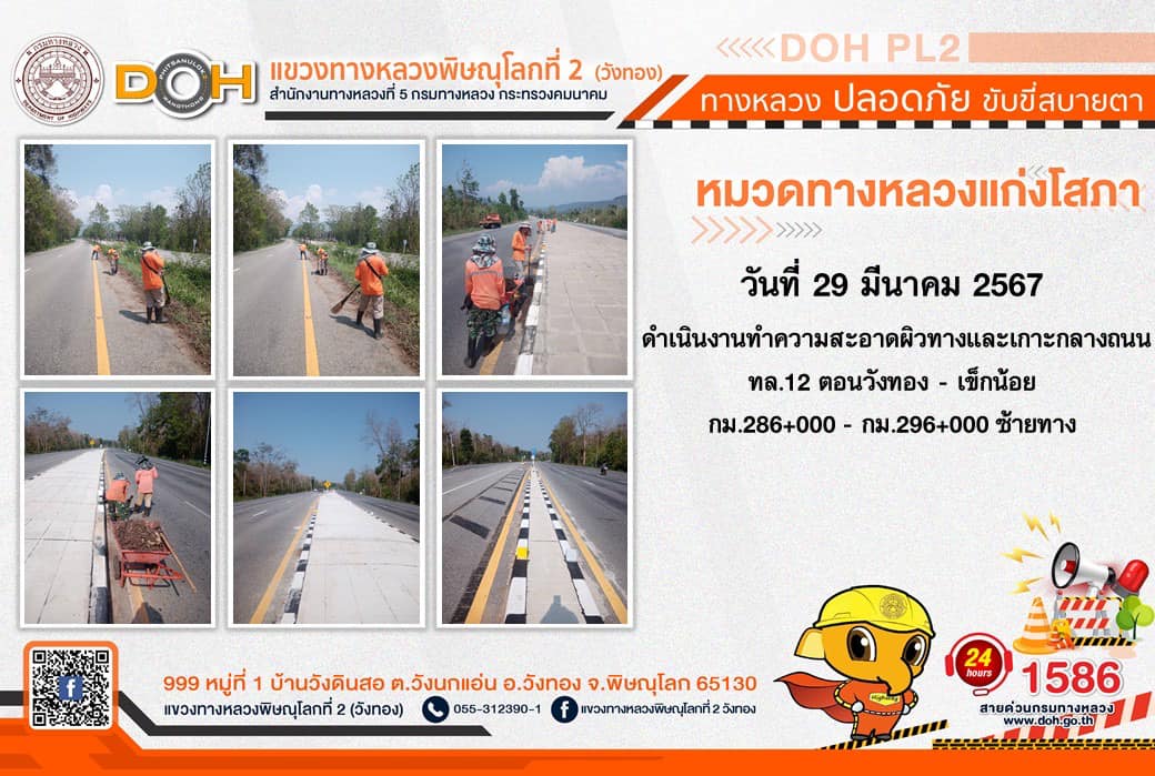 การปฏิบัติงานของ หมวดทางหลวง และ หน่วยงานในสังกัด เพื่ออำนวยความสะดวก และปลอดภัยให้กับประชาชนผู้ใช้เส้นทาง ประจำ วันศุกร์ที่ 29 มีนาคม 2567