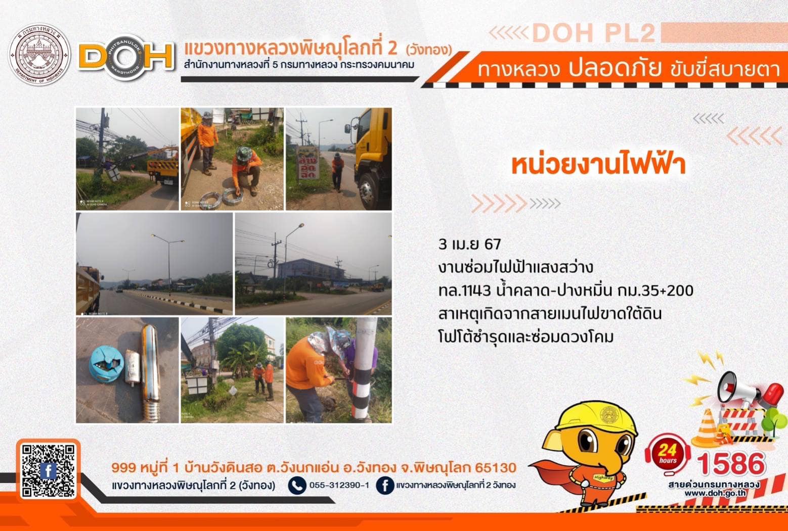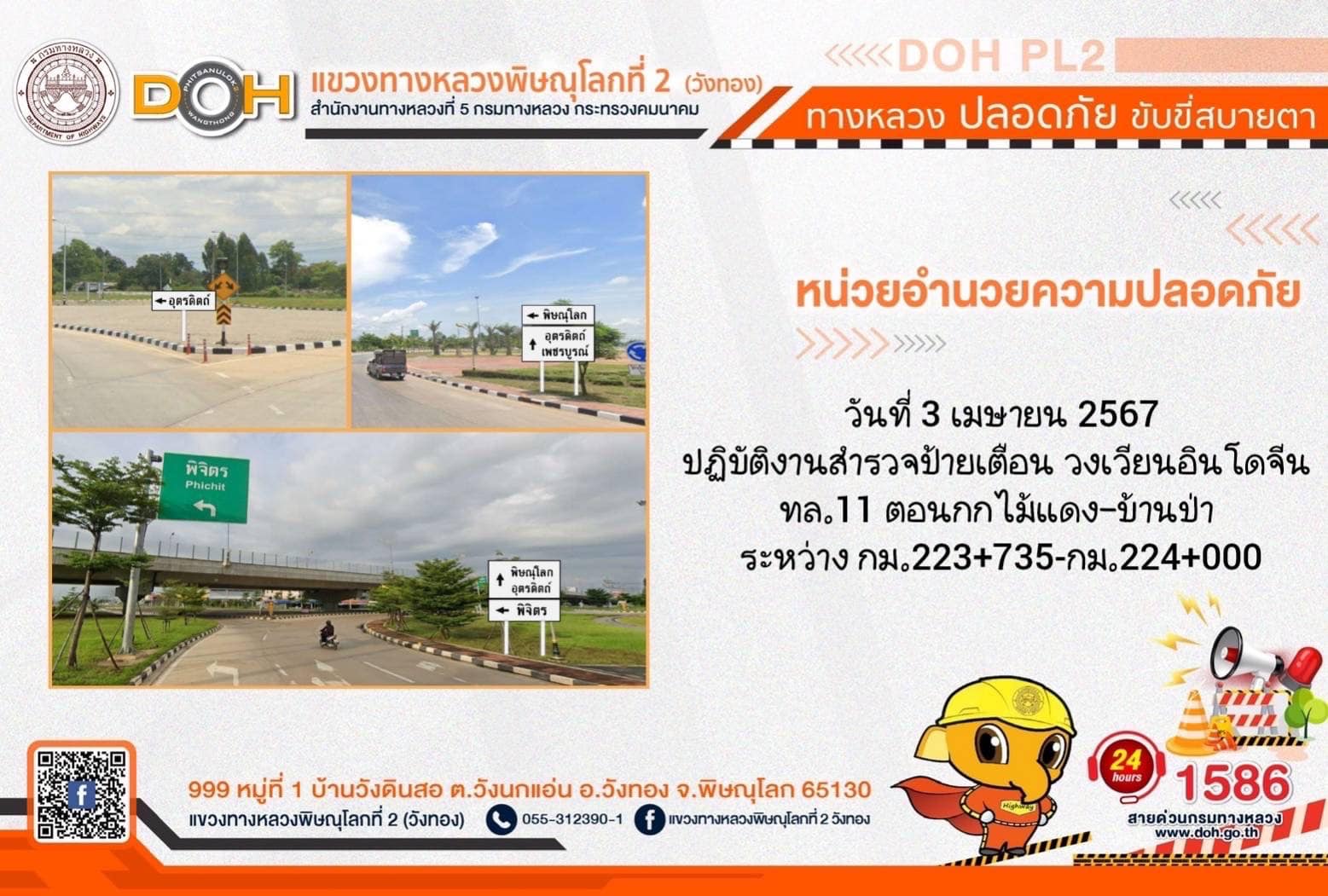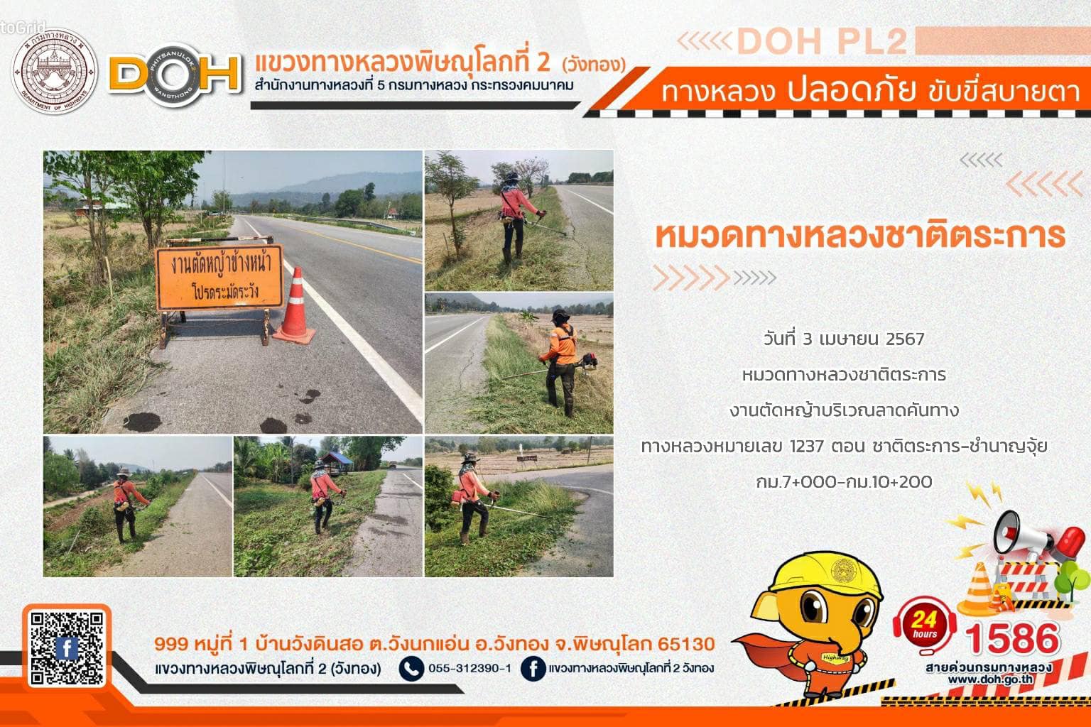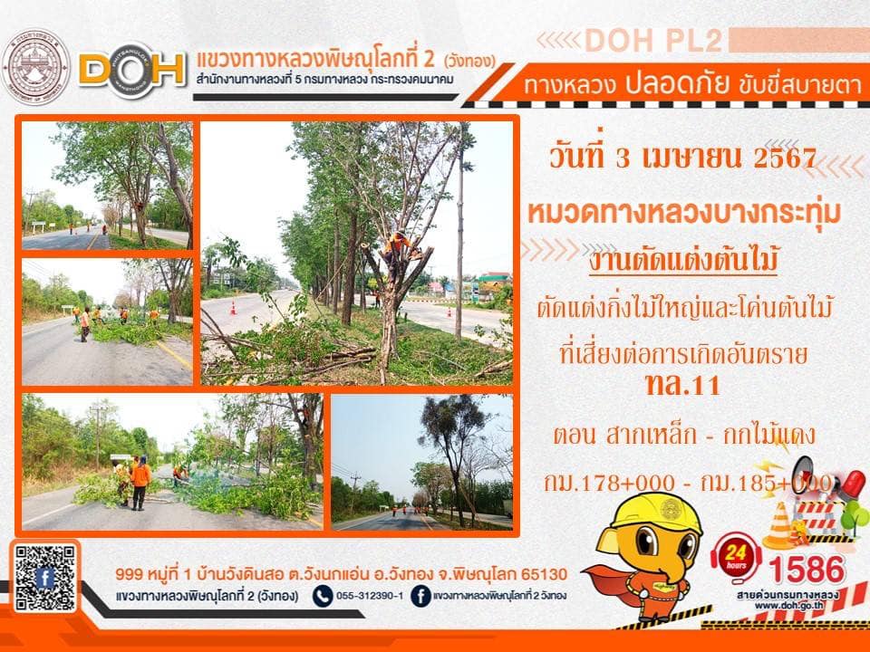 การปฏิบัติงานของ หมวดทางหลวง และ หน่วยงานในสังกัด เพื่ออำนวยความสะดวก และปลอดภัยให้กับประชาชนผู้ใช้เส้นทาง ประจำ วันพุธที่ 3 เมษายน 2567