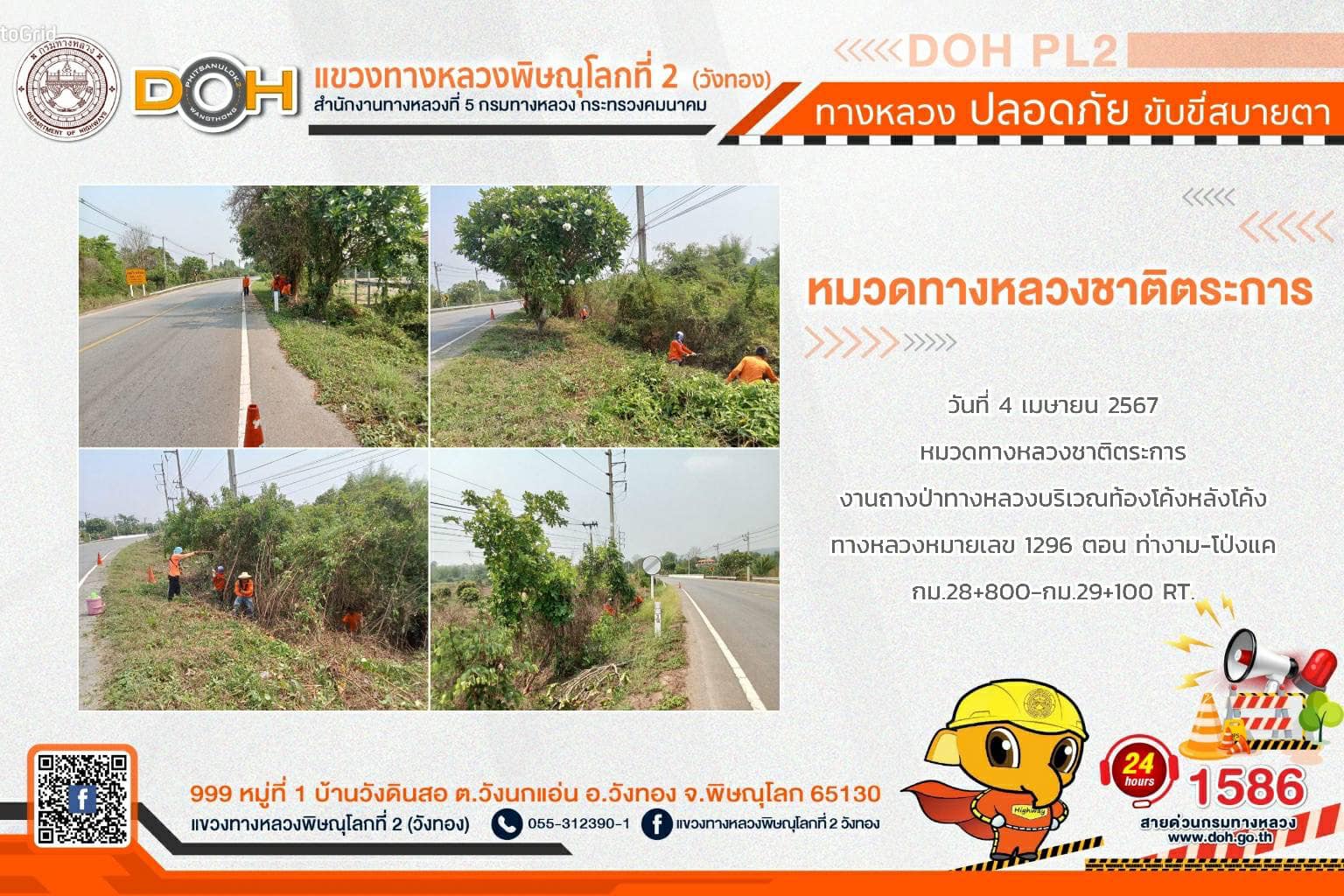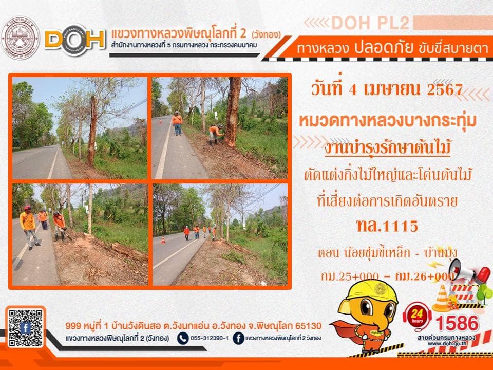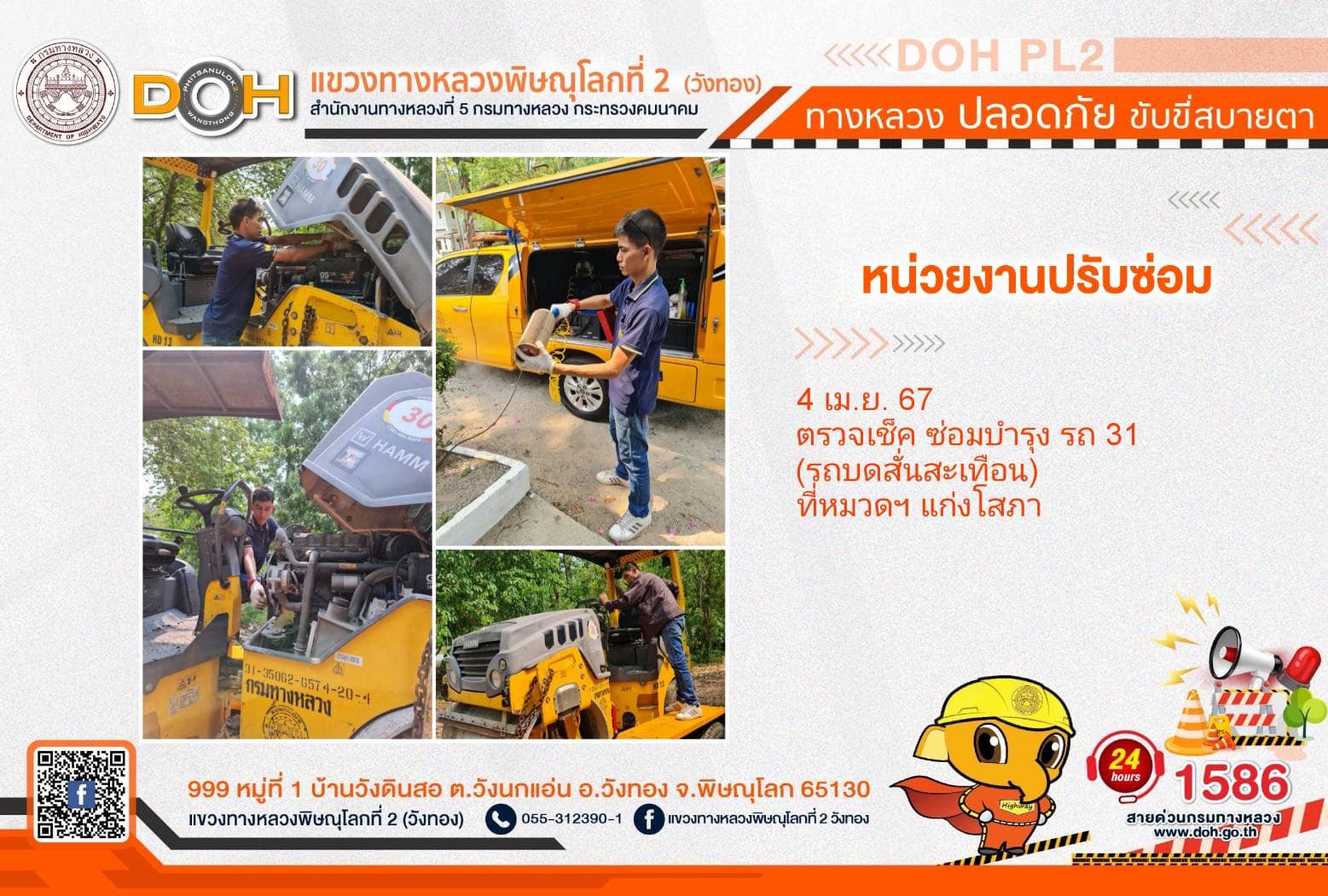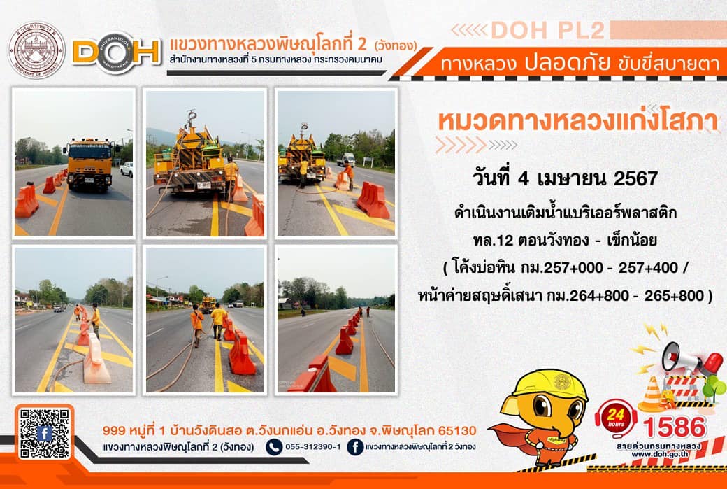 การปฏิบัติงานของ หมวดทางหลวง และ หน่วยงานในสังกัด เพื่ออำนวยความสะดวก และปลอดภัยให้กับประชาชนผู้ใช้เส้นทาง ประจำ วันพฤหัสบดีที่ 4 เมษายน 2567