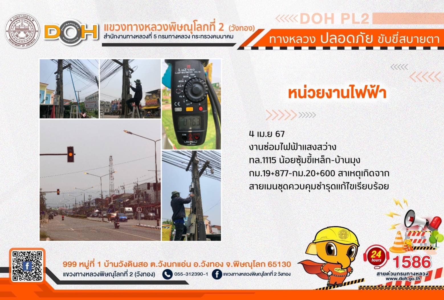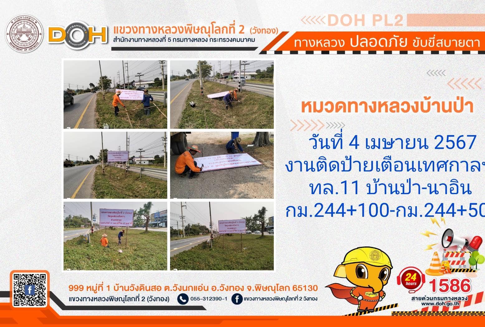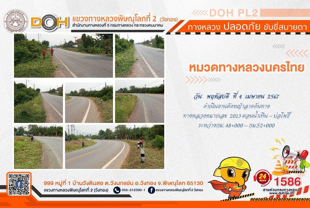 การปฏิบัติงานของ หมวดทางหลวง และ หน่วยงานในสังกัด เพื่ออำนวยความสะดวก และปลอดภัยให้กับประชาชนผู้ใช้เส้นทาง ประจำ วันพฤหัสบดีที่ 4 เมษายน 2567
