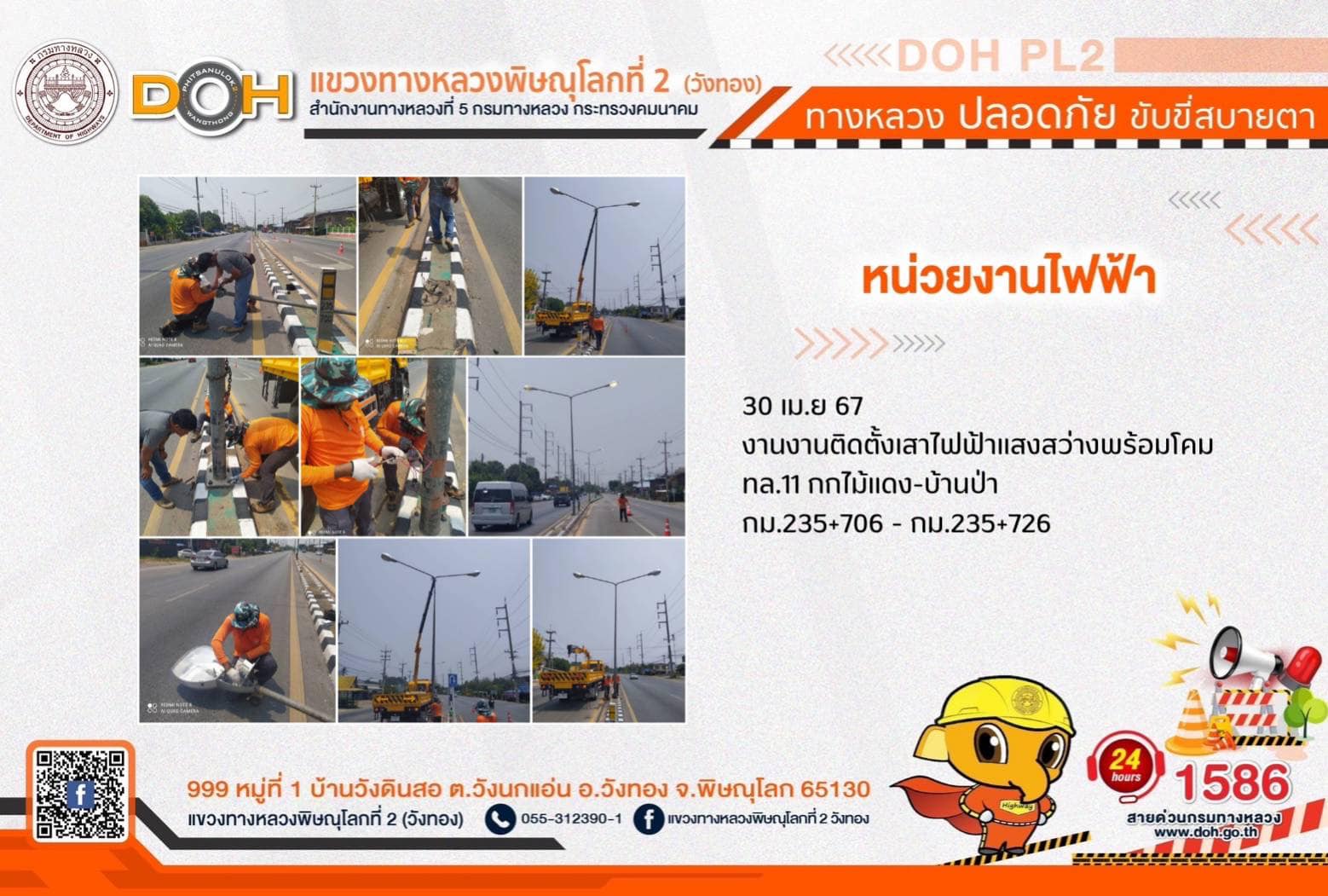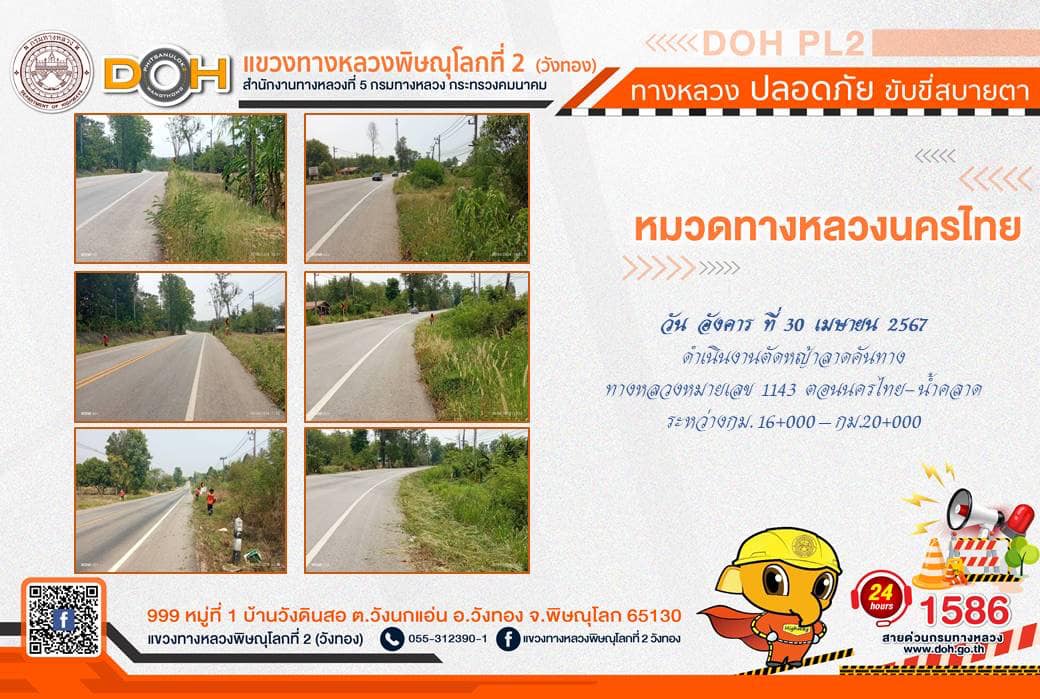 การปฏิบัติงานของ หมวดทางหลวง และ หน่วยงานในสังกัด เพื่ออำนวยความสะดวก และปลอดภัยให้กับประชาชนผู้ใช้เส้นทาง ประจำ วันอังคารที่ 30 เมษายน 2567