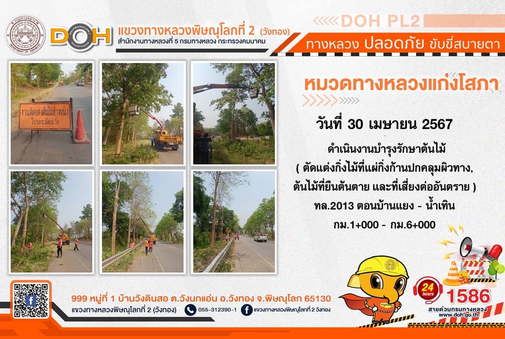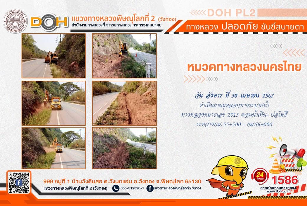 การปฏิบัติงานของ หมวดทางหลวง และ หน่วยงานในสังกัด เพื่ออำนวยความสะดวก และปลอดภัยให้กับประชาชนผู้ใช้เส้นทาง ประจำ วันอังคารที่ 30 เมษายน 2567