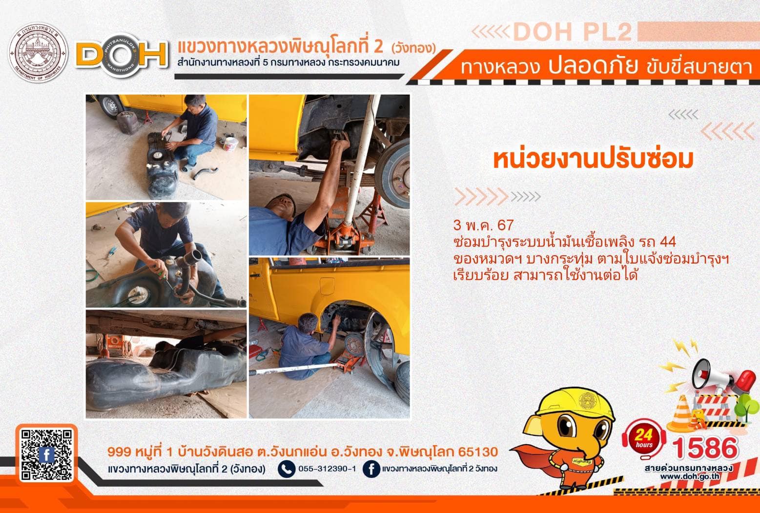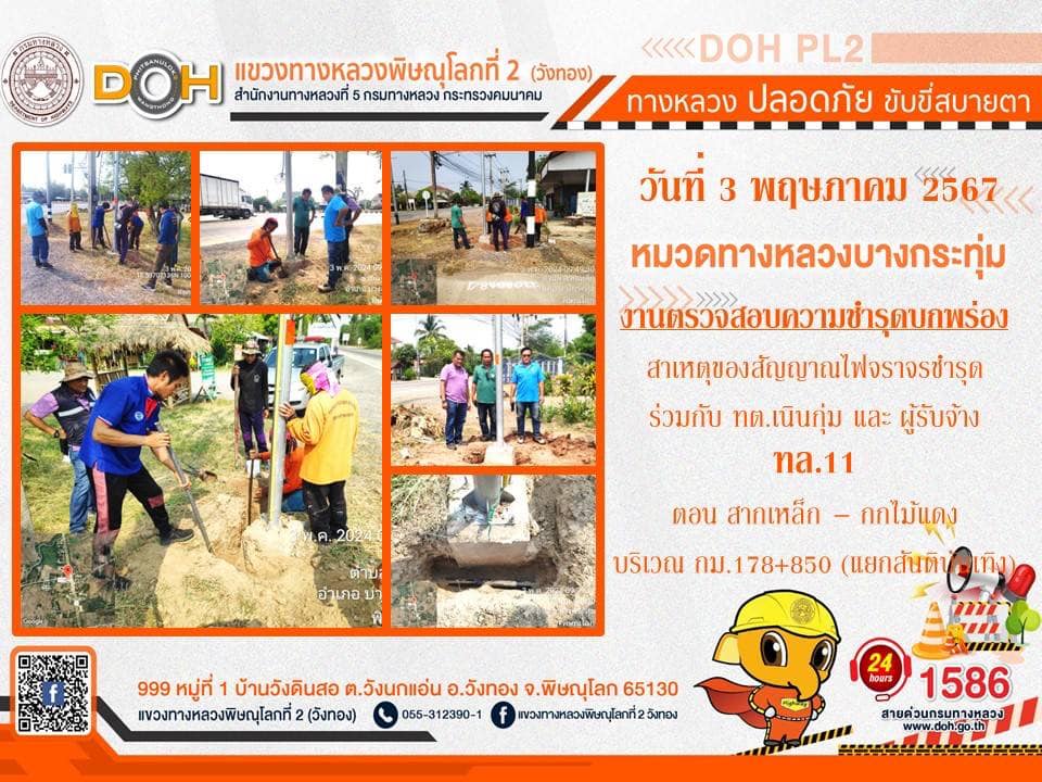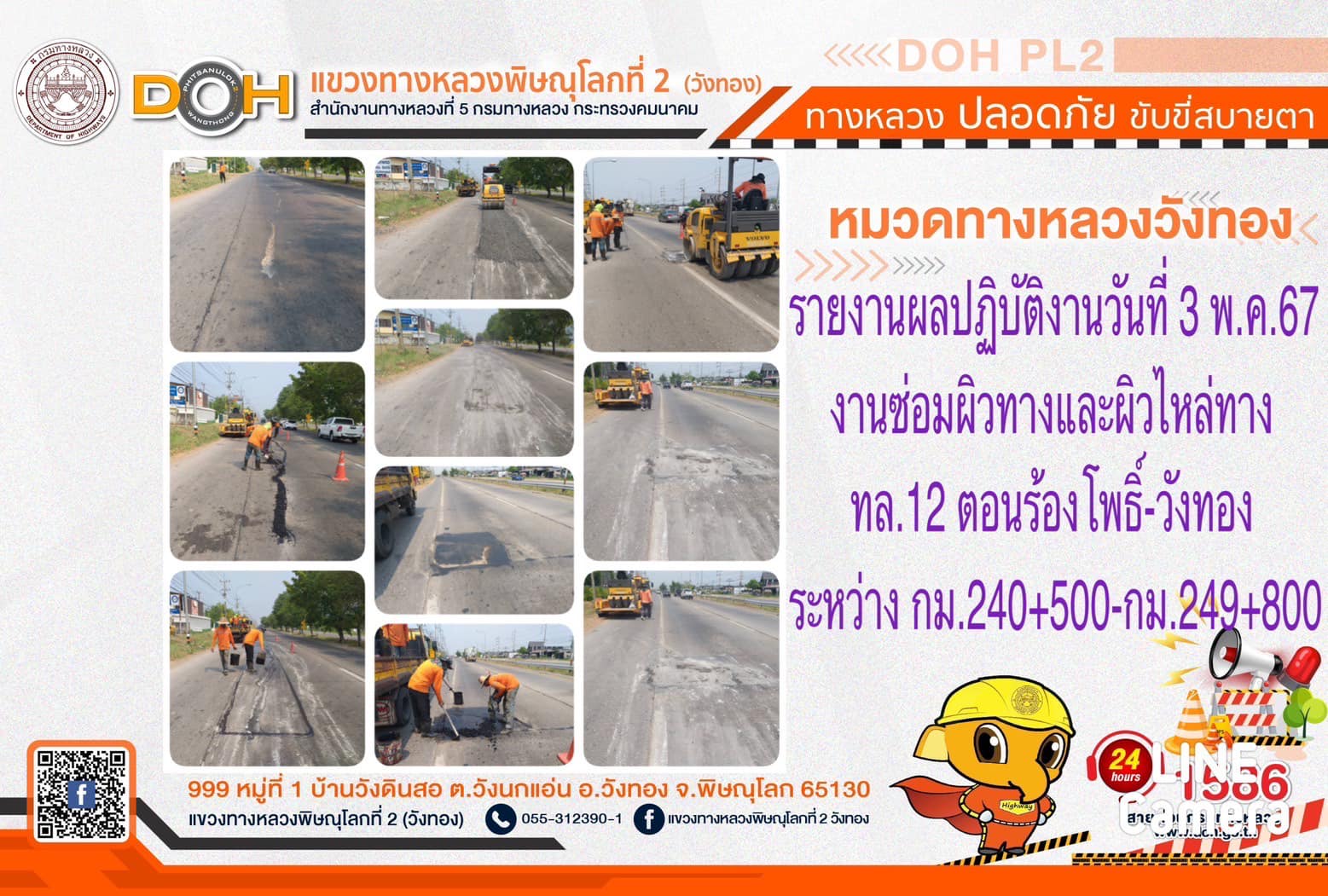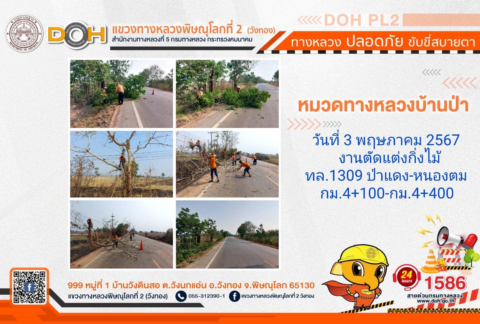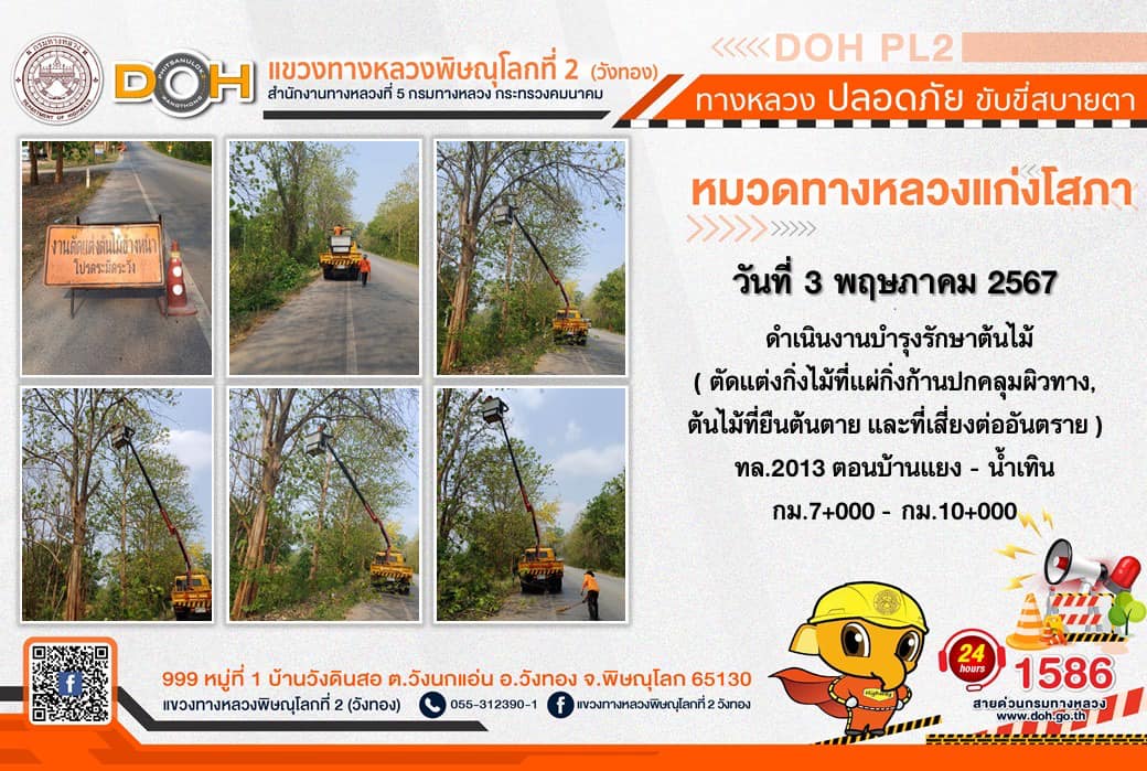 การปฏิบัติงานของ หมวดทางหลวง และ หน่วยงานในสังกัด เพื่ออำนวยความสะดวก และปลอดภัยให้กับประชาชนผู้ใช้เส้นทาง ประจำ วันศุกร์ที่ 3 พฤษภาคม 2567