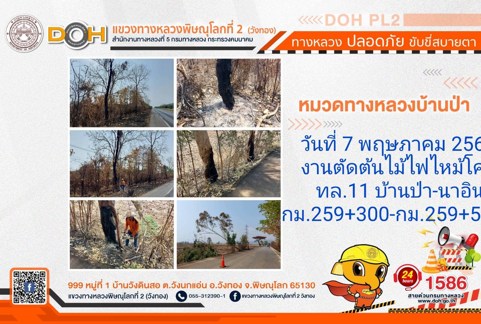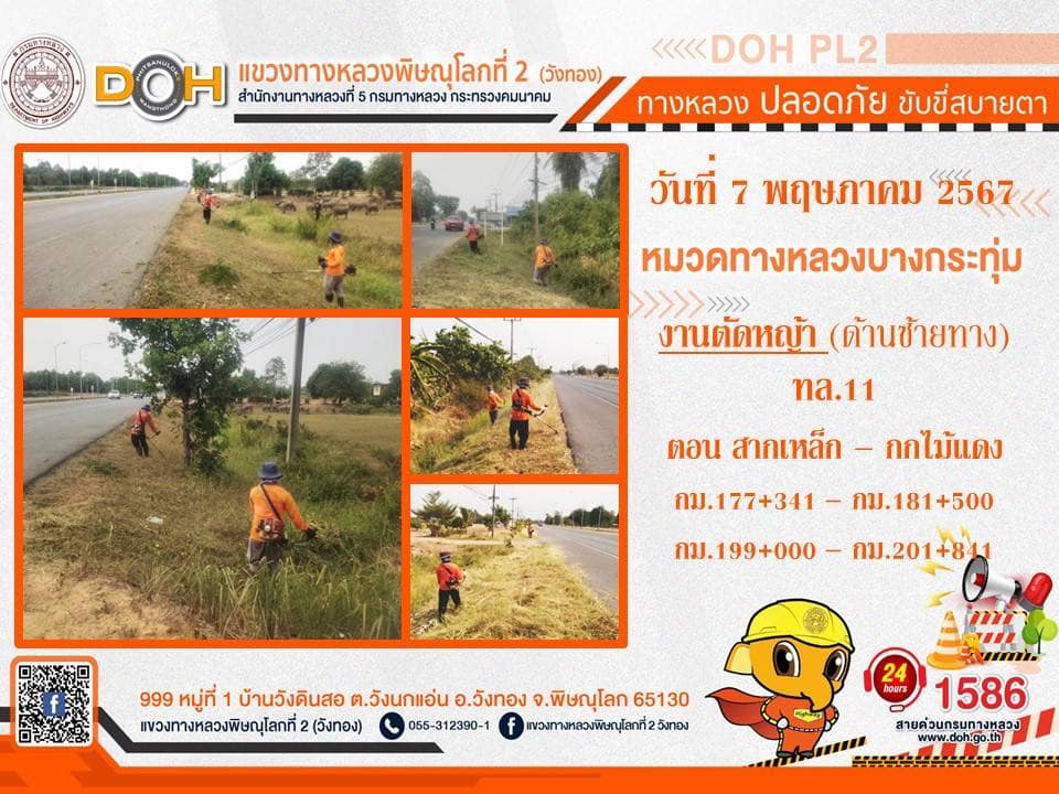 การปฏิบัติงานของ หมวดทางหลวง และ หน่วยงานในสังกัด เพื่ออำนวยความสะดวก และปลอดภัยให้กับประชาชนผู้ใช้เส้นทาง ประจำ วันอังคารที่ 7 พฤษภาคม 2567