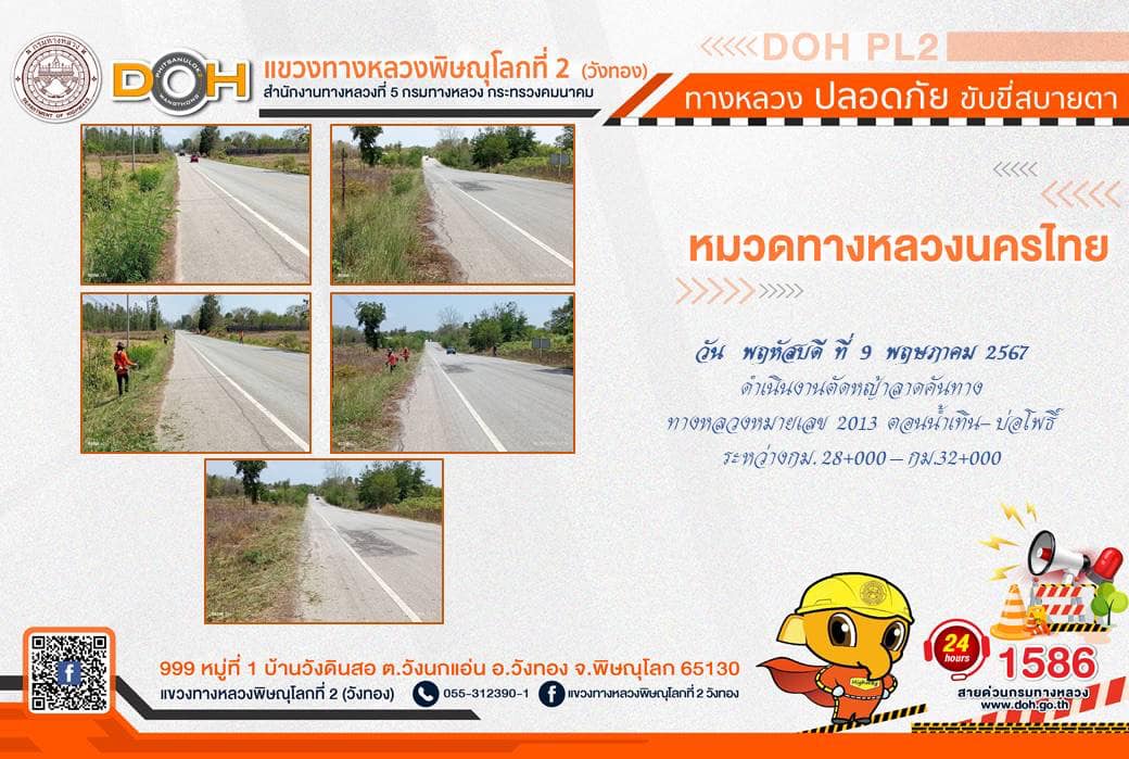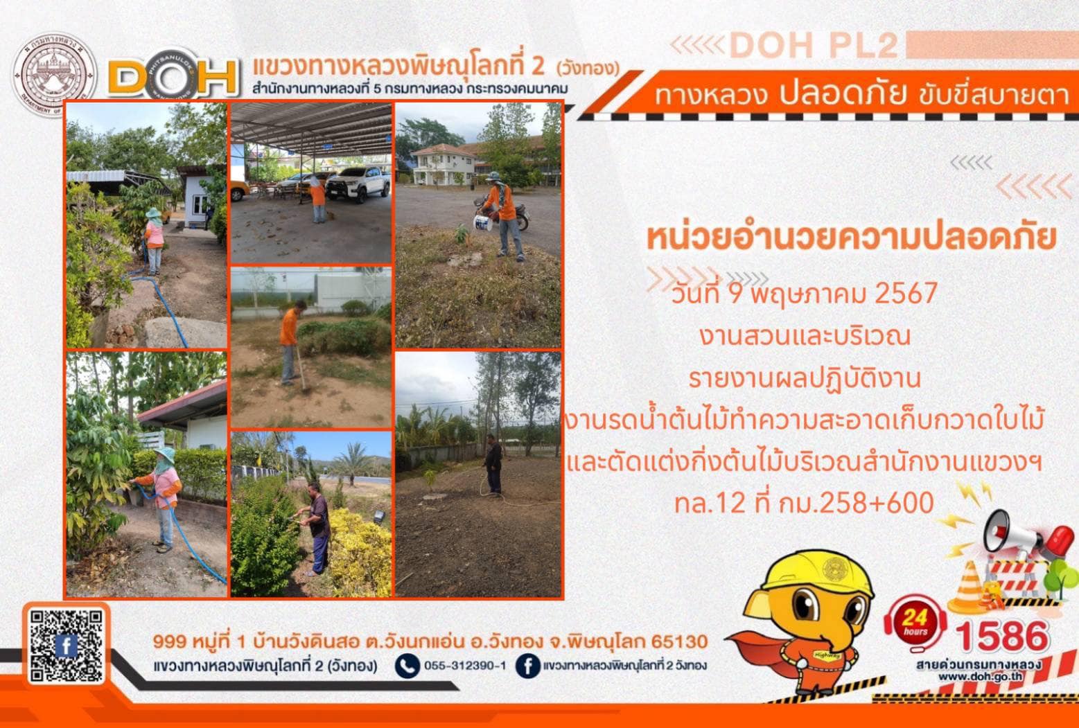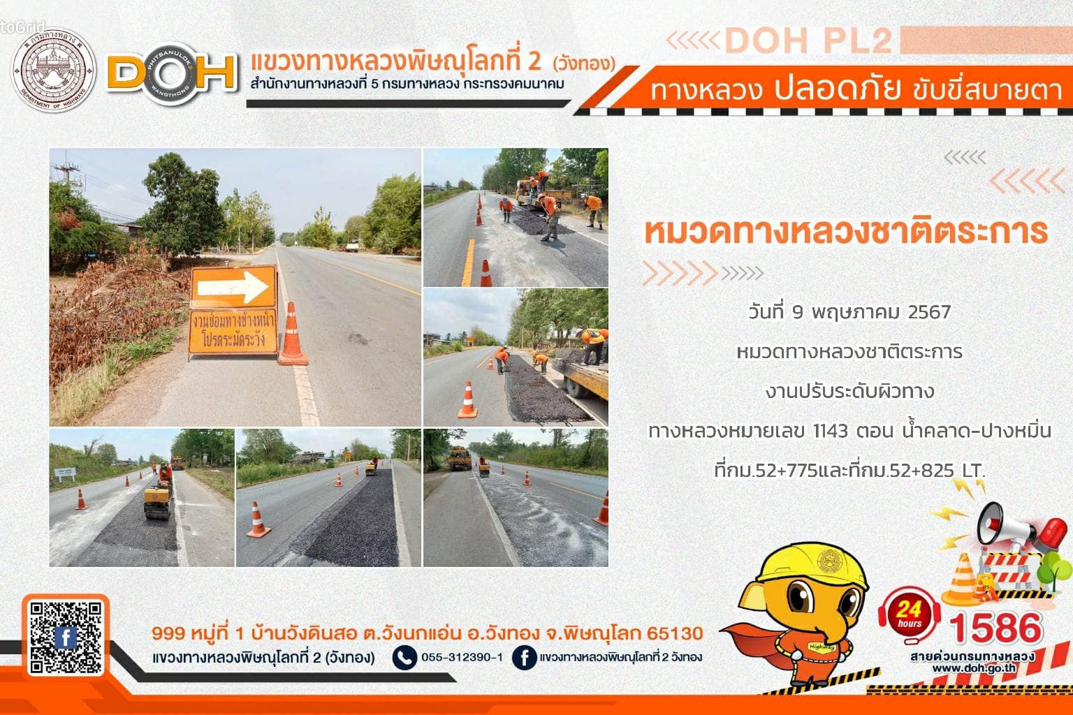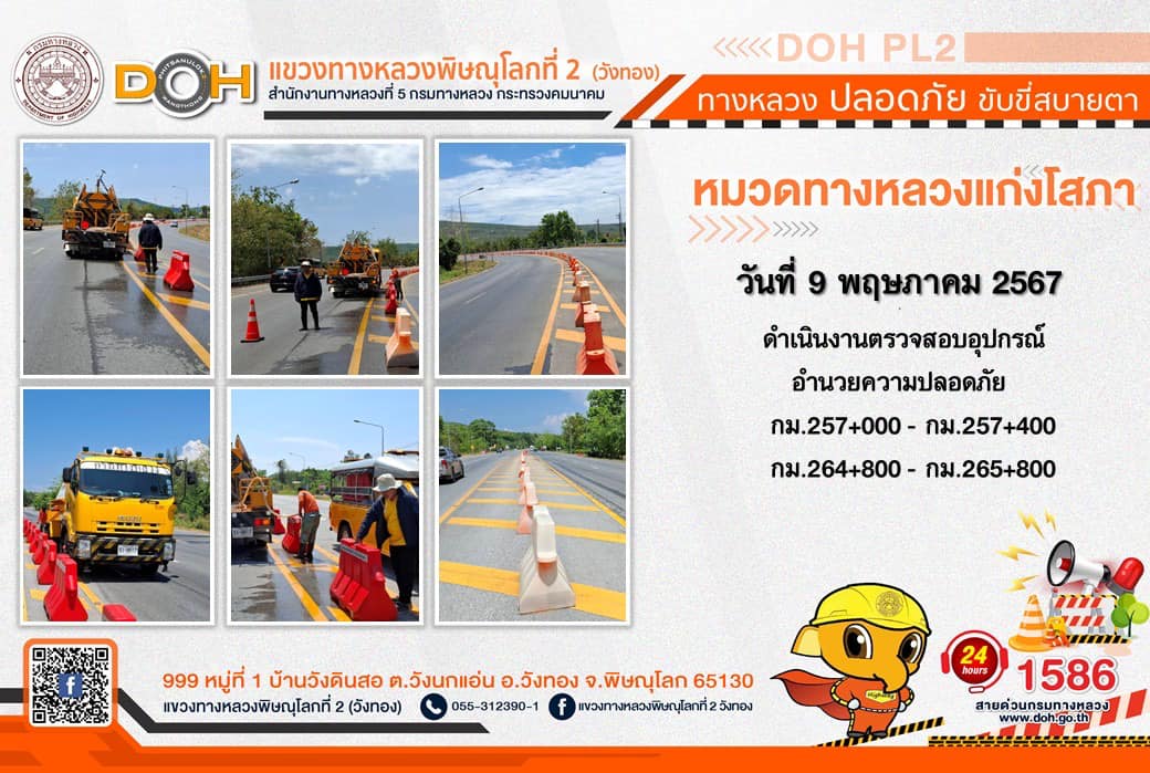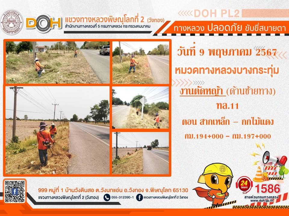 การปฏิบัติงานของ หมวดทางหลวง และ หน่วยงานในสังกัด เพื่ออำนวยความสะดวก และปลอดภัยให้กับประชาชนผู้ใช้เส้นทาง ประจำ วันพฤหัสบดีที่ 9 พฤษภาคม 2567