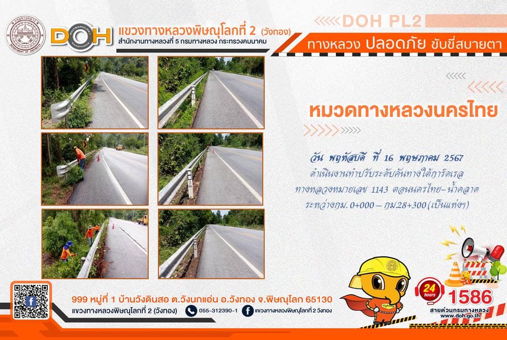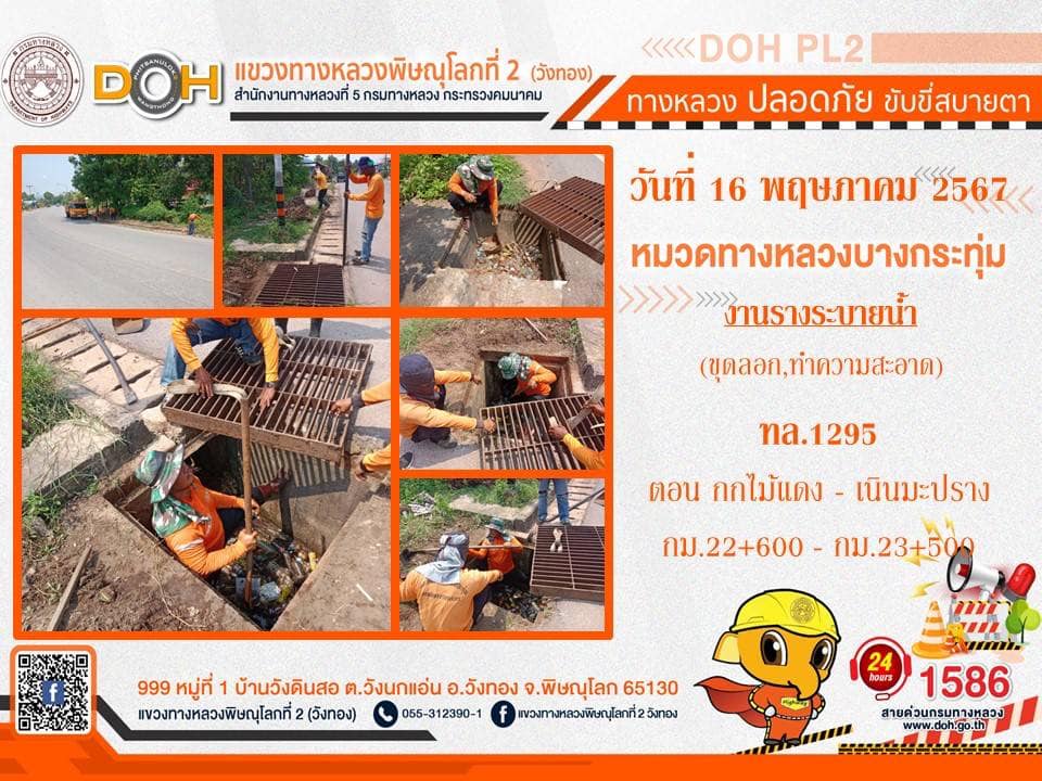 การปฏิบัติงานของ หมวดทางหลวง และ หน่วยงานในสังกัด เพื่ออำนวยความสะดวก และปลอดภัยให้กับประชาชนผู้ใช้เส้นทาง ประจำ วันพฤหัสบดีที่ 16 พฤษภาคม 2567