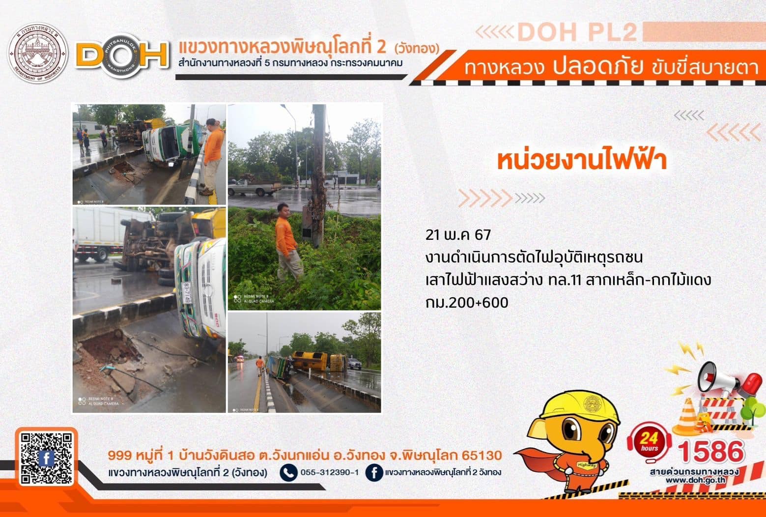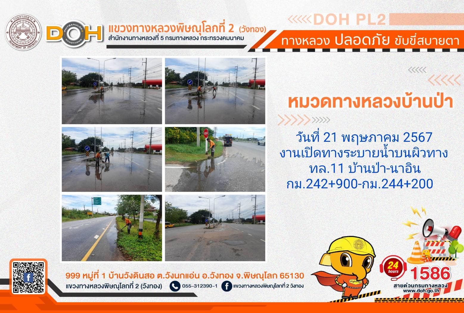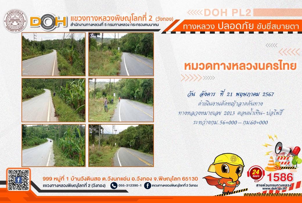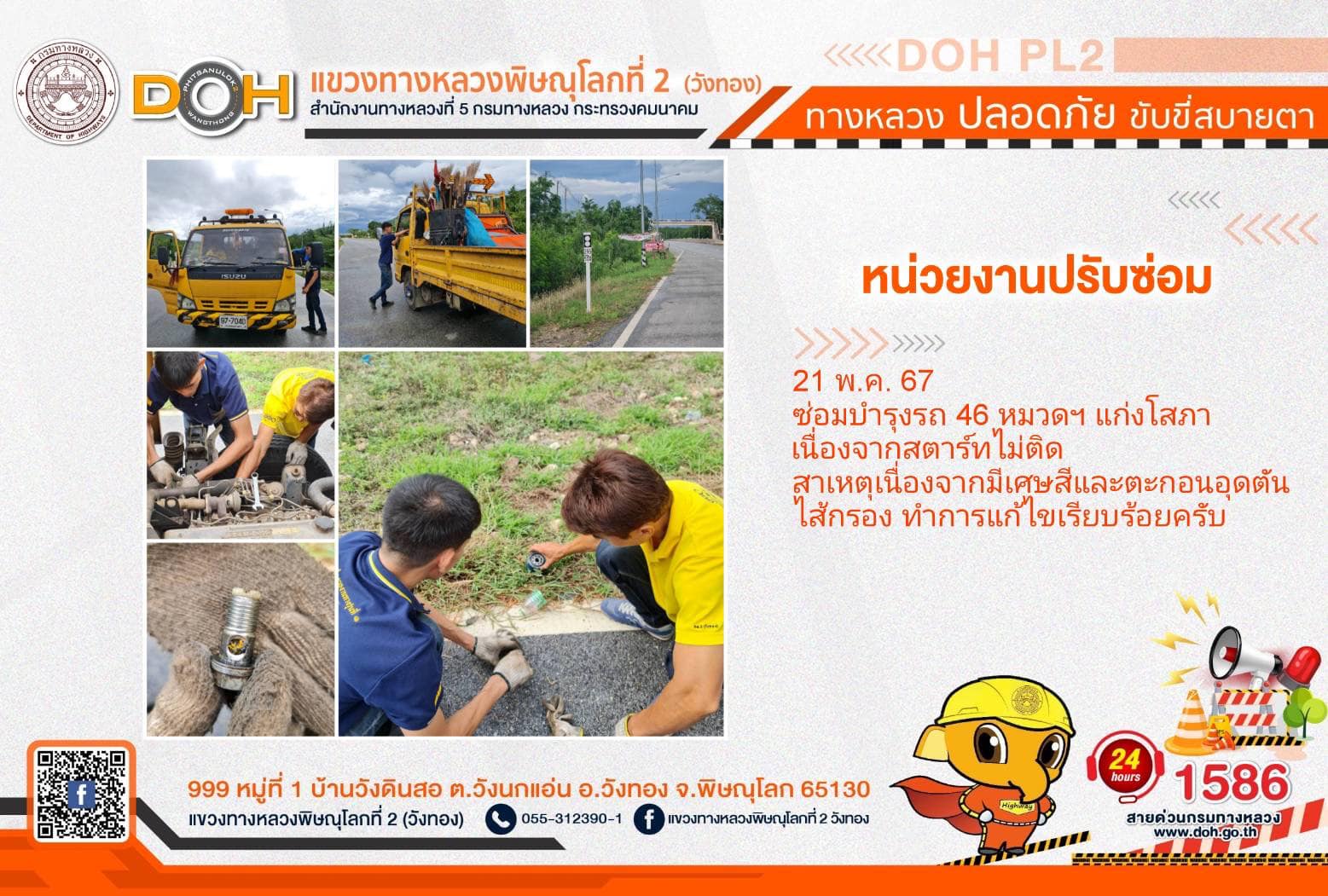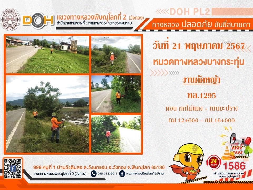 การปฏิบัติงานของ หมวดทางหลวง และ หน่วยงานในสังกัด เพื่ออำนวยความสะดวก และปลอดภัยให้กับประชาชนผู้ใช้เส้นทาง ประจำ วันอังคารที่ 21 พฤษภาคม 2567
