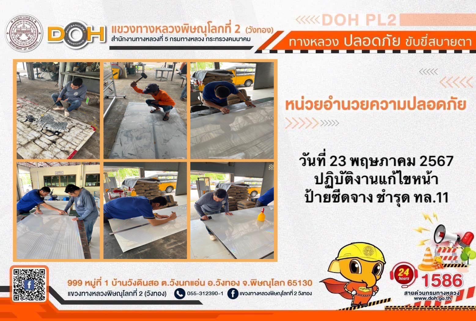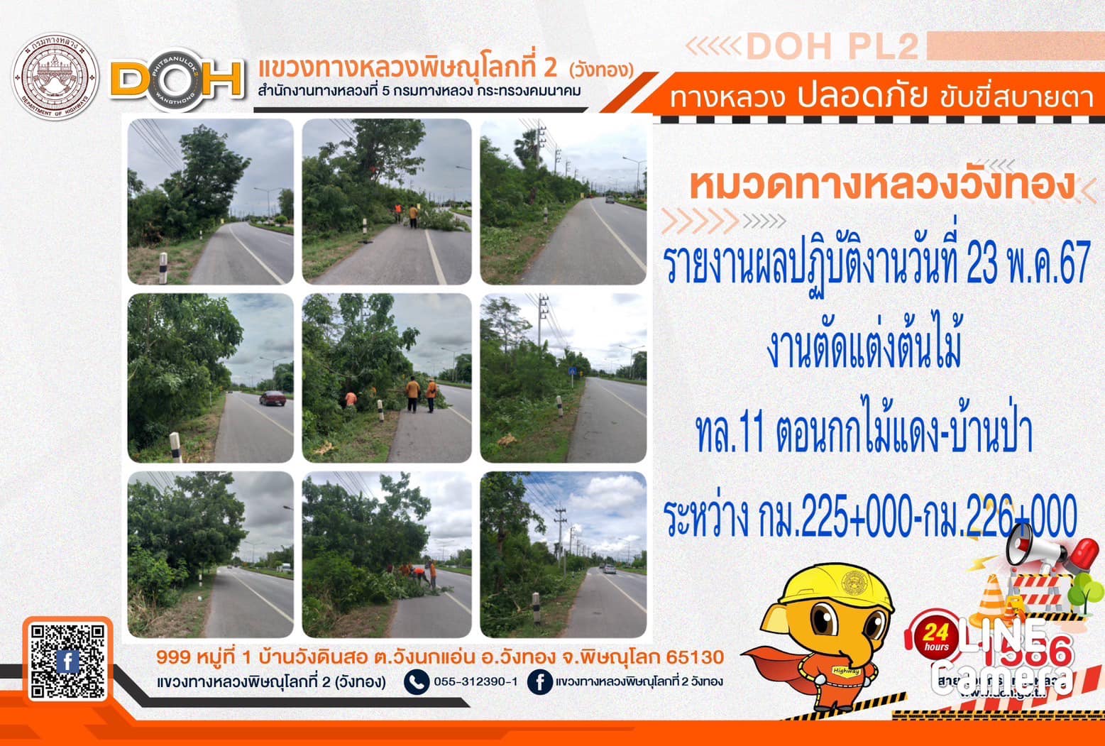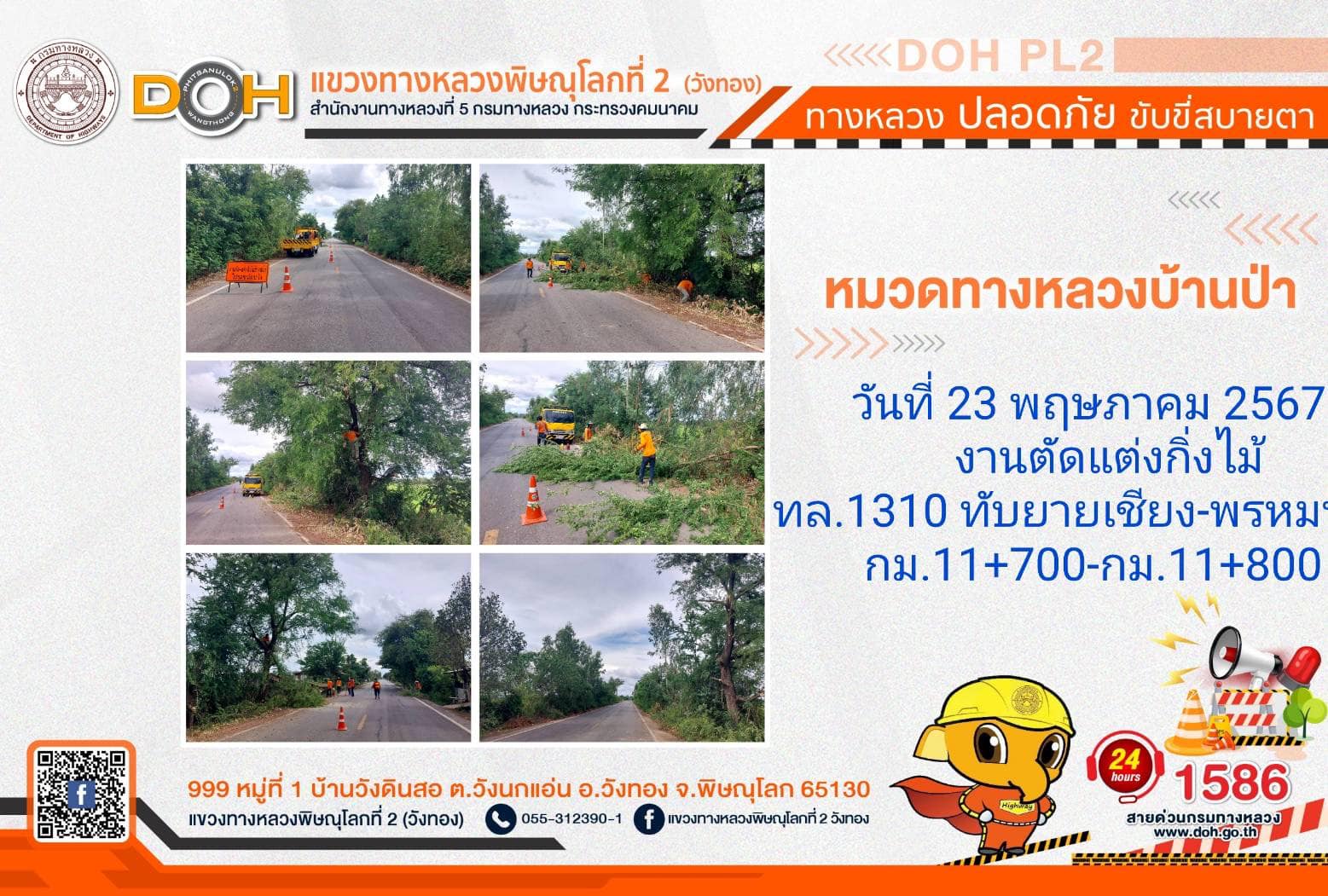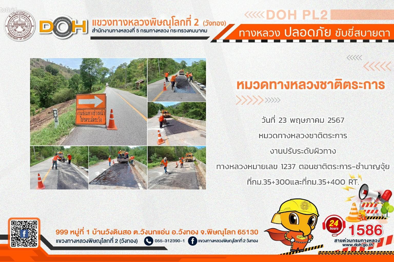 การปฏิบัติงานของ หมวดทางหลวง และ หน่วยงานในสังกัด เพื่ออำนวยความสะดวก และปลอดภัยให้กับประชาชนผู้ใช้เส้นทาง ประจำ วันพฤหัสบดีที่ 23 พฤษภาคม 2567