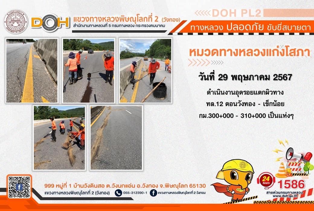 การปฏิบัติงานของ หมวดทางหลวง และ หน่วยงานในสังกัด เพื่ออำนวยความสะดวก และปลอดภัยให้กับประชาชนผู้ใช้เส้นทาง ประจำ วันพุธที่ 29 พฤษภาคม 2567