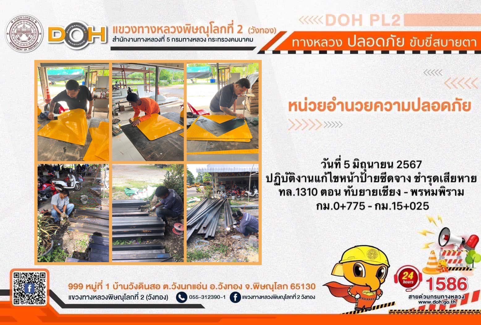 การปฏิบัติงานของ หมวดทางหลวง และ หน่วยงานในสังกัด เพื่ออำนวยความสะดวก และปลอดภัยให้กับประชาชนผู้ใช้เส้นทาง ประจำ วันพุธที่ 5 มิถุนายน 2567