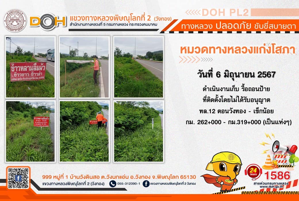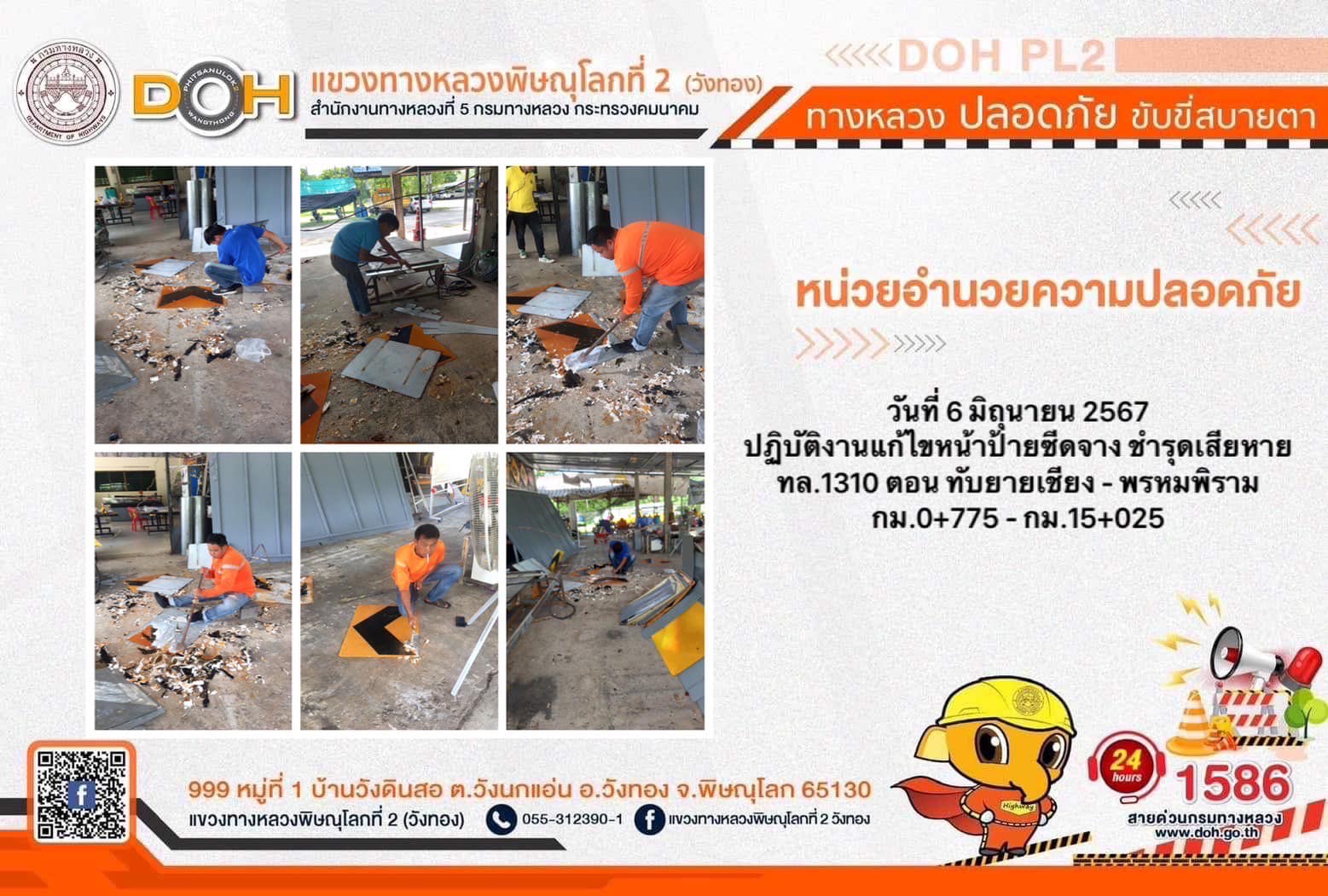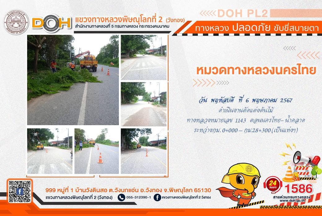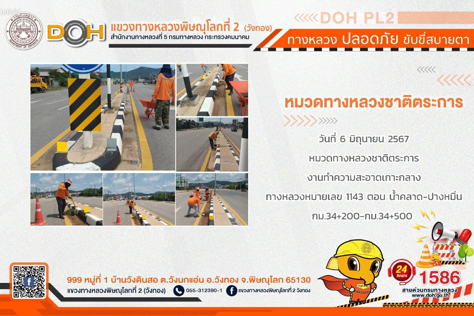 การปฏิบัติงานของ หมวดทางหลวง และ หน่วยงานในสังกัด เพื่ออำนวยความสะดวก และปลอดภัยให้กับประชาชนผู้ใช้เส้นทาง ประจำ วันพฤหัสบดีที่ 6 มิถุนายน 2567