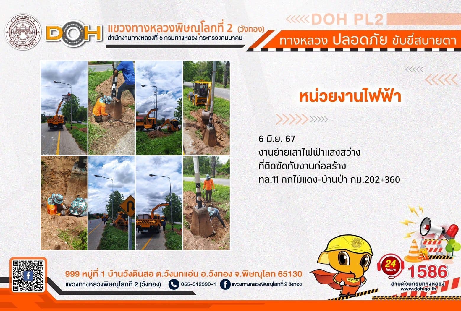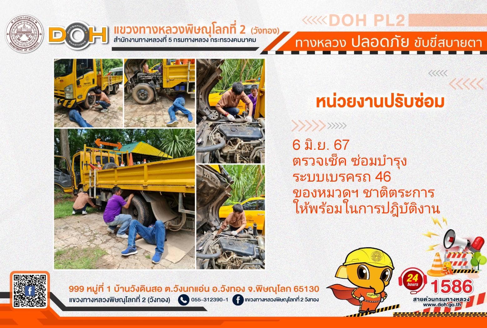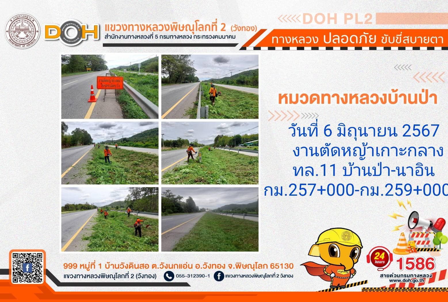 การปฏิบัติงานของ หมวดทางหลวง และ หน่วยงานในสังกัด เพื่ออำนวยความสะดวก และปลอดภัยให้กับประชาชนผู้ใช้เส้นทาง ประจำ วันพฤหัสบดีที่ 6 มิถุนายน 2567