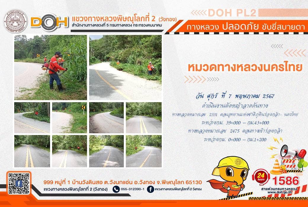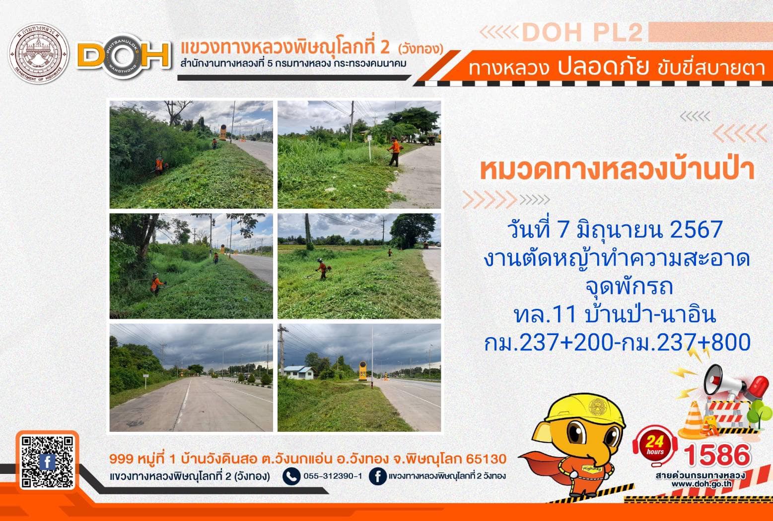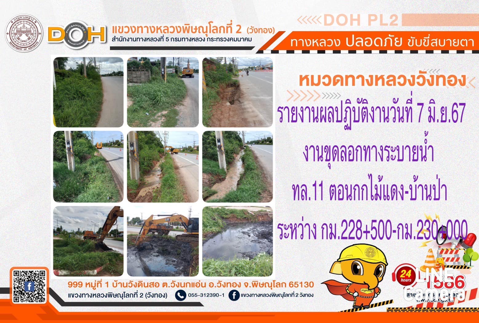 การปฏิบัติงานของ หมวดทางหลวง และ หน่วยงานในสังกัด เพื่ออำนวยความสะดวก และปลอดภัยให้กับประชาชนผู้ใช้เส้นทาง ประจำ วันศุกร์ที่ 7 มิถุนายน 2567
