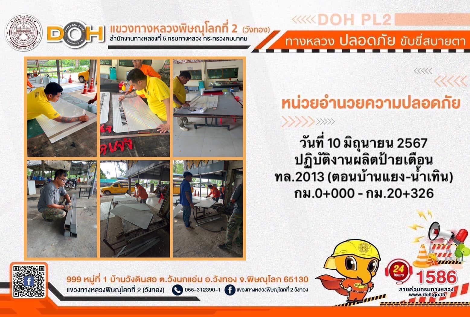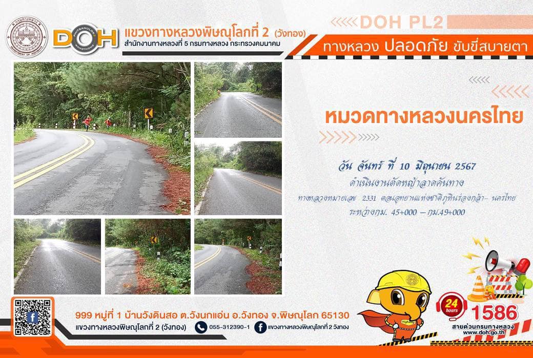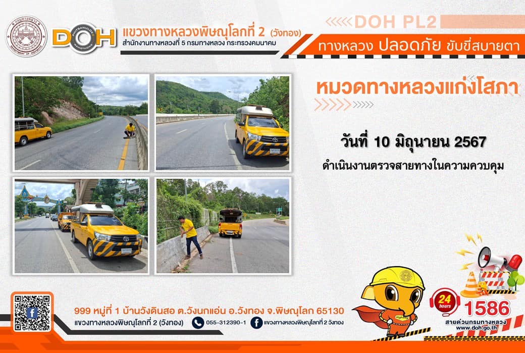 การปฏิบัติงานของ หมวดทางหลวง และ หน่วยงานในสังกัด เพื่ออำนวยความสะดวก และปลอดภัยให้กับประชาชนผู้ใช้เส้นทาง ประจำ วันจันทร์ที่ 10 มิถุนายน 2567