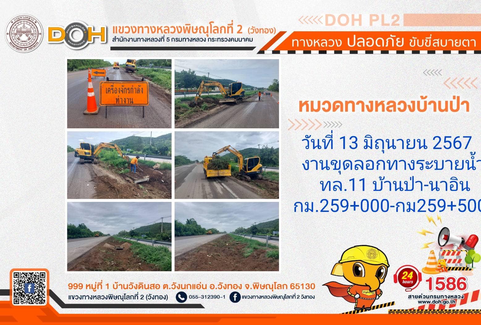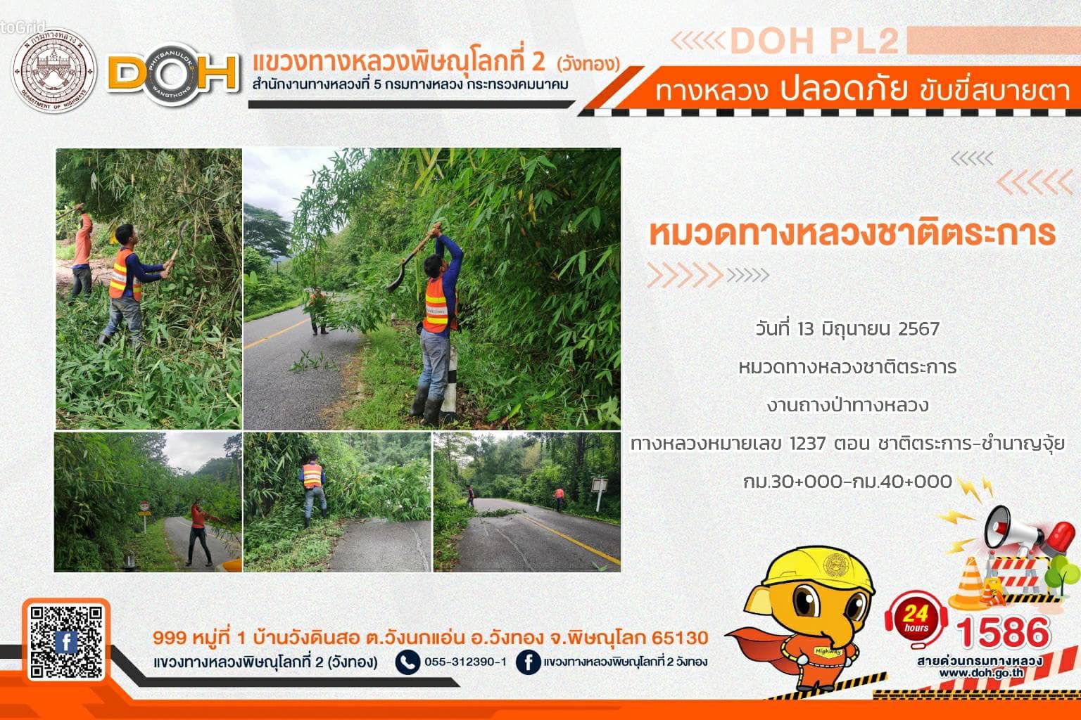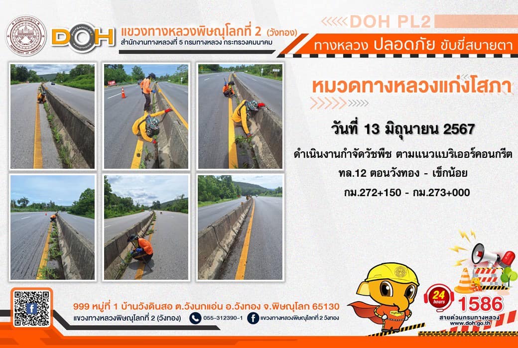 การปฏิบัติงานของ หมวดทางหลวง และ หน่วยงานในสังกัด เพื่ออำนวยความสะดวก และปลอดภัยให้กับประชาชนผู้ใช้เส้นทาง ประจำ วันพฤหัสบดีที่ 13 มิถุนายน 2567