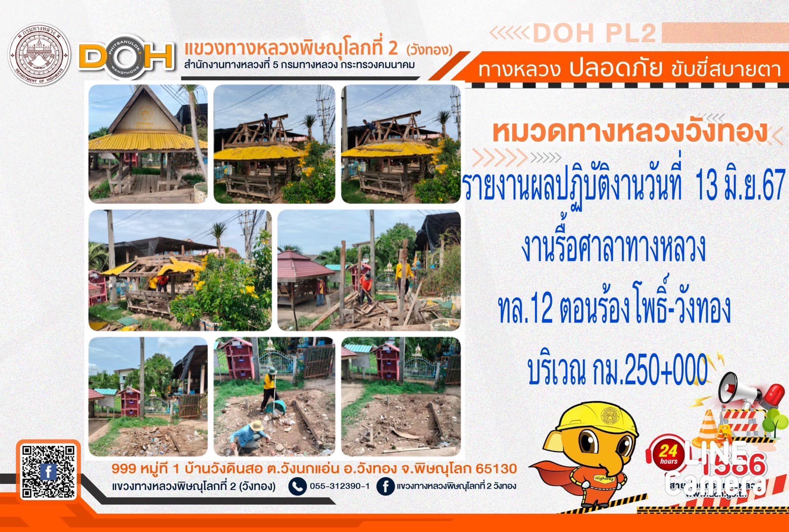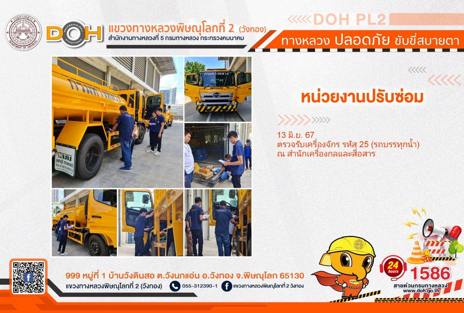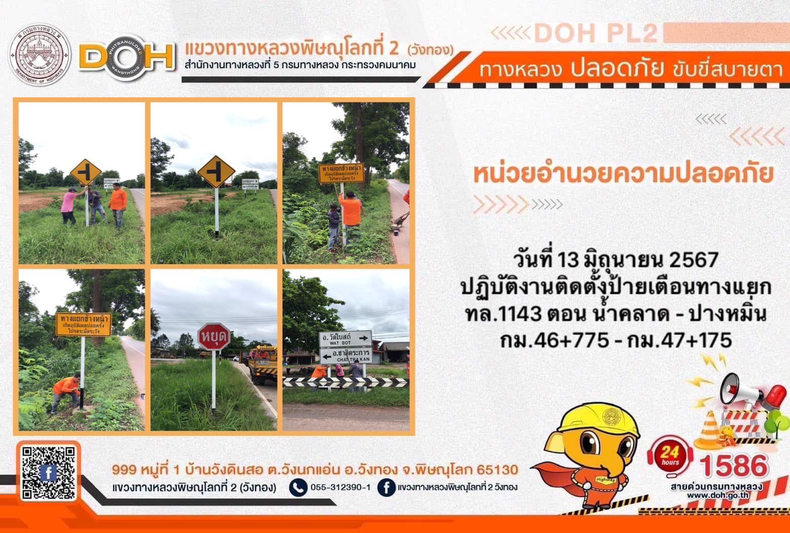 การปฏิบัติงานของ หมวดทางหลวง และ หน่วยงานในสังกัด เพื่ออำนวยความสะดวก และปลอดภัยให้กับประชาชนผู้ใช้เส้นทาง ประจำ วันพฤหัสบดีที่ 13 มิถุนายน 2567