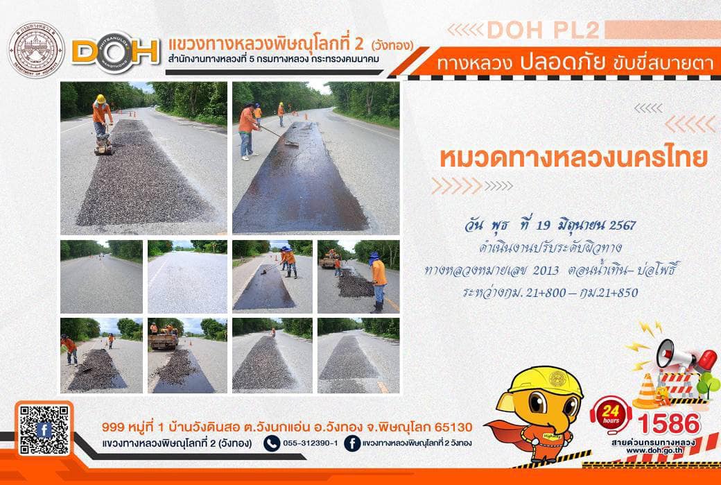 การปฏิบัติงานของ หมวดทางหลวง และ หน่วยงานในสังกัด เพื่ออำนวยความสะดวก และปลอดภัยให้กับประชาชนผู้ใช้เส้นทาง ประจำ วันพุธที่ 19 มิถุนายน 2567