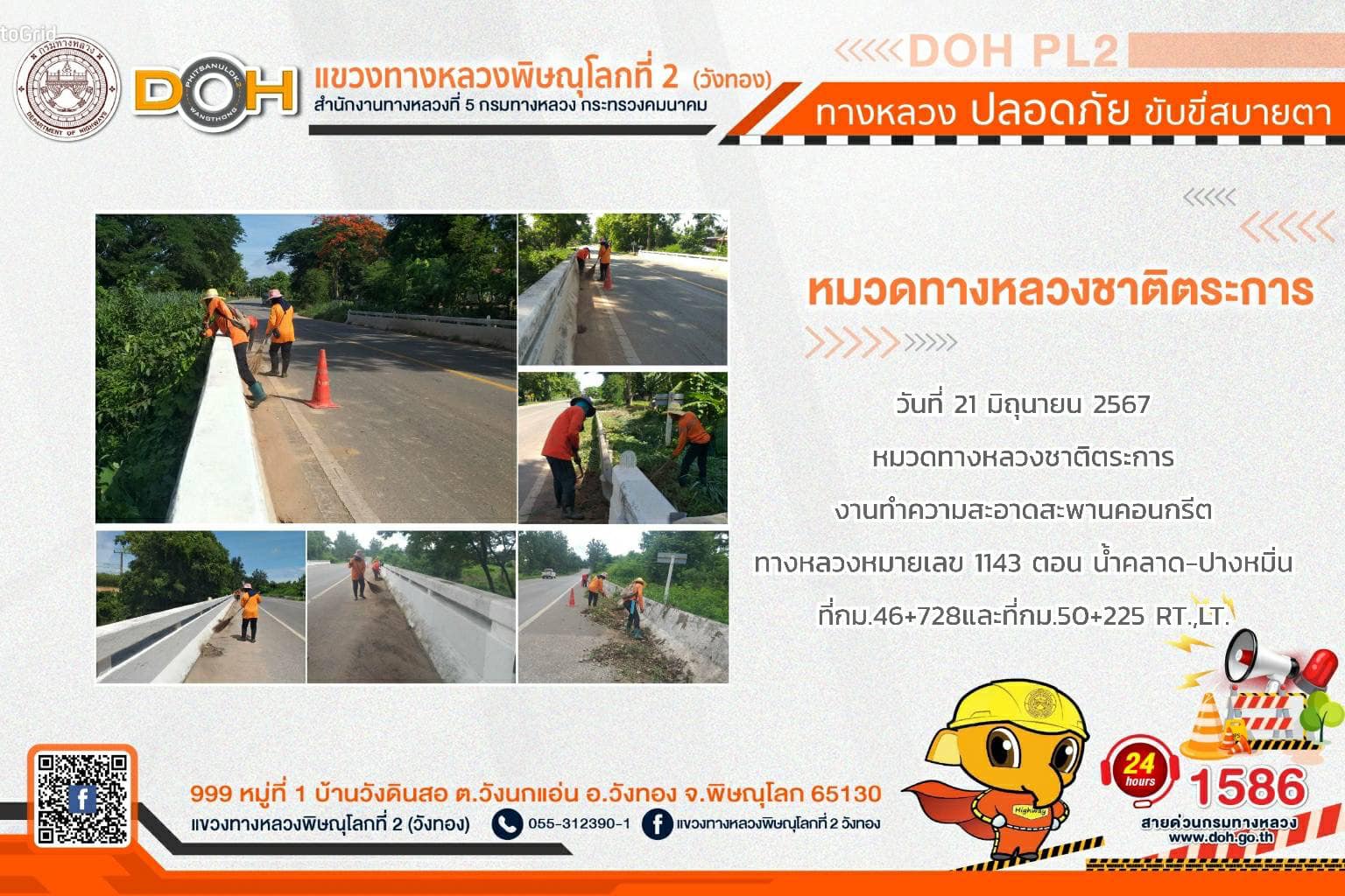 การปฏิบัติงานของ หมวดทางหลวง และ หน่วยงานในสังกัด เพื่ออำนวยความสะดวก และปลอดภัยให้กับประชาชนผู้ใช้เส้นทาง ประจำ วันศุกร์ที่ 21 มิถุนายน 2567