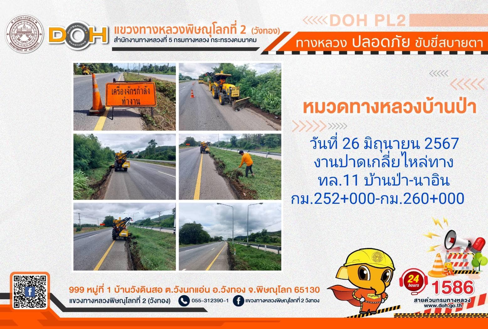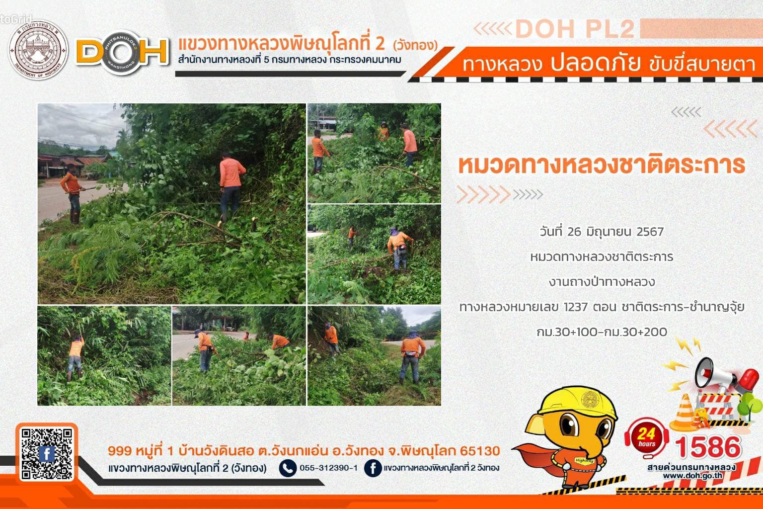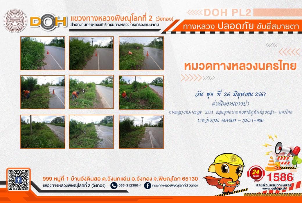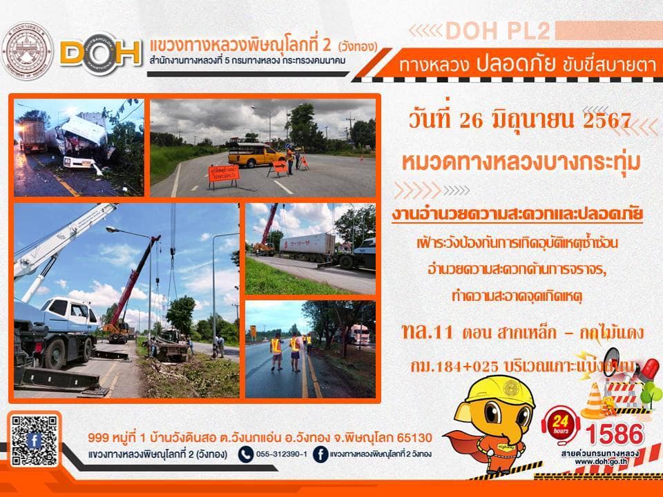 การปฏิบัติงานของ หมวดทางหลวง และ หน่วยงานในสังกัด เพื่ออำนวยความสะดวก และปลอดภัยให้กับประชาชนผู้ใช้เส้นทาง ประจำ วันพุธที่ 26 มิถุนายน 2567