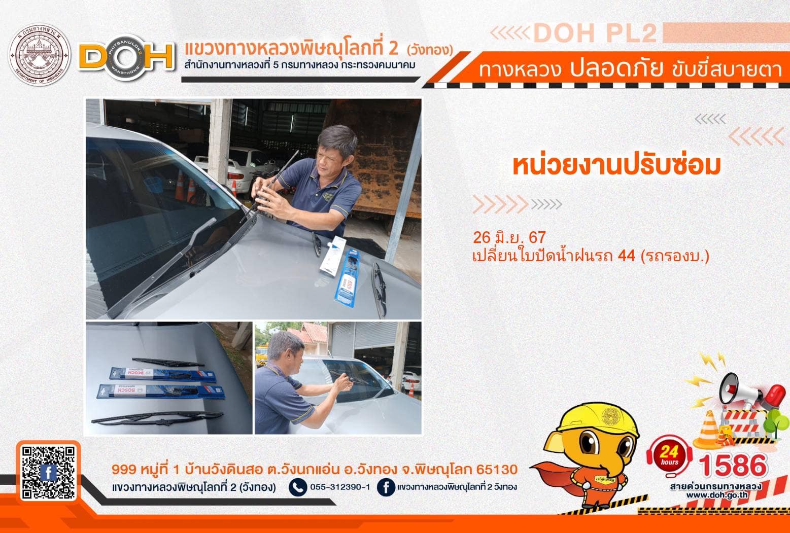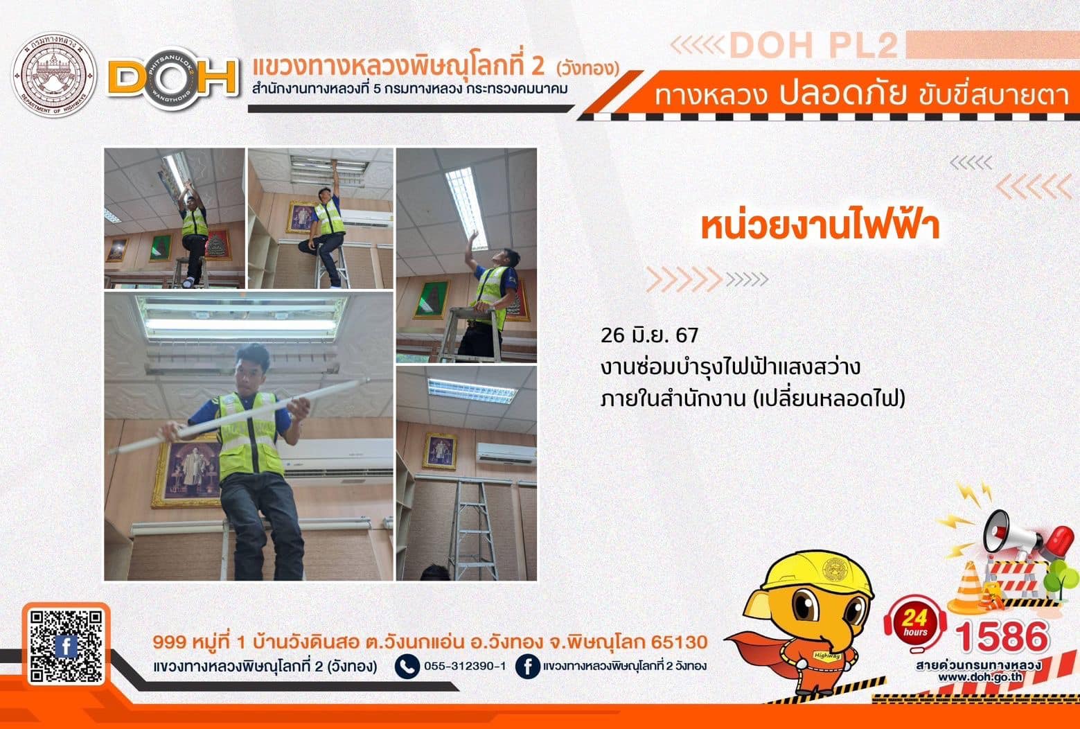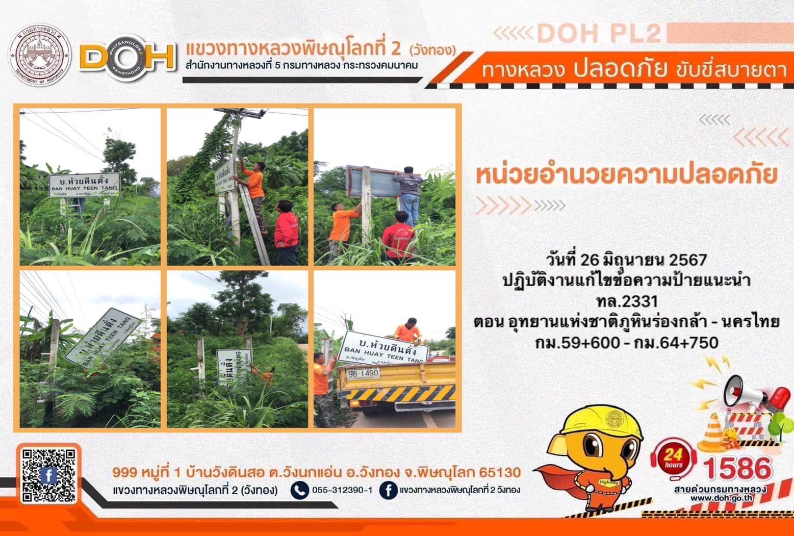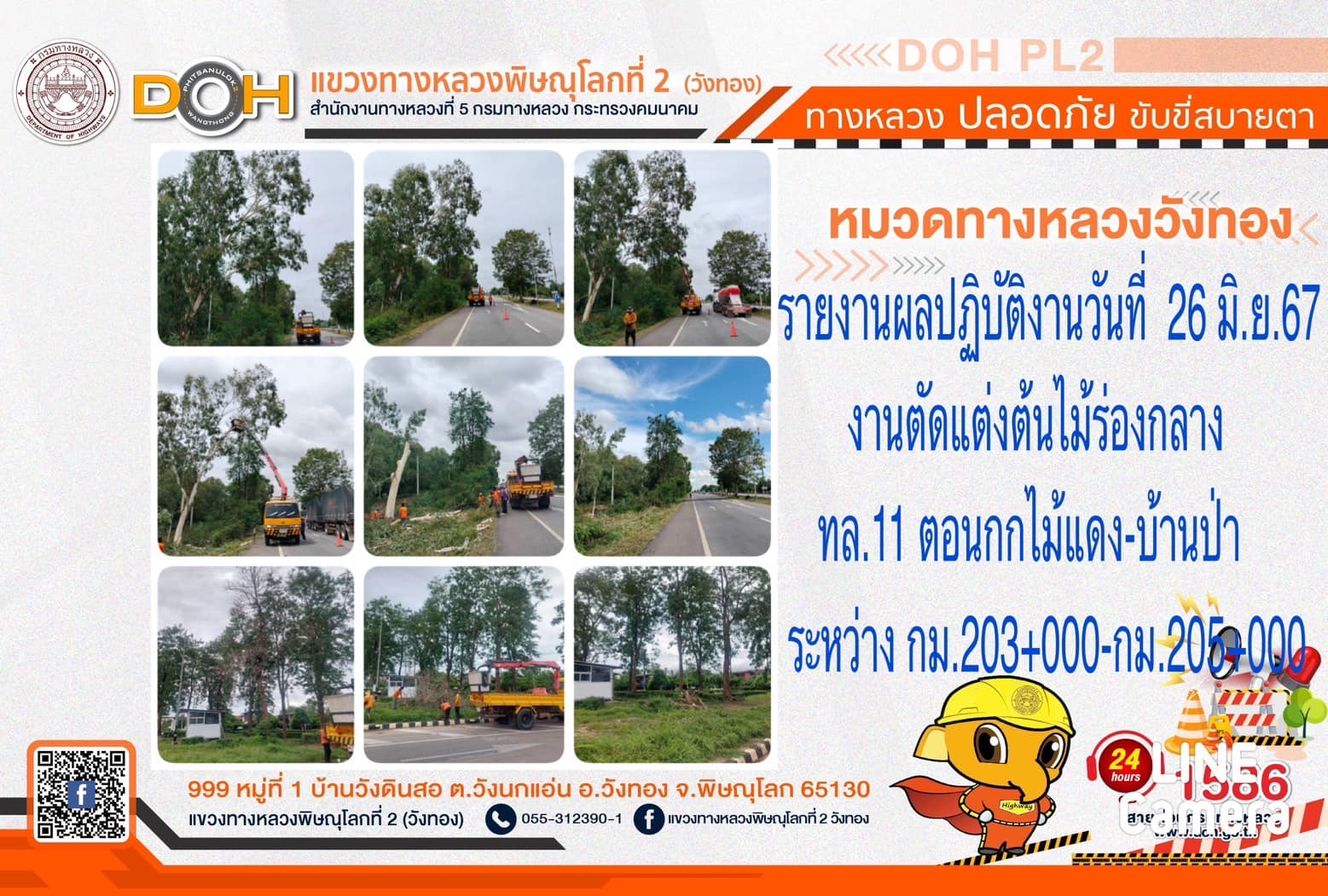 การปฏิบัติงานของ หมวดทางหลวง และ หน่วยงานในสังกัด เพื่ออำนวยความสะดวก และปลอดภัยให้กับประชาชนผู้ใช้เส้นทาง ประจำ วันพุธที่ 26 มิถุนายน 2567