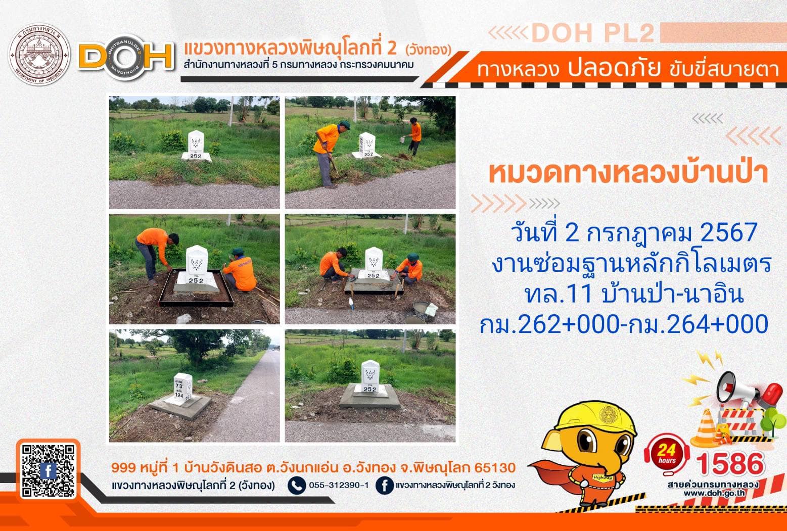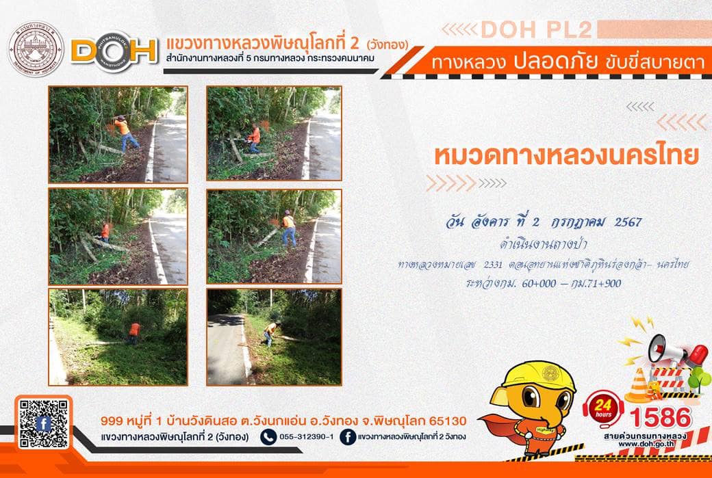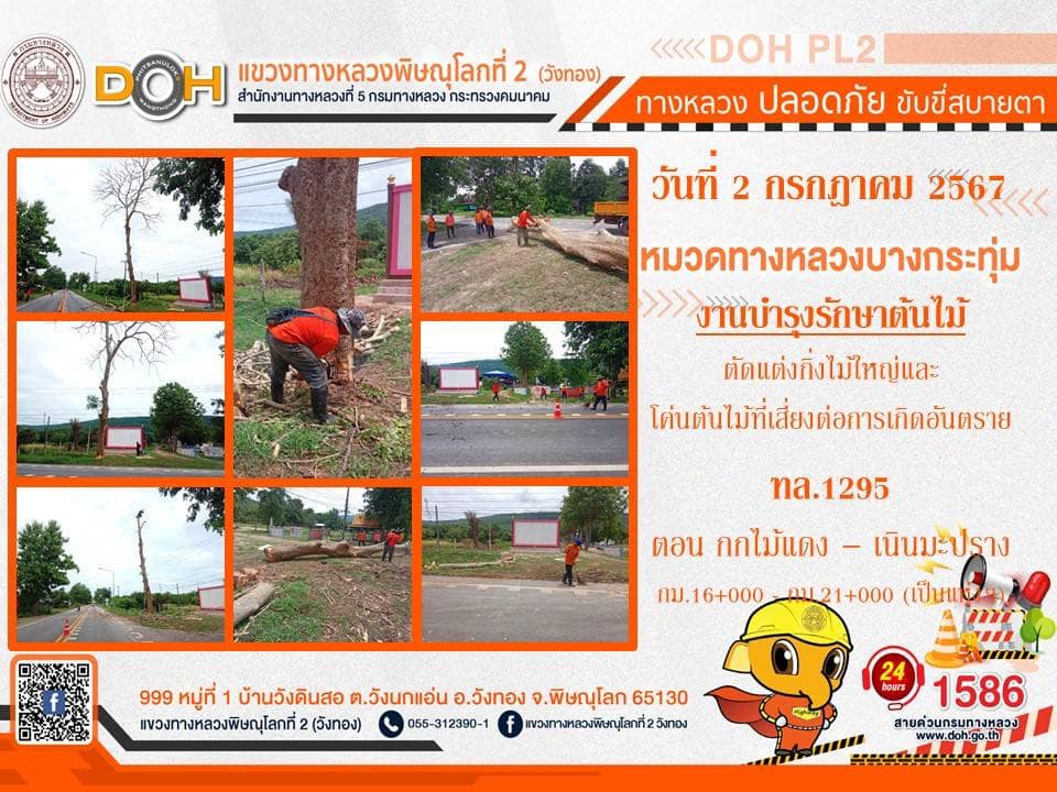 การปฏิบัติงานของ หมวดทางหลวง และ หน่วยงานในสังกัด เพื่ออำนวยความสะดวก และปลอดภัยให้กับประชาชนผู้ใช้เส้นทาง ประจำ วันอังคารที่ 2 กรกฎาคม 2567