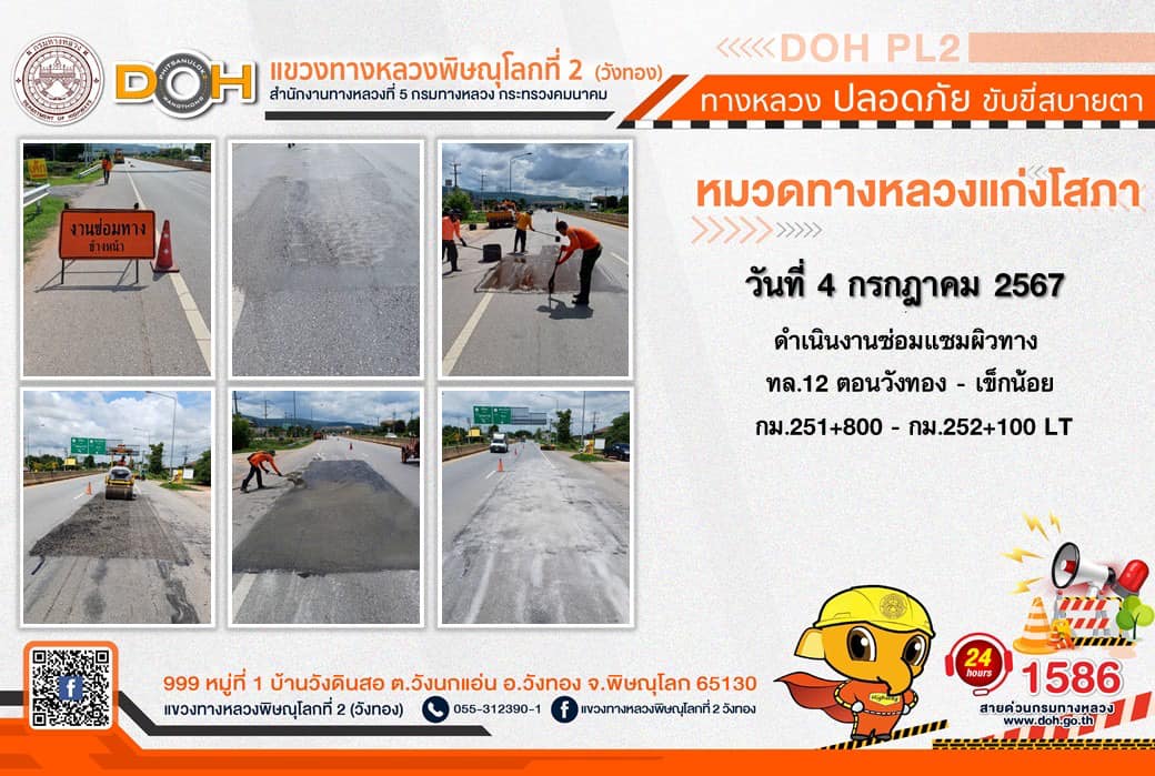 การปฏิบัติงานของ หมวดทางหลวง และ หน่วยงานในสังกัด เพื่ออำนวยความสะดวก และปลอดภัยให้กับประชาชนผู้ใช้เส้นทาง ประจำ วันพพฤหัสบดีที่ 4 กรกฎาคม 2567