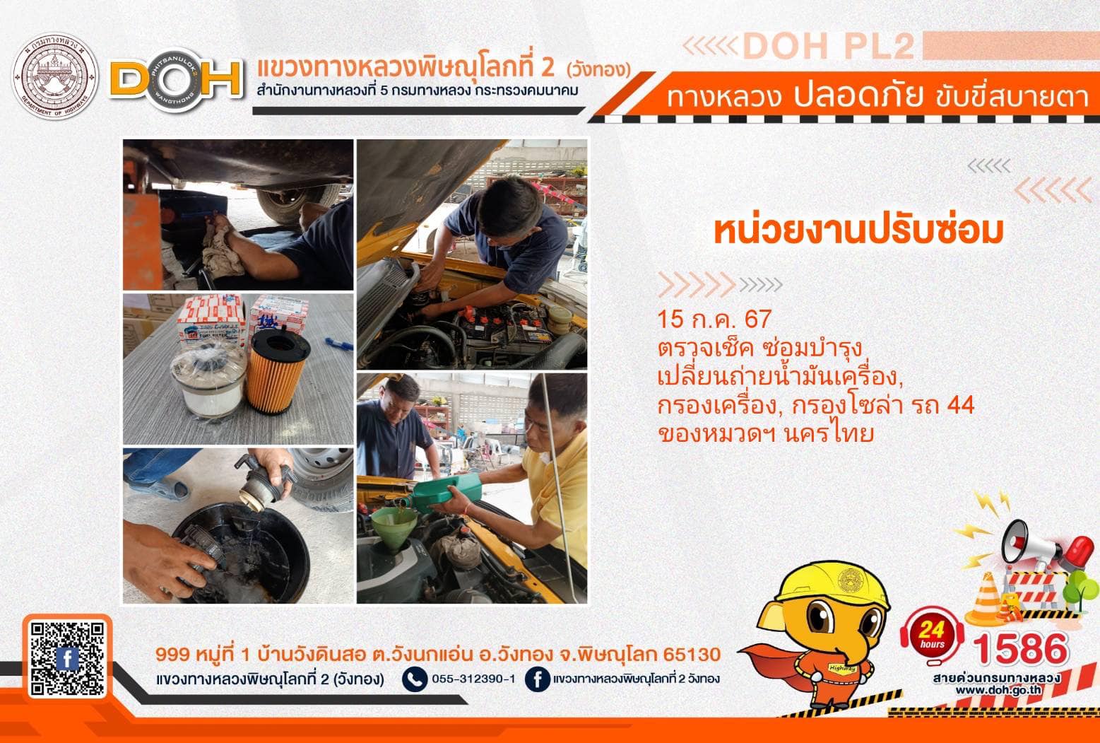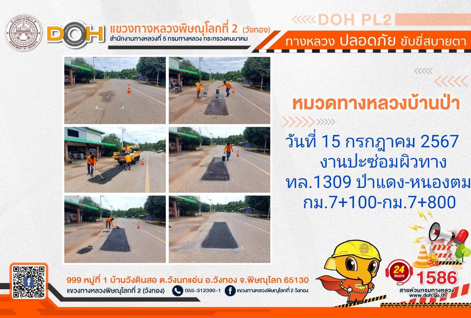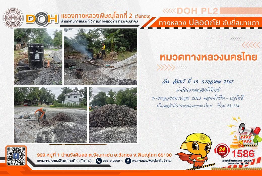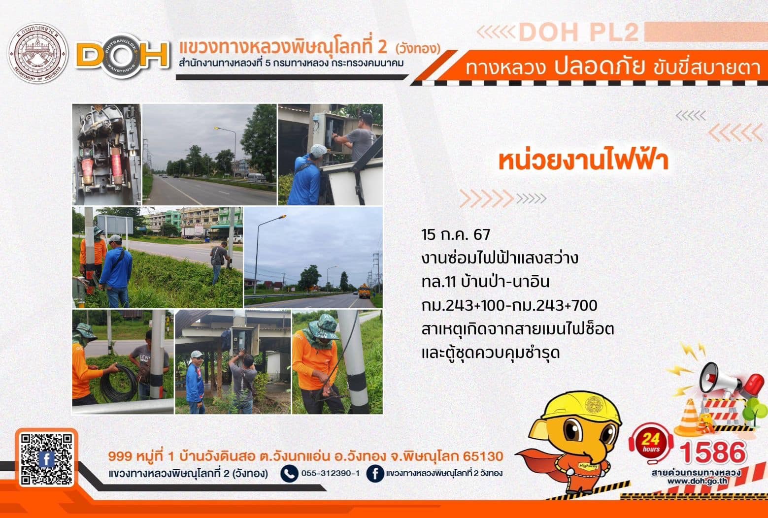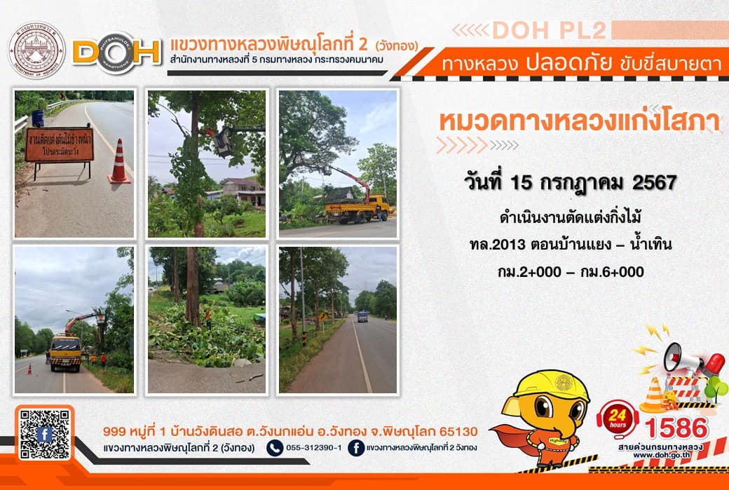 การปฏิบัติงานของ หมวดทางหลวง และ หน่วยงานในสังกัด เพื่ออำนวยความสะดวก และปลอดภัยให้กับประชาชนผู้ใช้เส้นทาง ประจำ วันจันทร์ที่ 15 กรกฎาคม 2567
