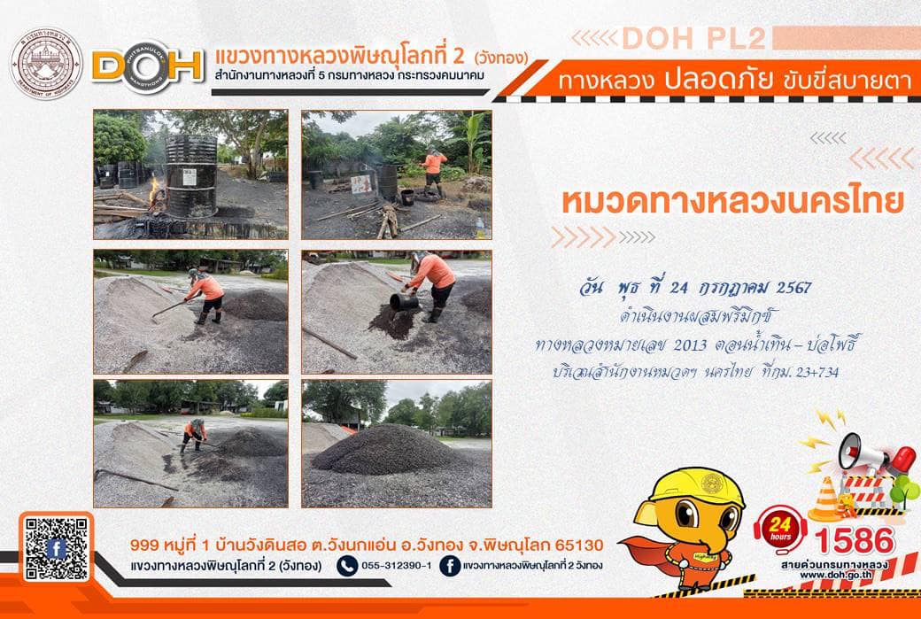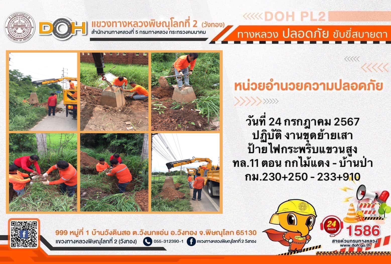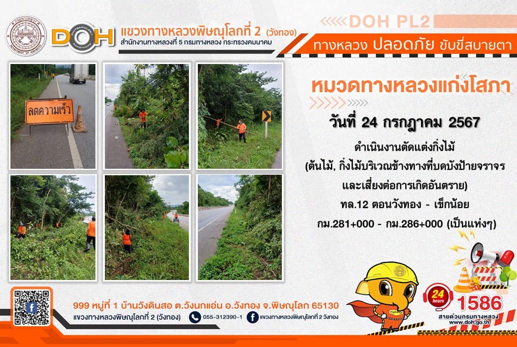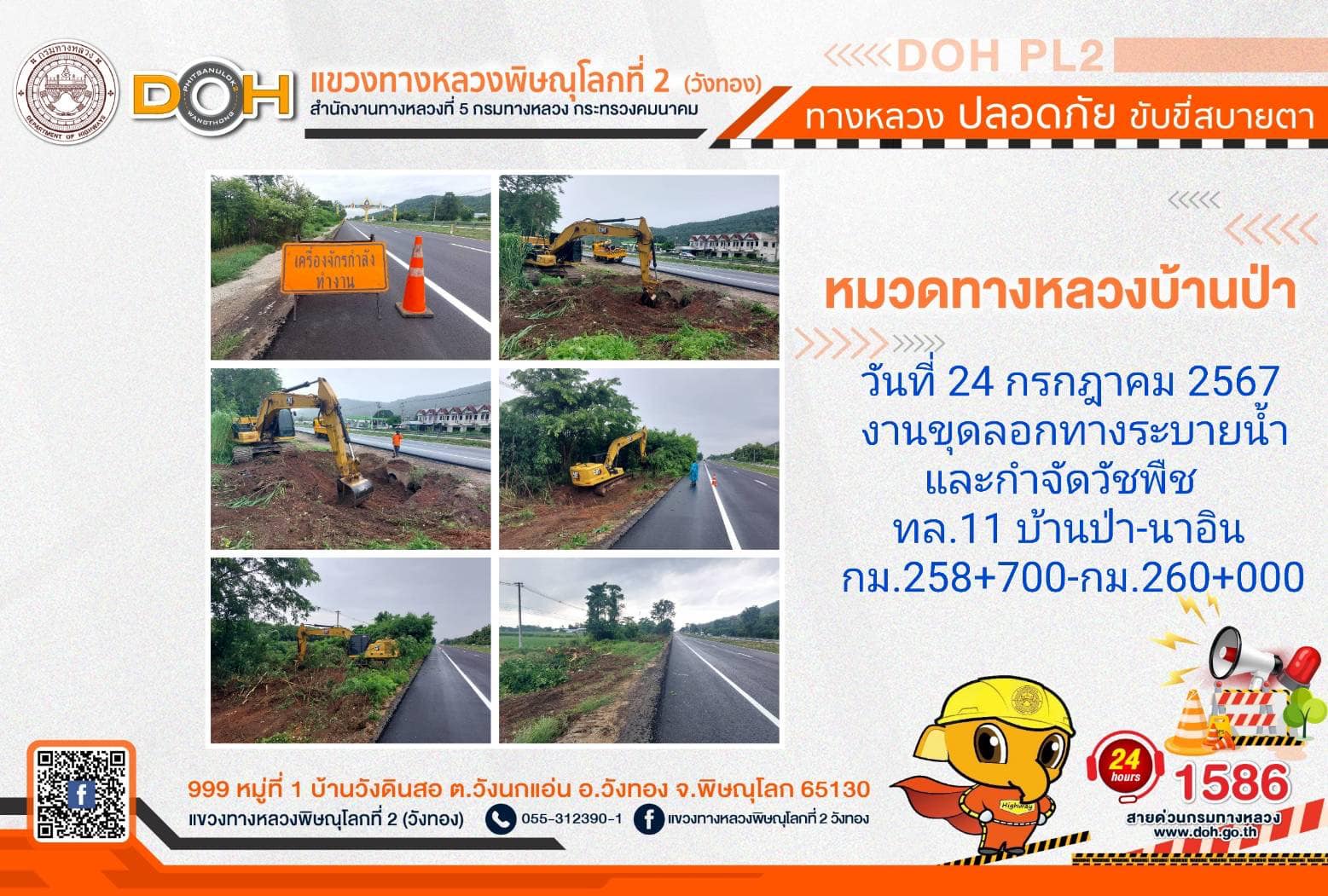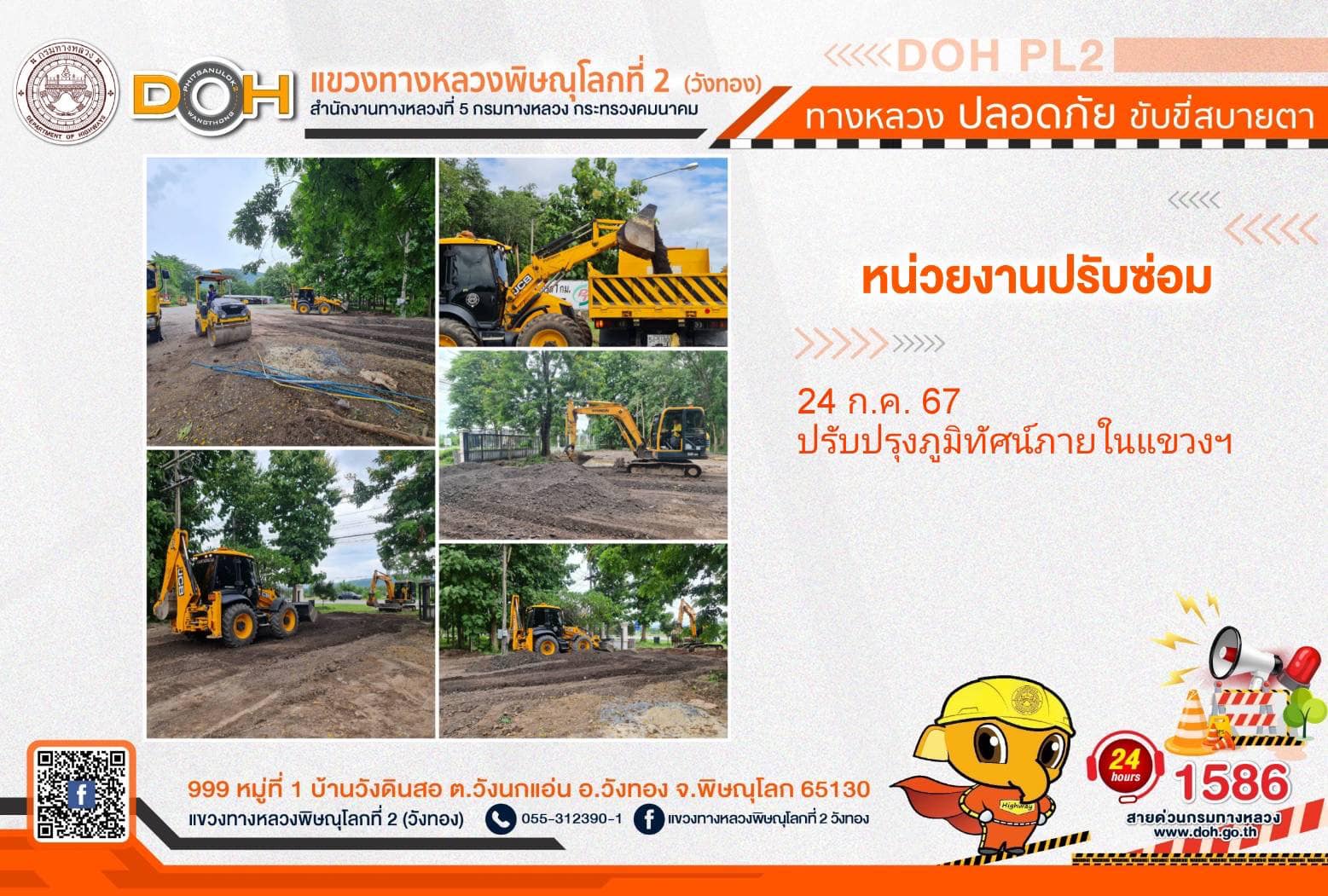 การปฏิบัติงานของ หมวดทางหลวง และ หน่วยงานในสังกัด เพื่ออำนวยความสะดวก และปลอดภัยให้กับประชาชนผู้ใช้เส้นทาง ประจำ วันพุธที่ 24 กรกฎาคม 2567