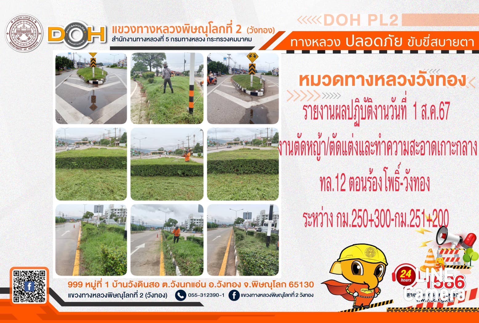 การปฏิบัติงานของ หมวดทางหลวง และ หน่วยงานในสังกัด เพื่ออำนวยความสะดวก และปลอดภัยให้กับประชาชนผู้ใช้เส้นทาง ประจำ วันพฤหัสบดีที่ 1 สิงหาคม 2567