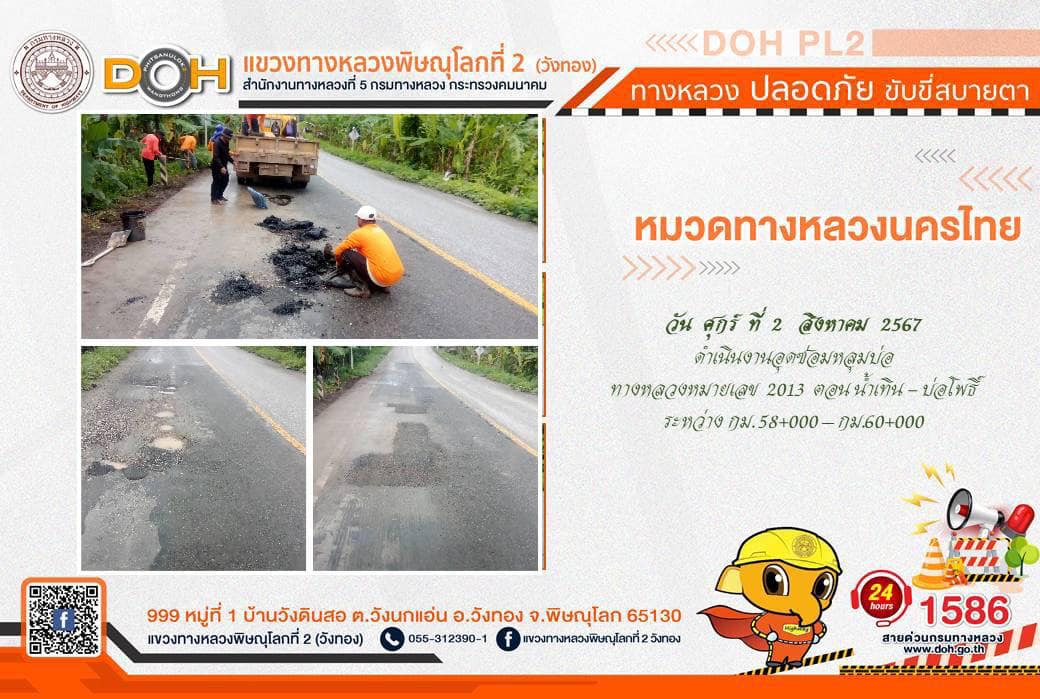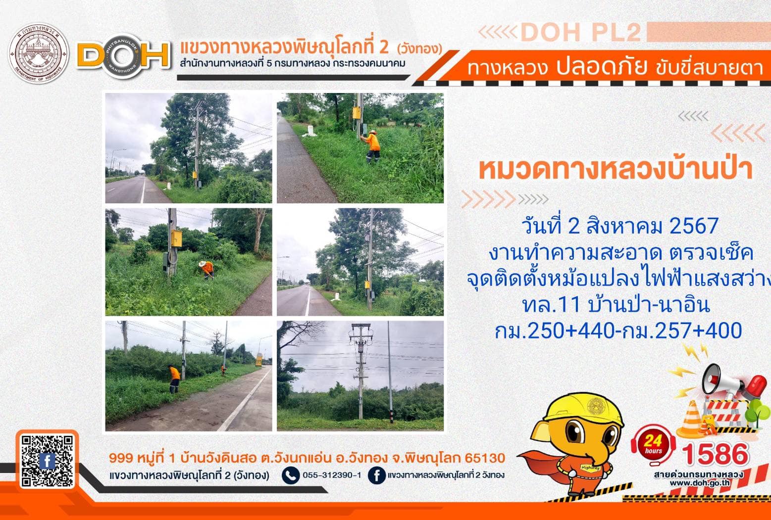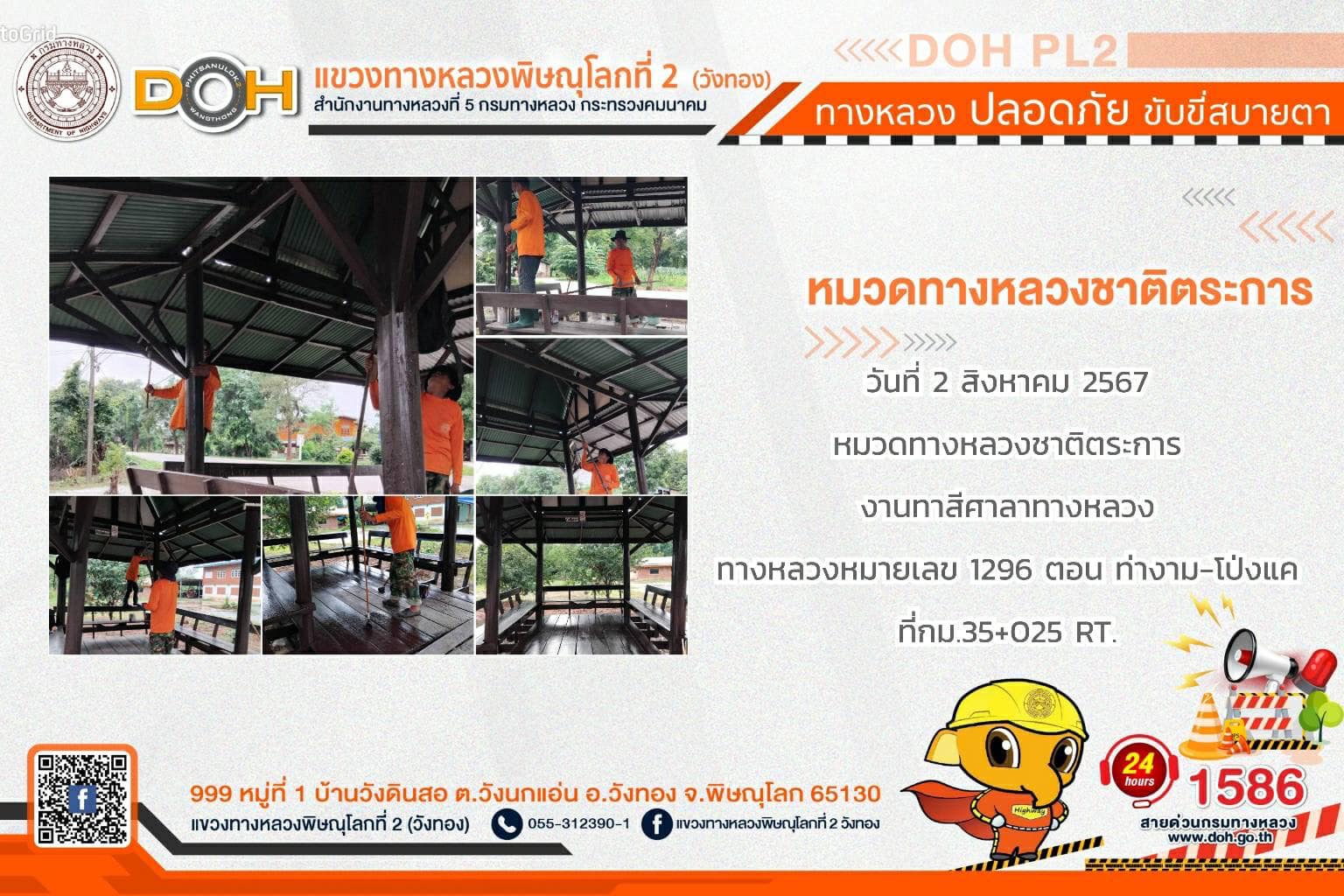 การปฏิบัติงานของ หมวดทางหลวง และ หน่วยงานในสังกัด เพื่ออำนวยความสะดวก และปลอดภัยให้กับประชาชนผู้ใช้เส้นทาง ประจำ วันศุกร์ที่ 2 สิงหาคม 2567