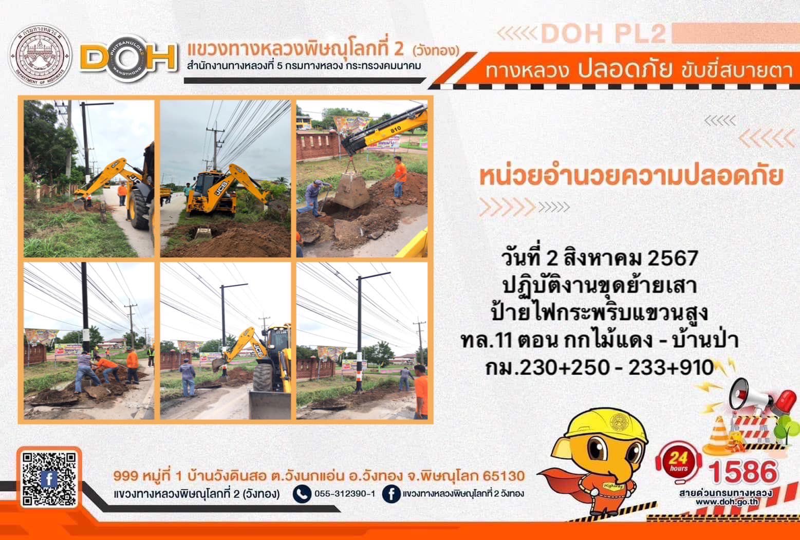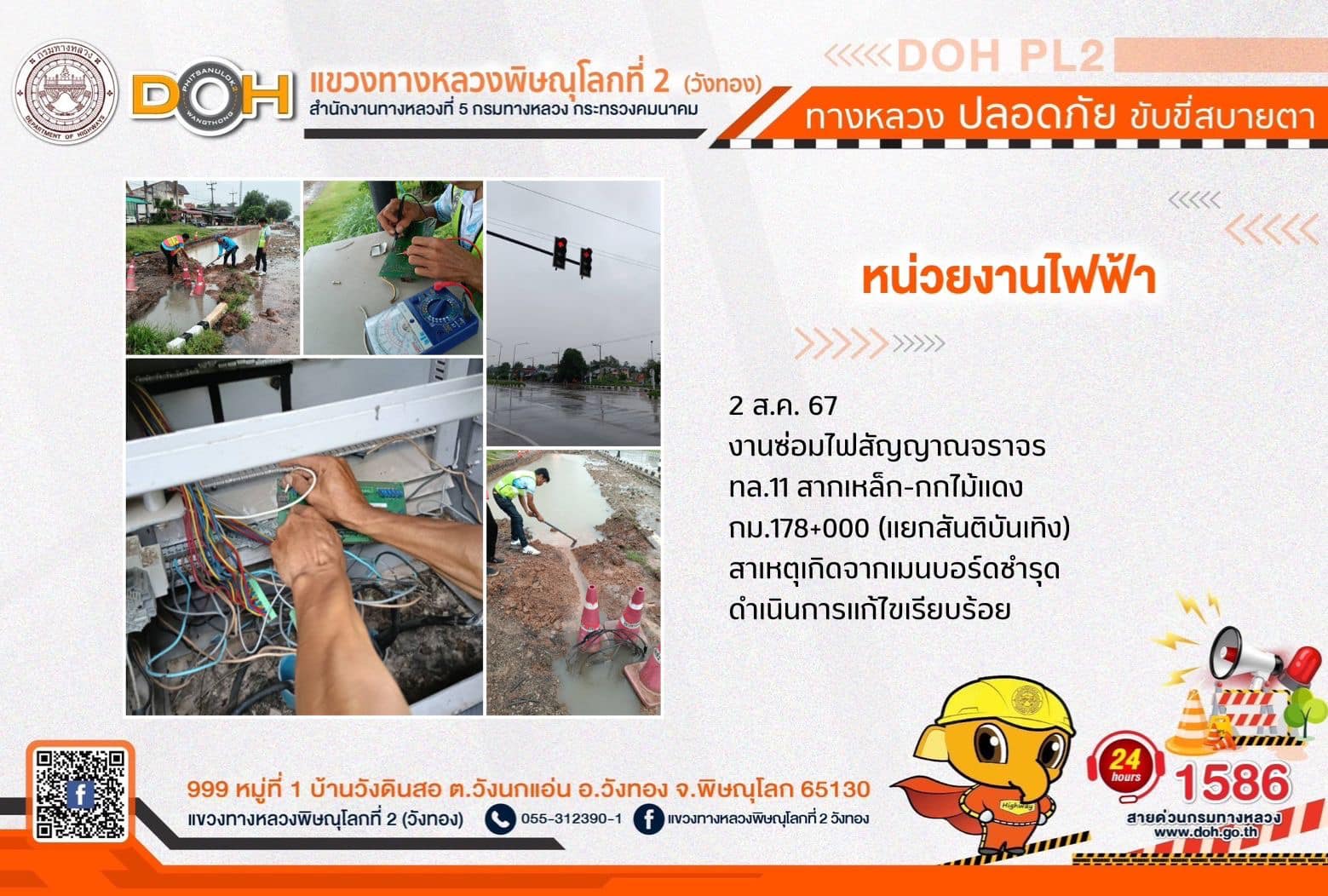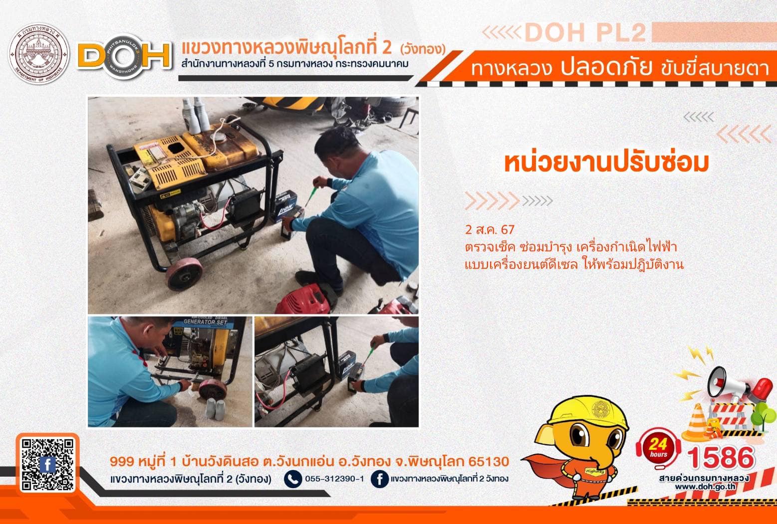 การปฏิบัติงานของ หมวดทางหลวง และ หน่วยงานในสังกัด เพื่ออำนวยความสะดวก และปลอดภัยให้กับประชาชนผู้ใช้เส้นทาง ประจำ วันศุกร์ที่ 2 สิงหาคม 2567