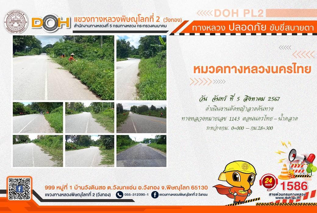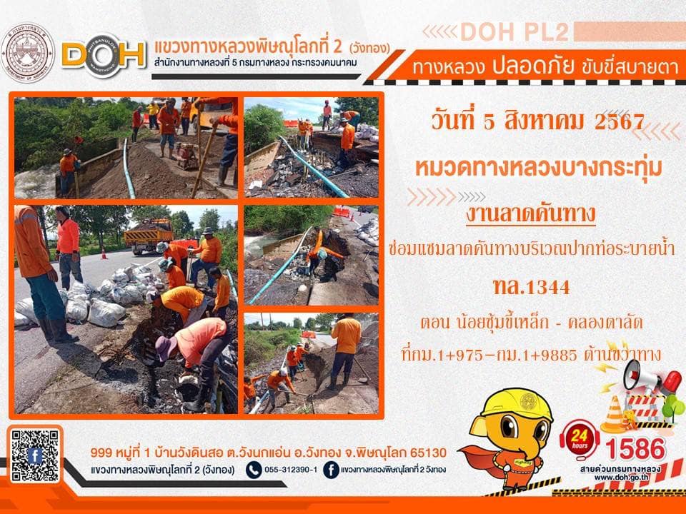 การปฏิบัติงานของ หมวดทางหลวง และ หน่วยงานในสังกัด เพื่ออำนวยความสะดวก และปลอดภัยให้กับประชาชนผู้ใช้เส้นทาง ประจำ วันจันทร์ที่ 5 สิงหาคม 2567