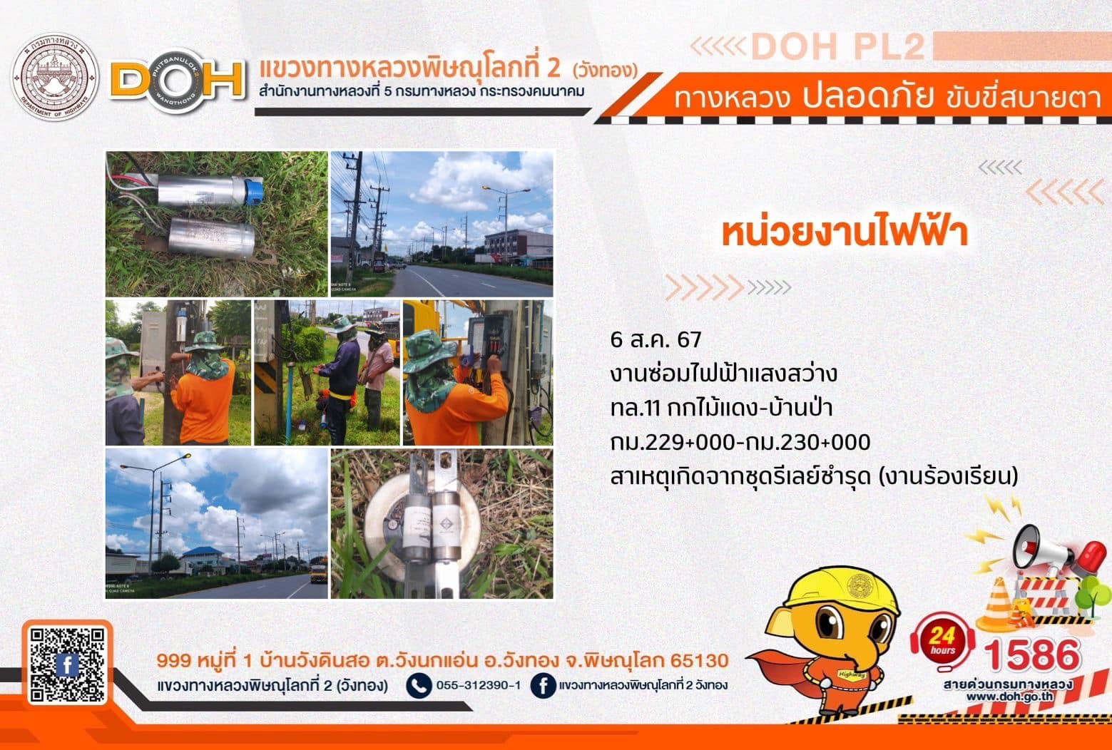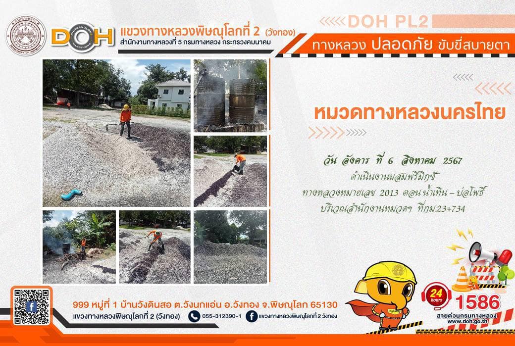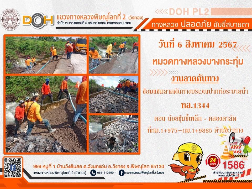 การปฏิบัติงานของ หมวดทางหลวง และ หน่วยงานในสังกัด เพื่ออำนวยความสะดวก และปลอดภัยให้กับประชาชนผู้ใช้เส้นทาง ประจำ วันอังคารที่ 6 สิงหาคม 2567