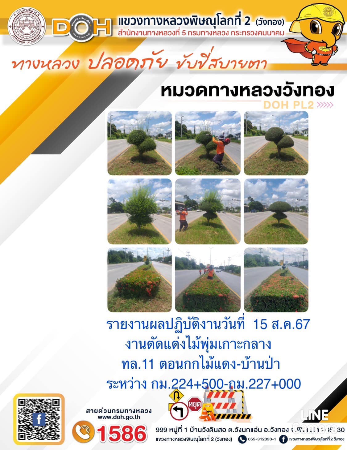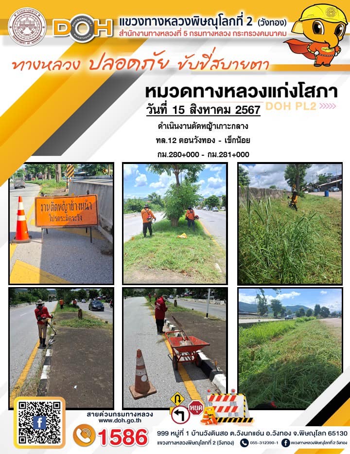 การปฏิบัติงานของ หมวดทางหลวง และ หน่วยงานในสังกัด เพื่ออำนวยความสะดวก และปลอดภัยให้กับประชาชนผู้ใช้เส้นทาง ประจำ วันพฤหัสบดีที่ 15 สิงหาคม 2567