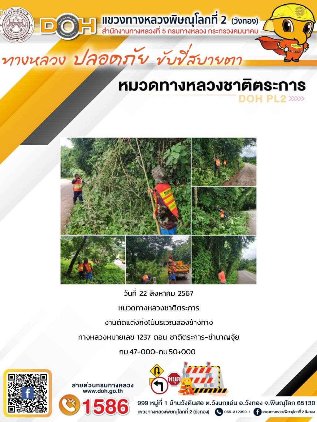 การปฏิบัติงานของ หมวดทางหลวง และ หน่วยงานในสังกัด เพื่ออำนวยความสะดวก และปลอดภัยให้กับประชาชนผู้ใช้เส้นทาง ประจำ วันพฤหัสบดีที่ 22 สิงหาคม 2567