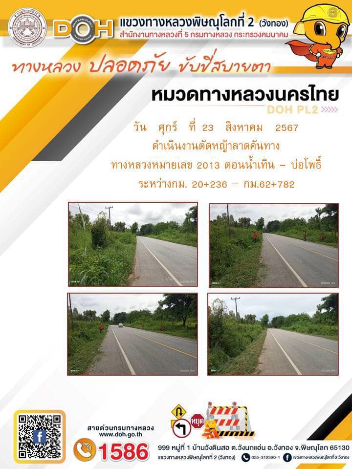 การปฏิบัติงานของ หมวดทางหลวง และ หน่วยงานในสังกัด เพื่ออำนวยความสะดวก และปลอดภัยให้กับประชาชนผู้ใช้เส้นทาง ประจำ วันศุกร์ที่ 23 สิงหาคม 2567