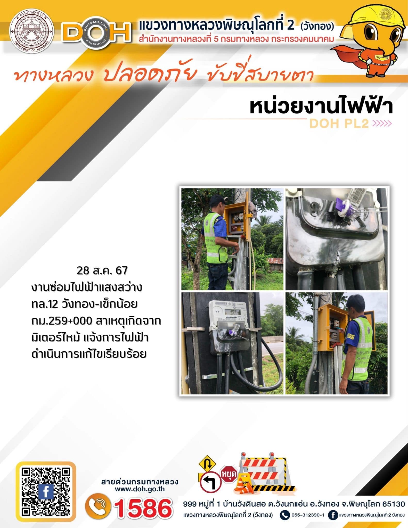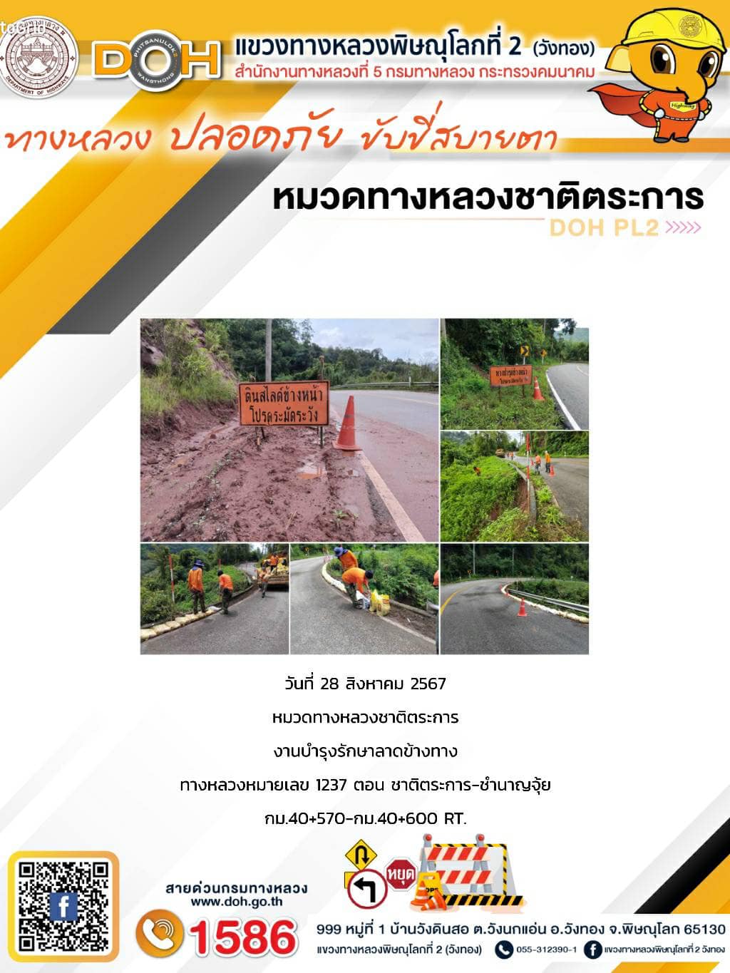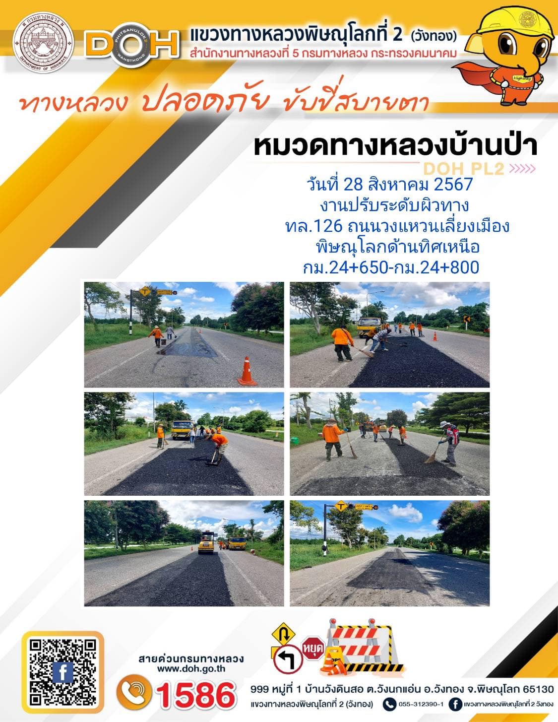 การปฏิบัติงานของ หมวดทางหลวง และ หน่วยงานในสังกัด เพื่ออำนวยความสะดวก และปลอดภัยให้กับประชาชนผู้ใช้เส้นทาง ประจำ วันพุธที่ 28 สิงหาคม 2567