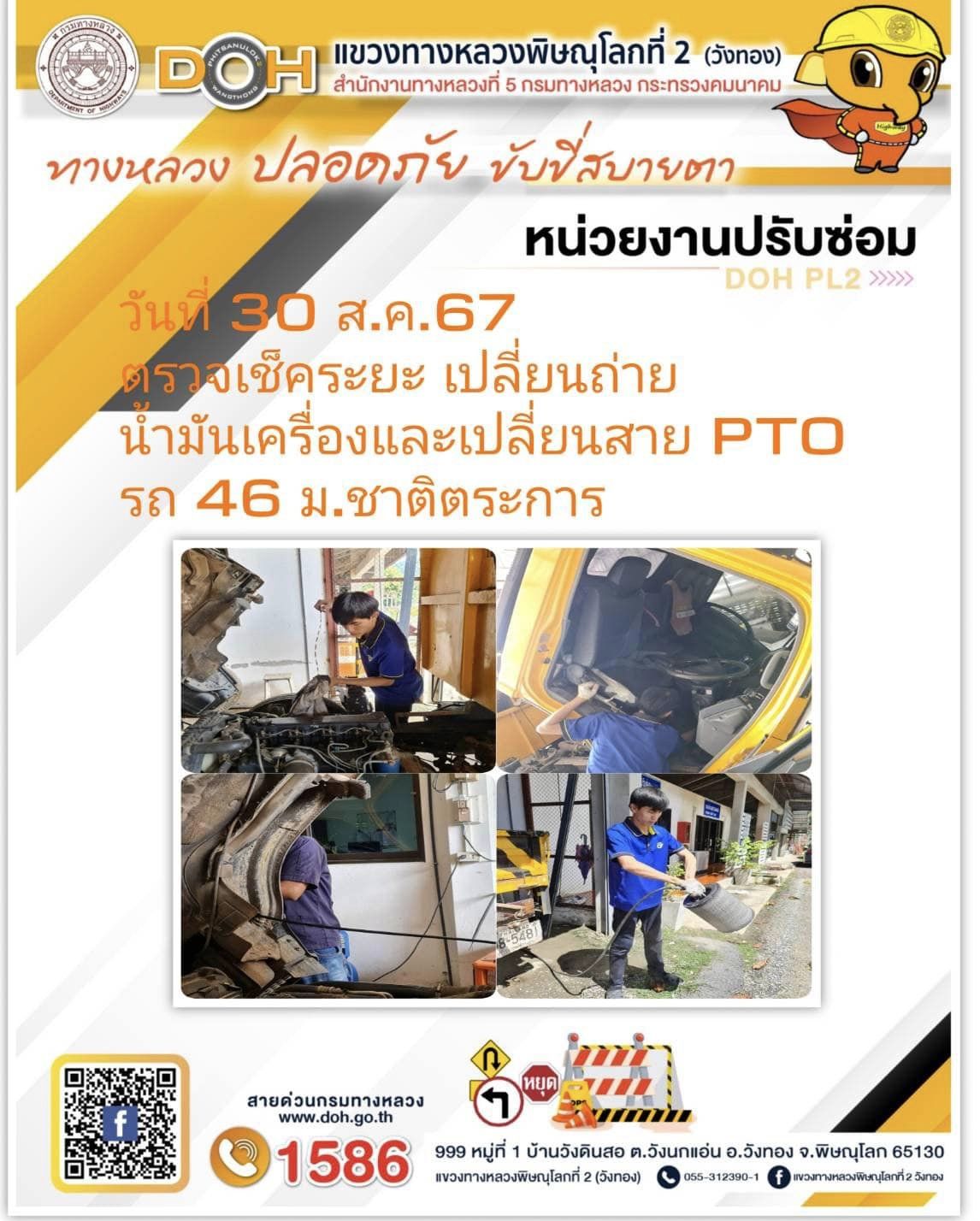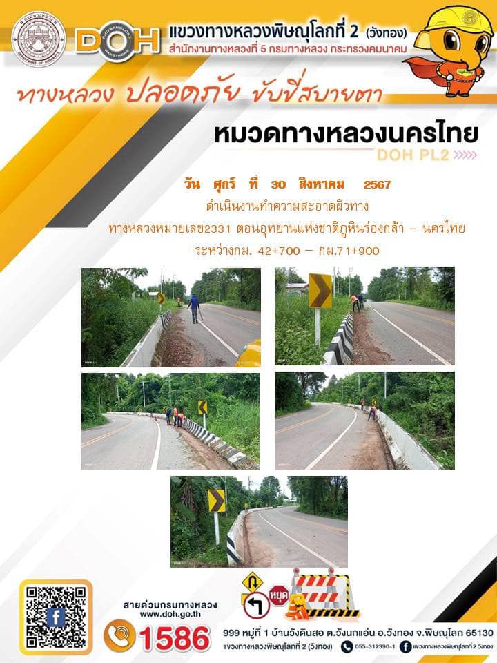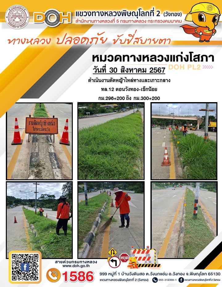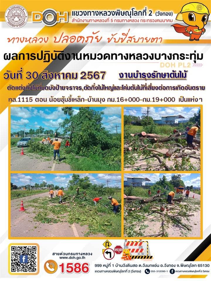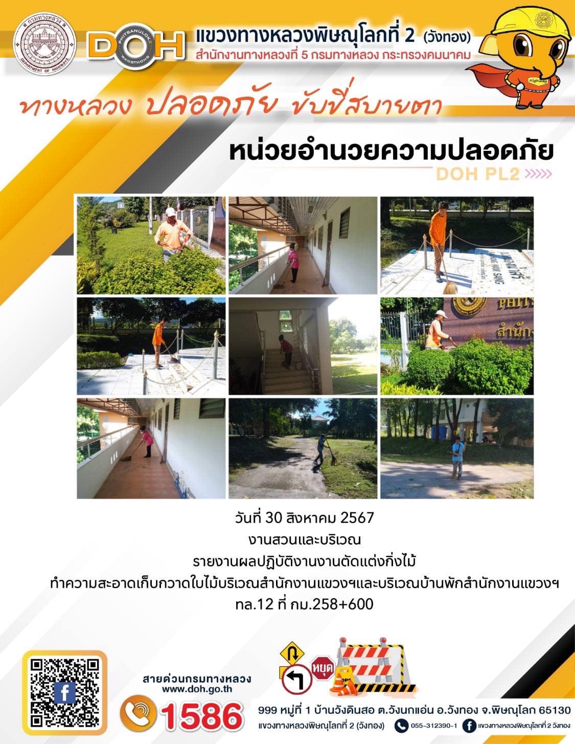 การปฏิบัติงานของ หมวดทางหลวง และ หน่วยงานในสังกัด เพื่ออำนวยความสะดวก และปลอดภัยให้กับประชาชนผู้ใช้เส้นทาง ประจำ วันศุกร์ที่ 30 สิงหาคม 2567