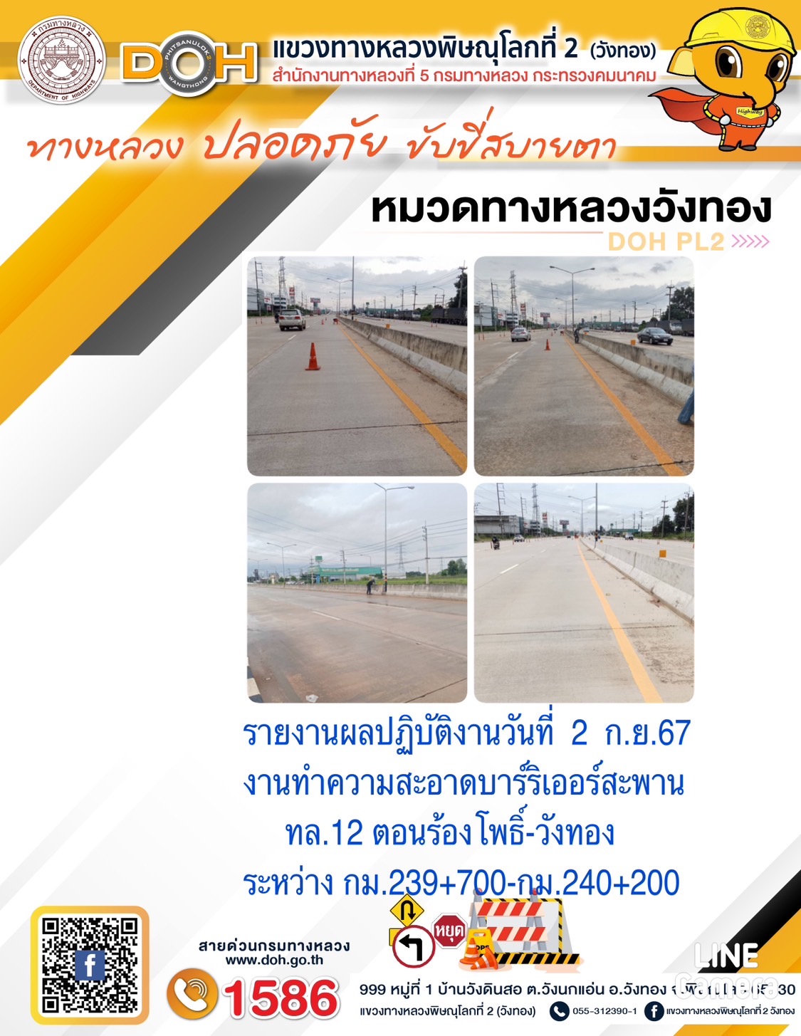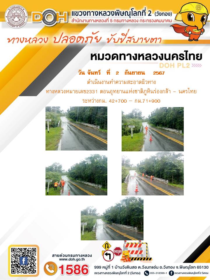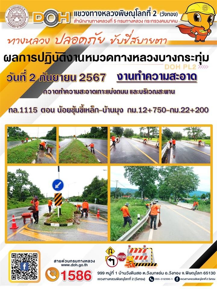 การปฏิบัติงานของ หมวดทางหลวง และ หน่วยงานในสังกัด เพื่ออำนวยความสะดวก และปลอดภัยให้กับประชาชนผู้ใช้เส้นทาง ประจำ วันจันทร์ที่ 2 กันยายน 2567
