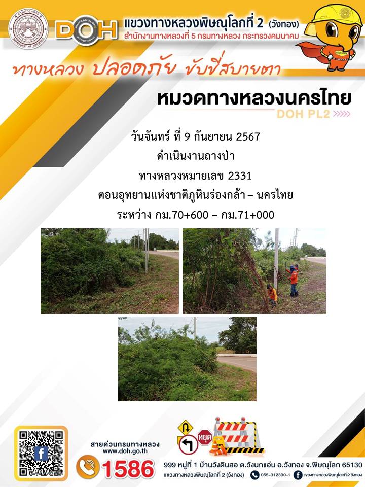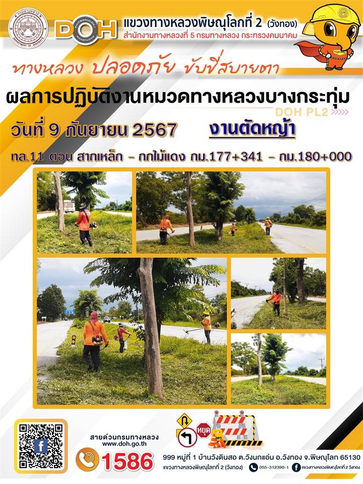 การปฏิบัติงานของ หมวดทางหลวง และ หน่วยงานในสังกัด เพื่ออำนวยความสะดวก และปลอดภัยให้กับประชาชนผู้ใช้เส้นทาง ประจำ วันอังคาร ที่ 10 กันยายน 2567