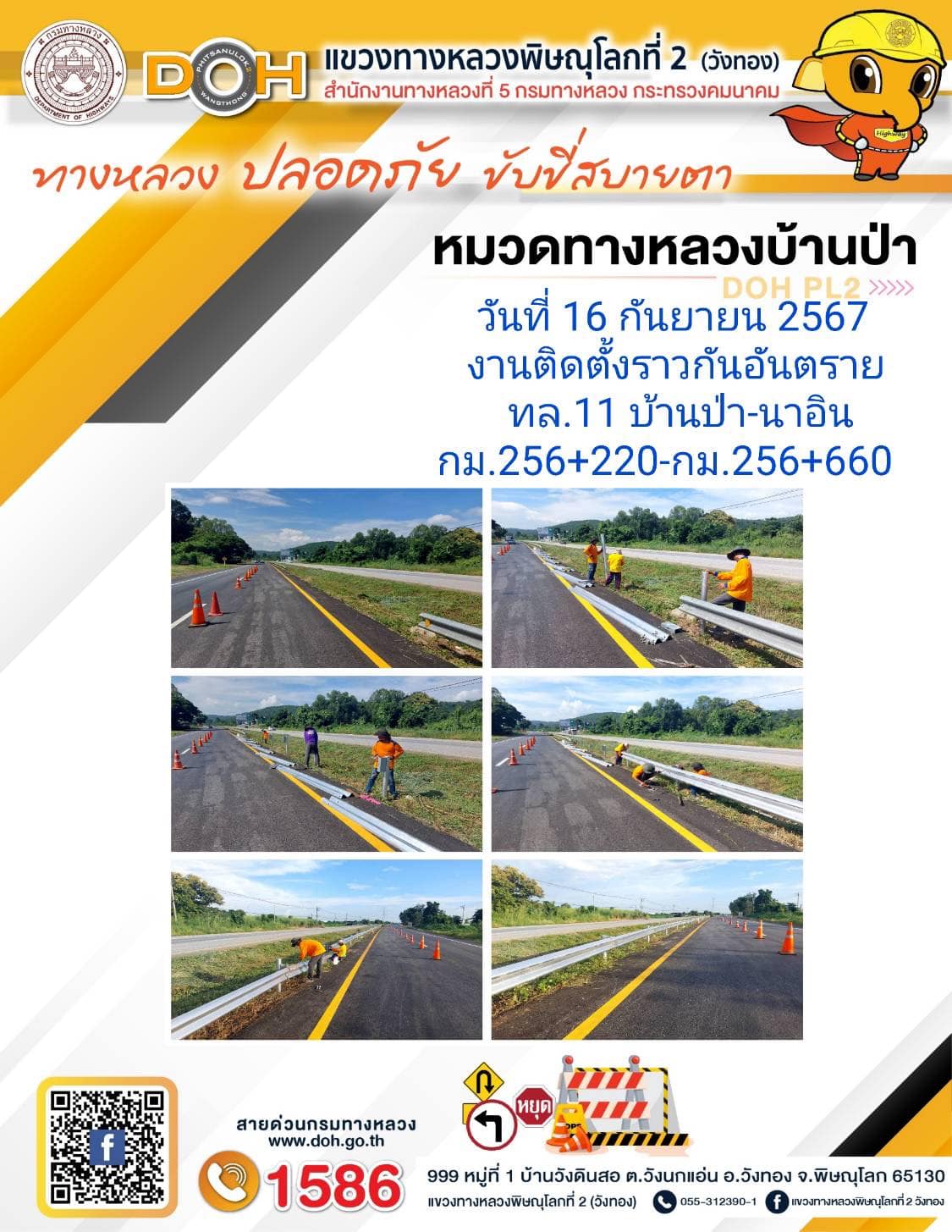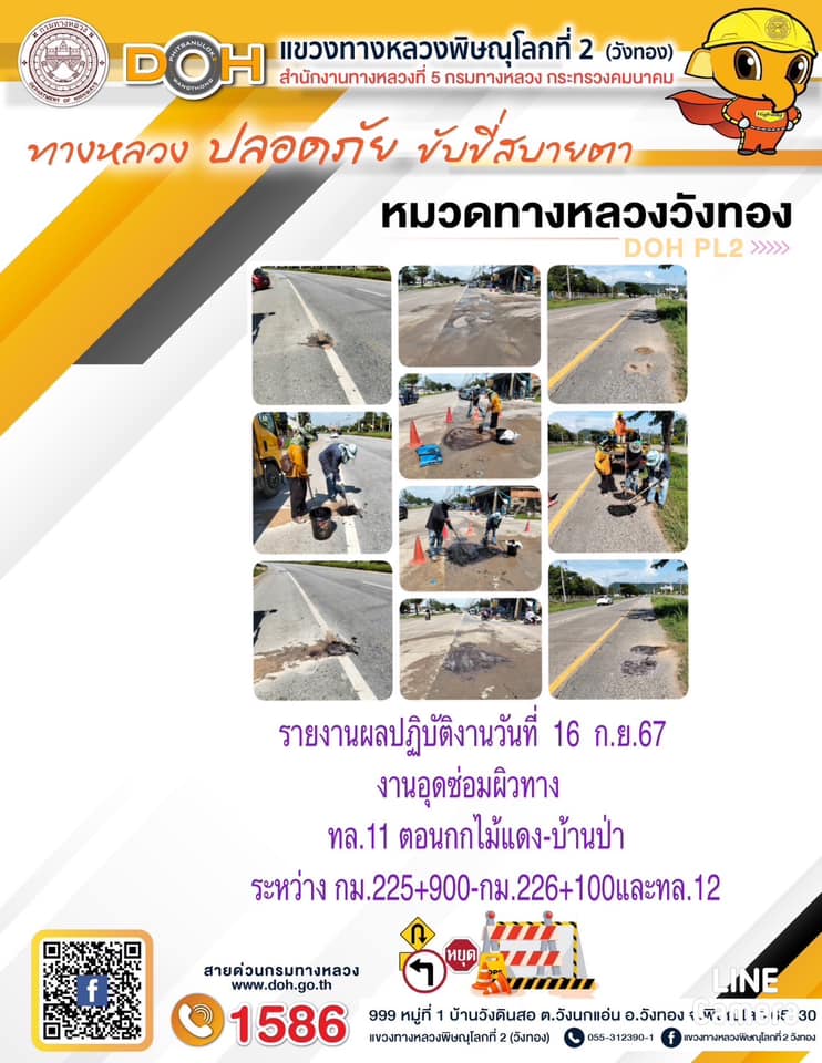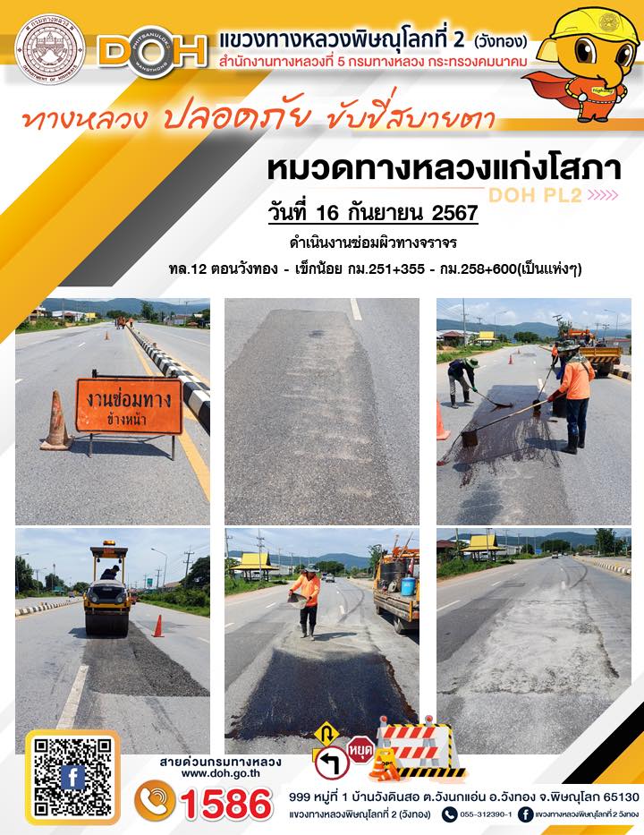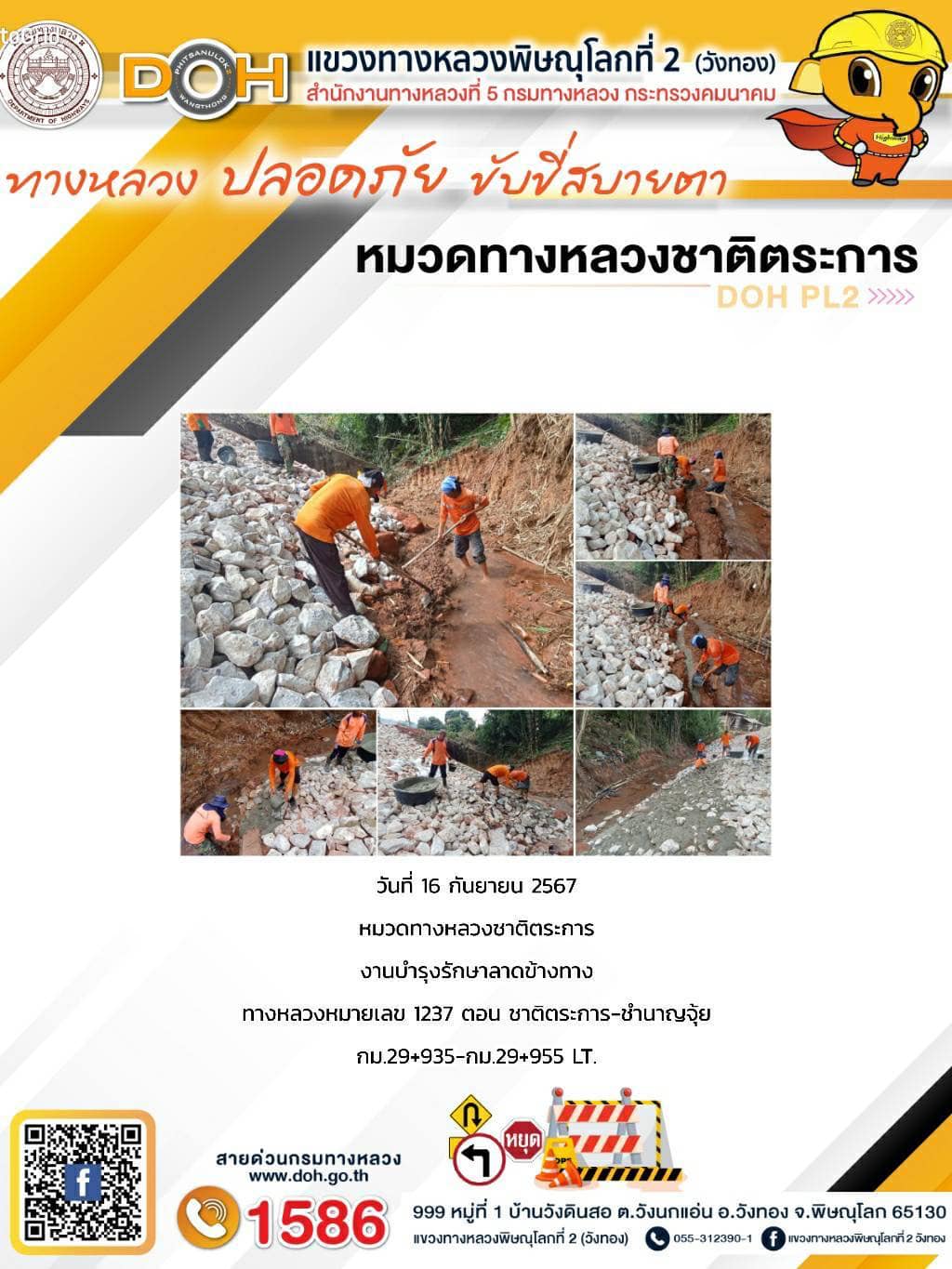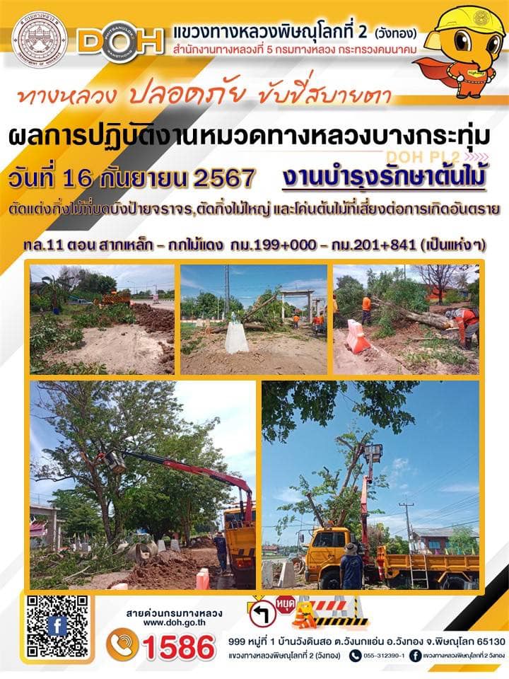 การปฏิบัติงานของ หมวดทางหลวง และ หน่วยงานในสังกัด เพื่ออำนวยความสะดวก และปลอดภัยให้กับประชาชนผู้ใช้เส้นทาง ประจำ วันจันทร์ ที่ 16 กันยายน 2567