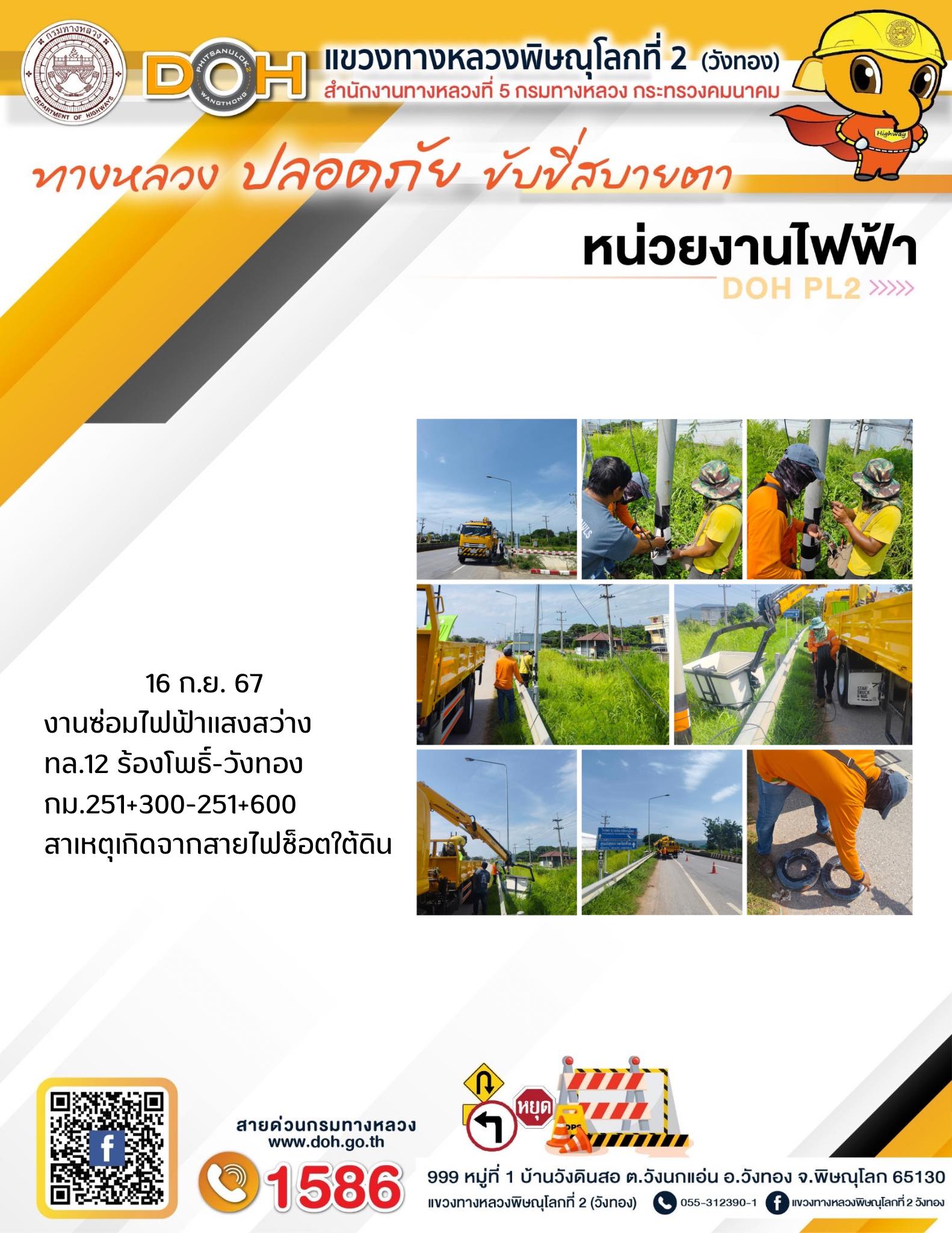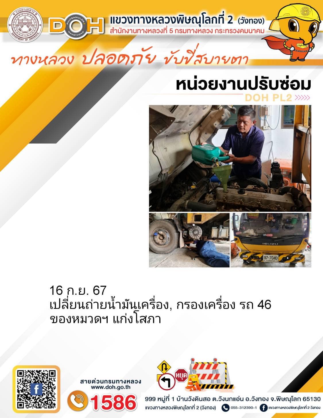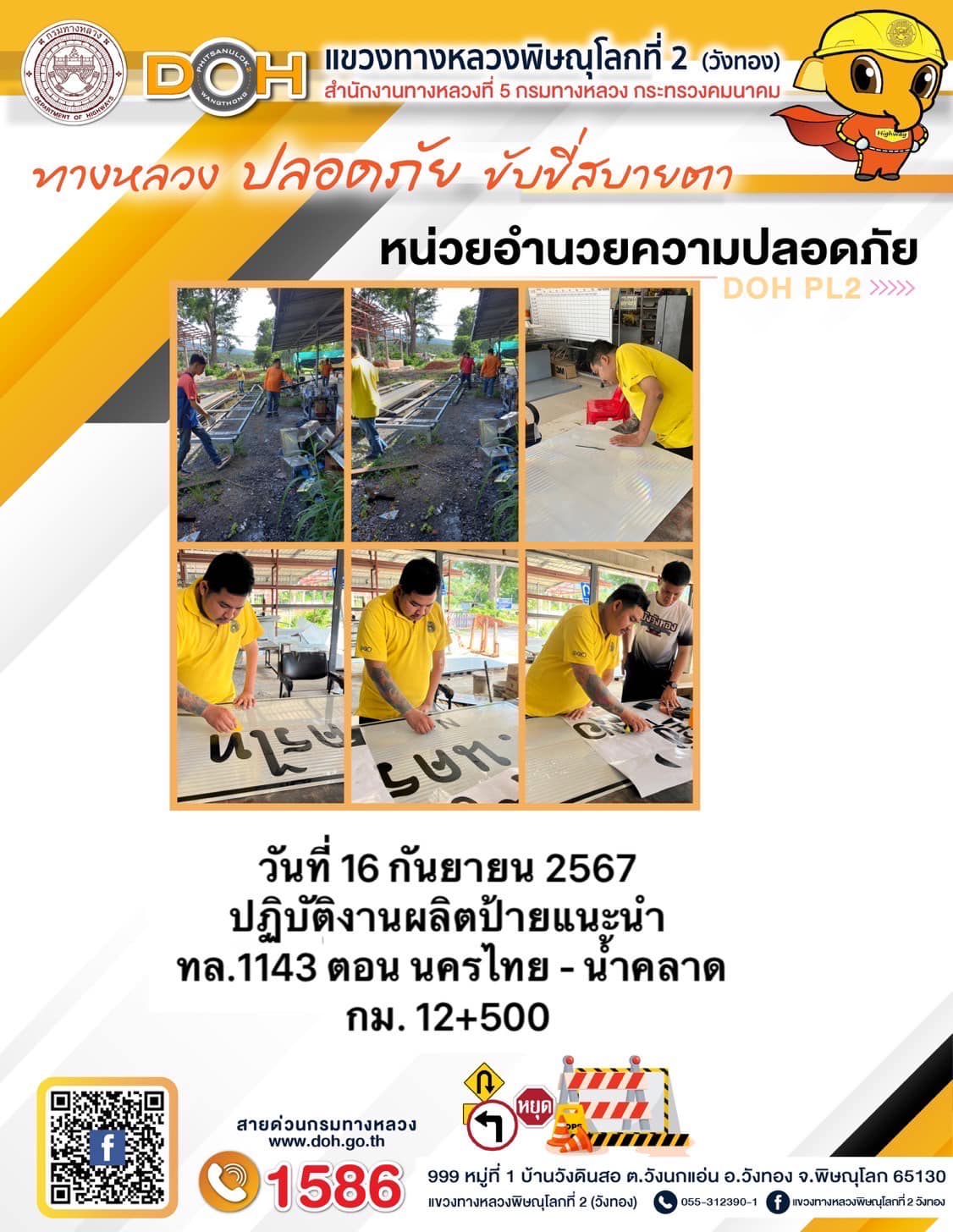 การปฏิบัติงานของ หมวดทางหลวง และ หน่วยงานในสังกัด เพื่ออำนวยความสะดวก และปลอดภัยให้กับประชาชนผู้ใช้เส้นทาง ประจำ วันจันทร์ ที่ 16 กันยายน 2567