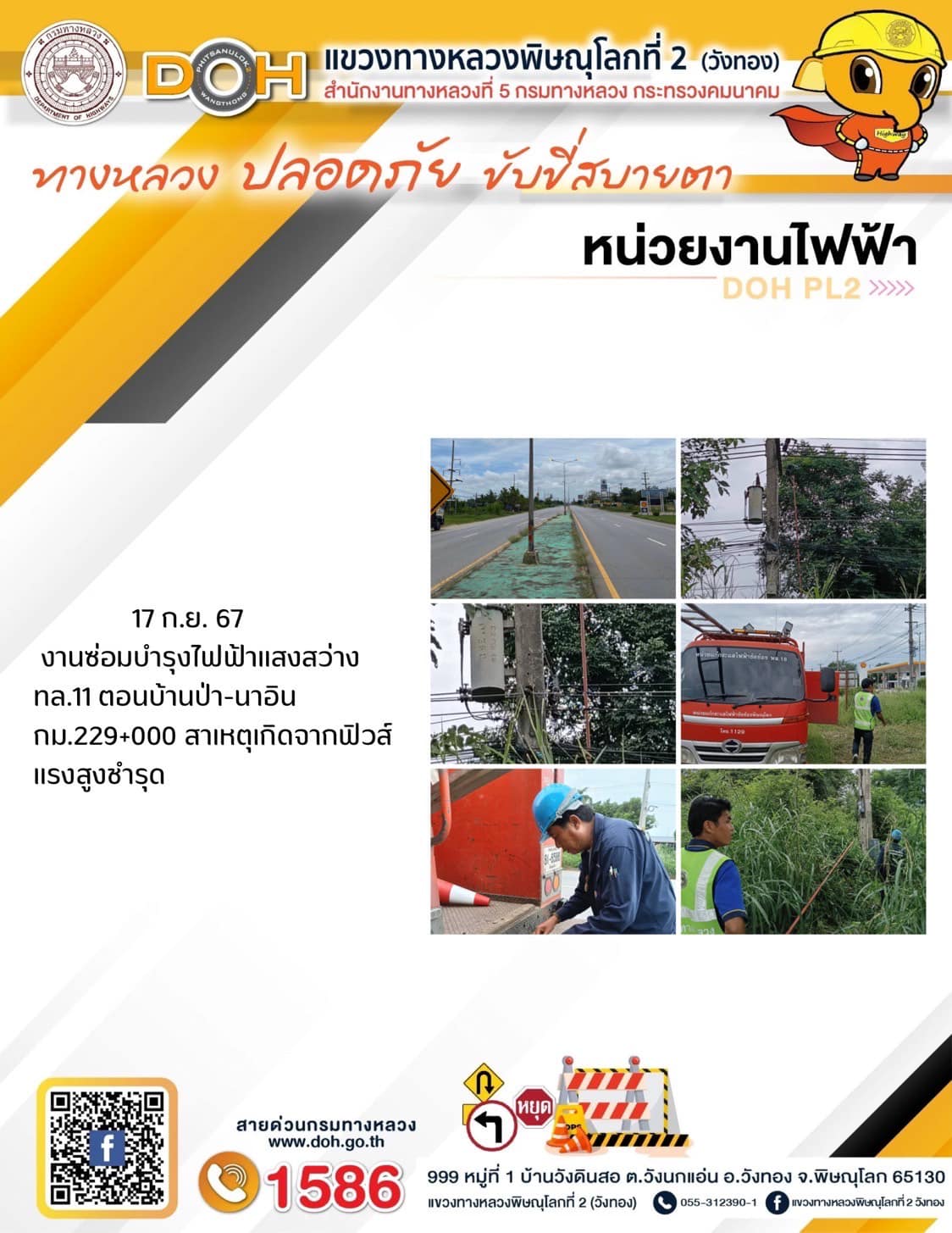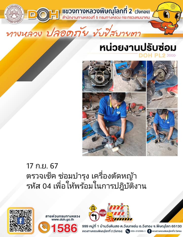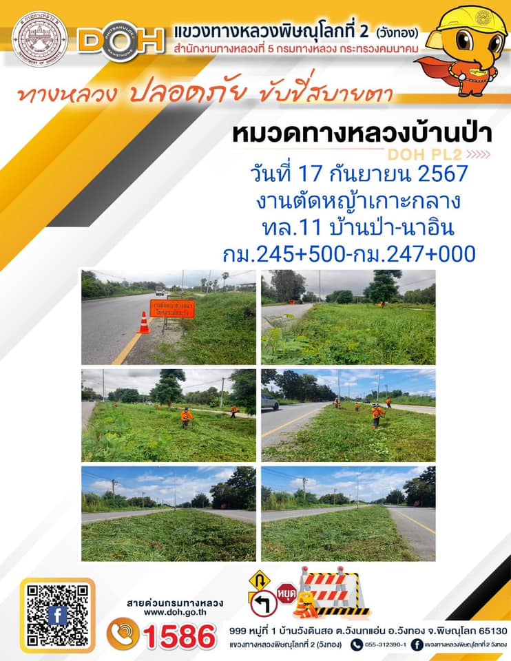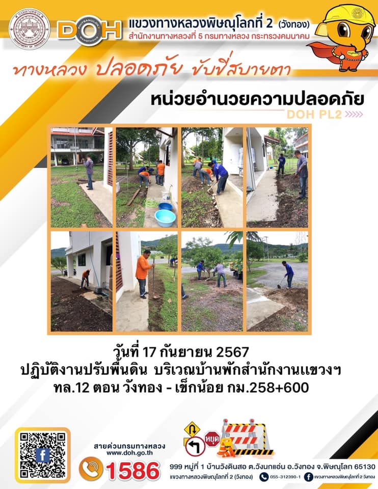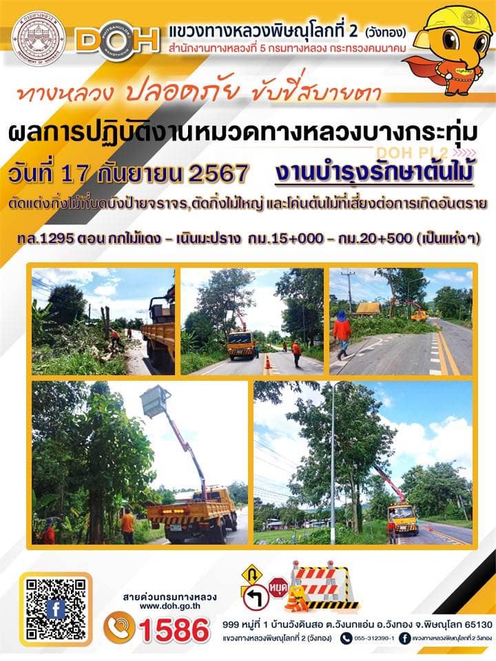การปฏิบัติงานของ หมวดทางหลวง และ หน่วยงานในสังกัด เพื่ออำนวยความสะดวก และปลอดภัยให้กับประชาชนผู้ใช้เส้นทาง ประจำ วันอังคารที่ 17 กันยายน 2567