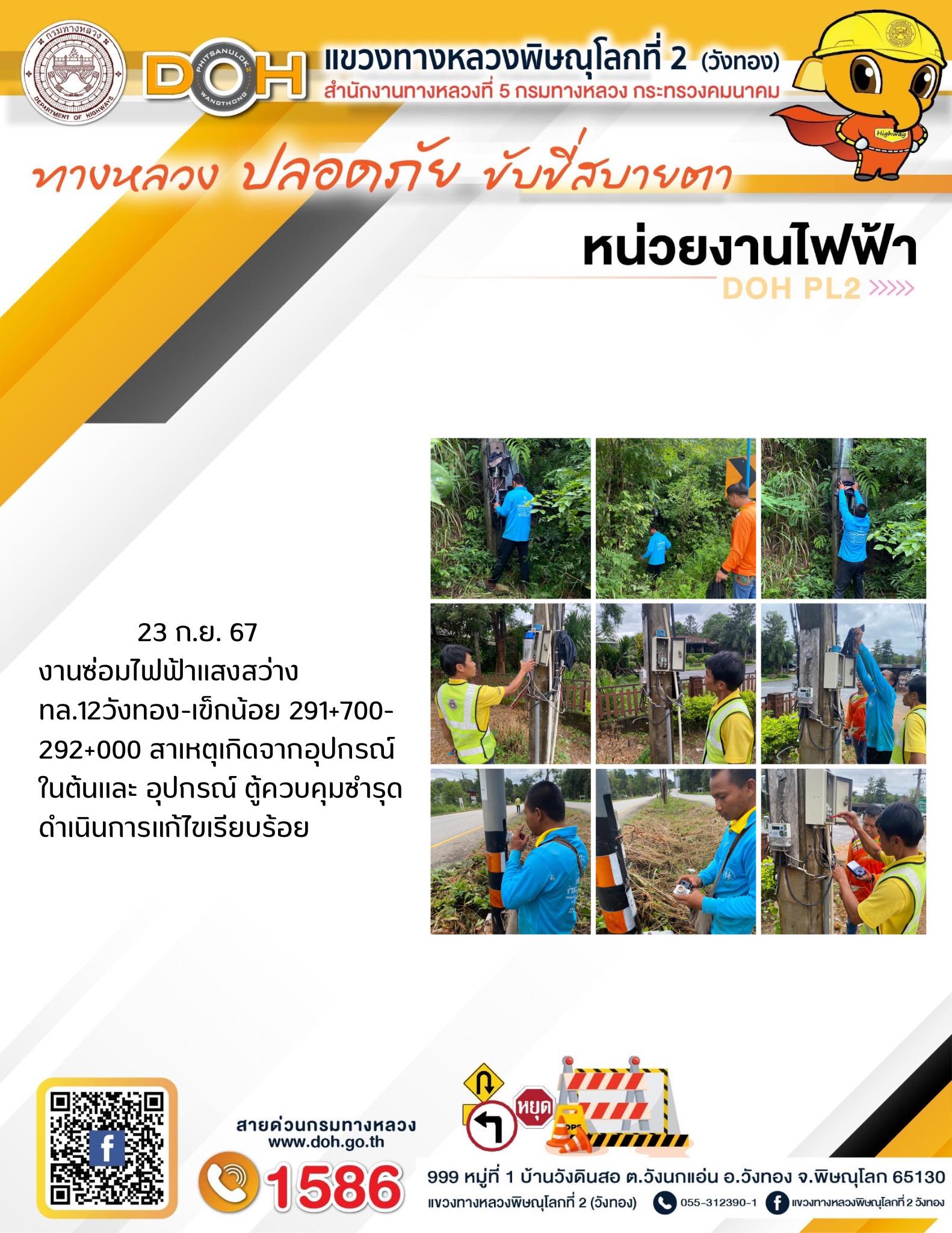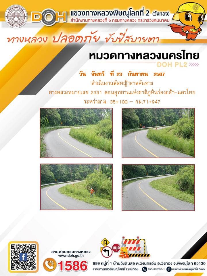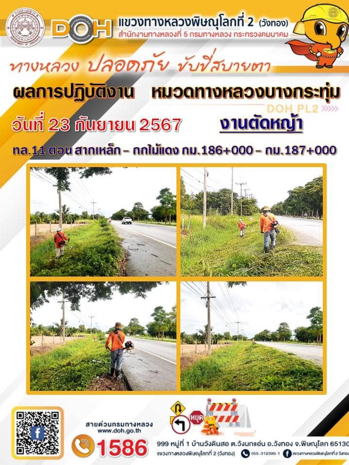 การปฏิบัติงานของ หมวดทางหลวง และ หน่วยงานในสังกัด เพื่ออำนวยความสะดวก และปลอดภัยให้กับประชาชนผู้ใช้เส้นทาง ประจำ วันจันทร์ ที่ 23 กันยายน 2567