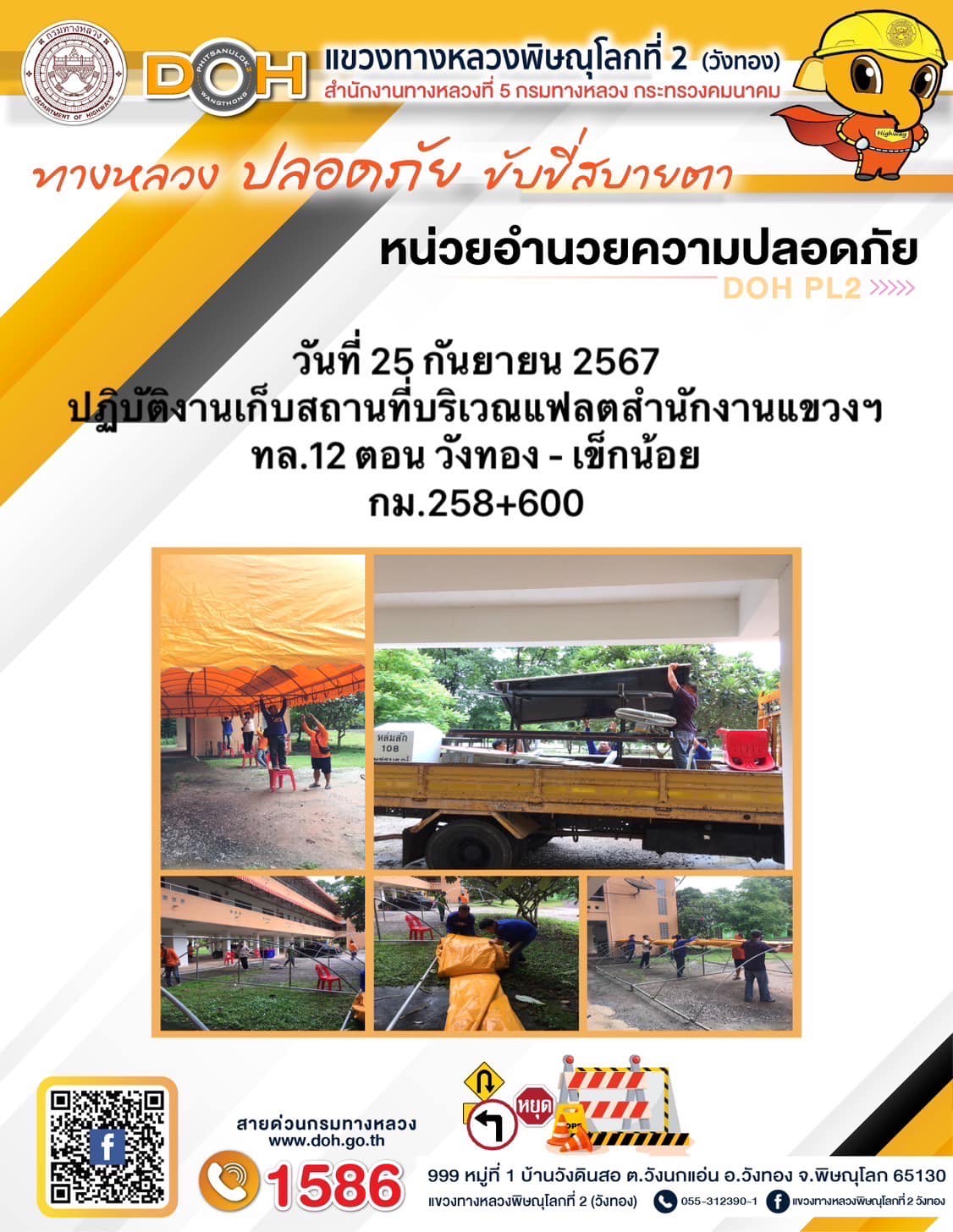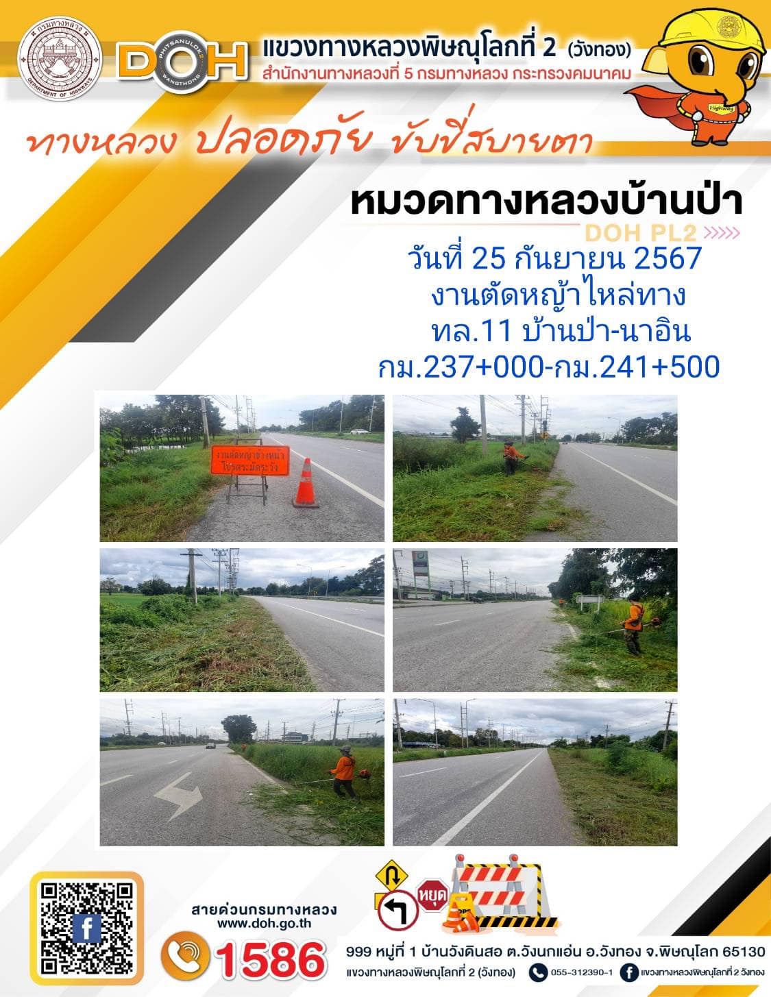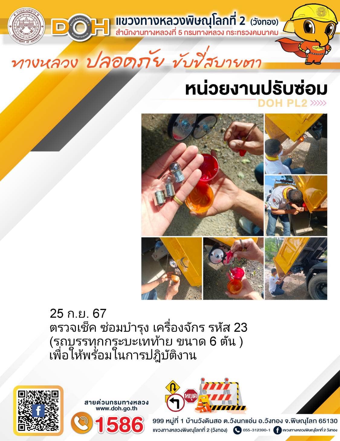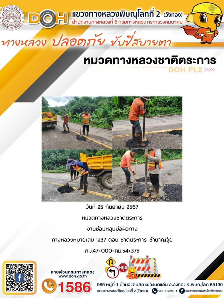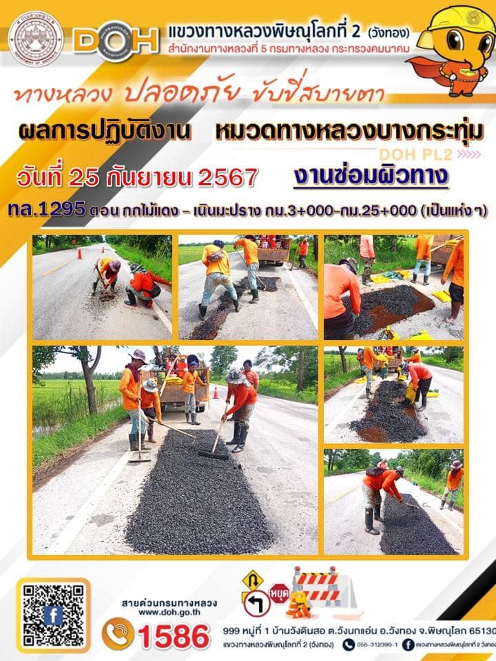 การปฏิบัติงานของ หมวดทางหลวง และ หน่วยงานในสังกัด เพื่ออำนวยความสะดวก และปลอดภัยให้กับประชาชนผู้ใช้เส้นทาง ประจำ วันพุธ ที่ 25 กันยายน 2567