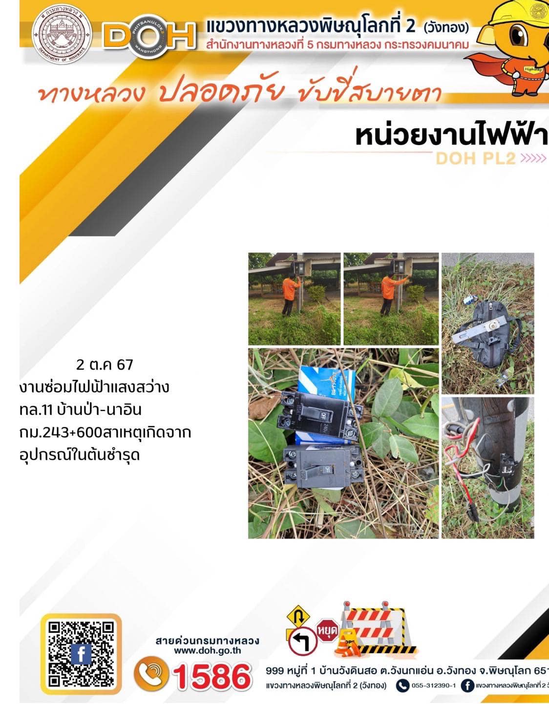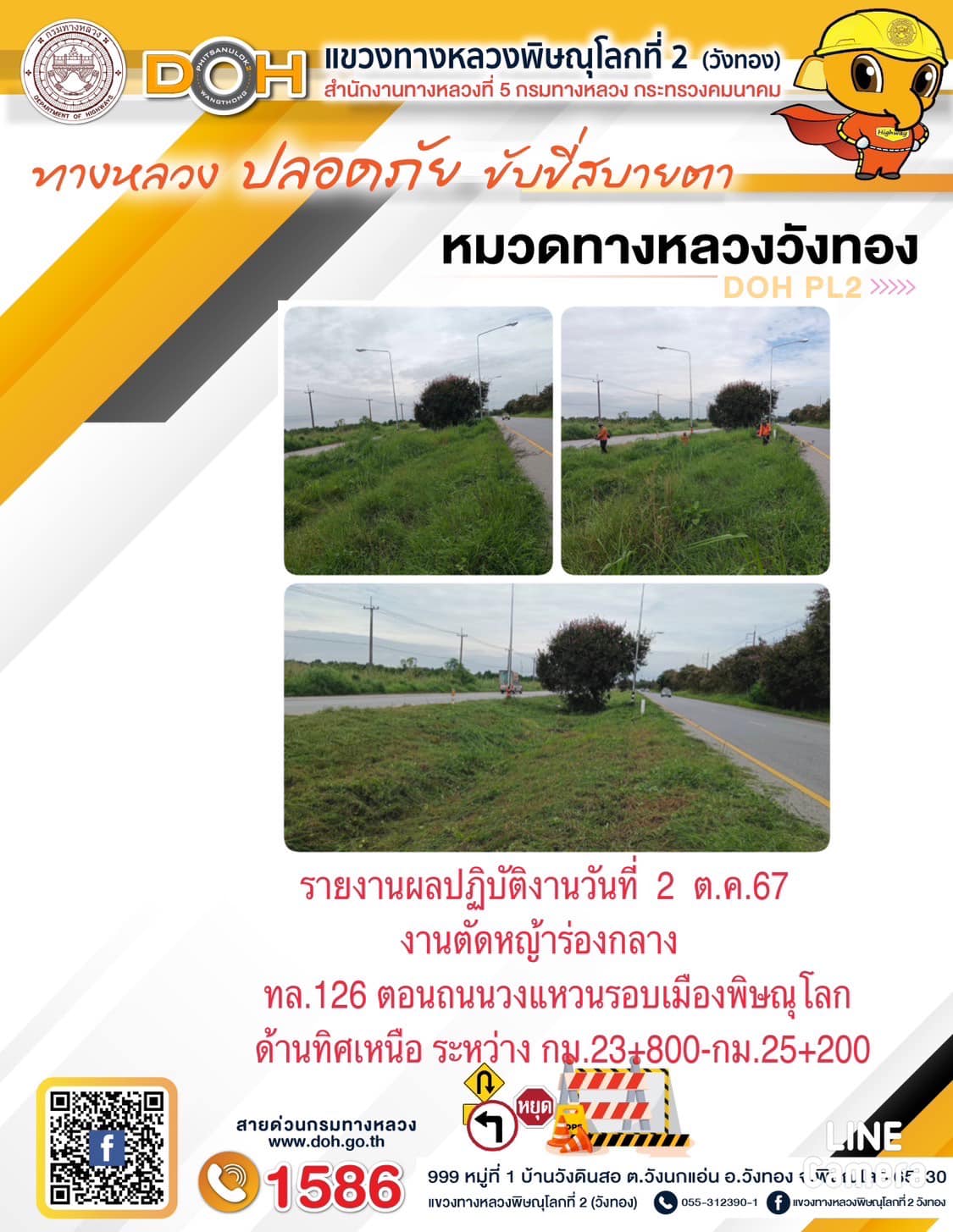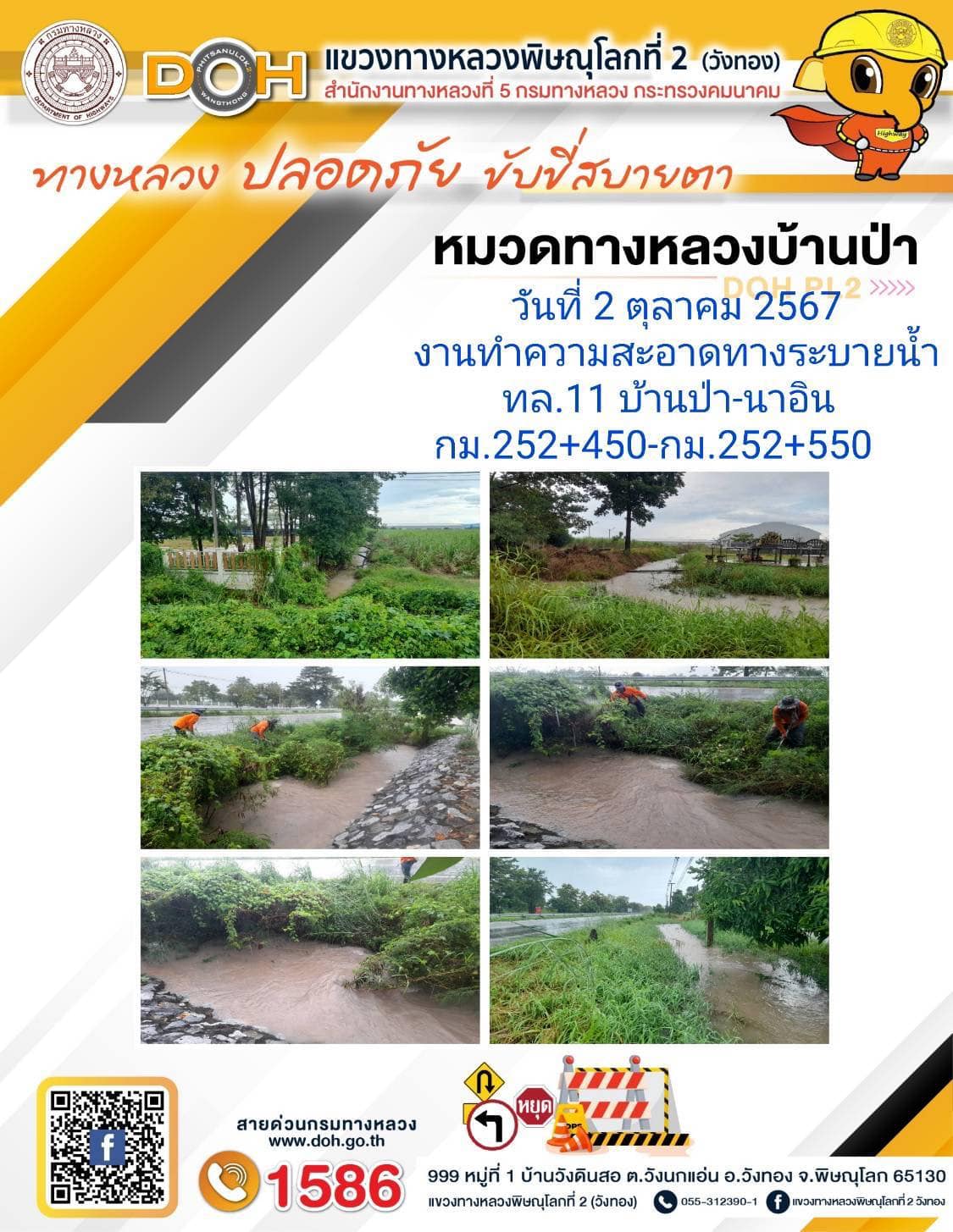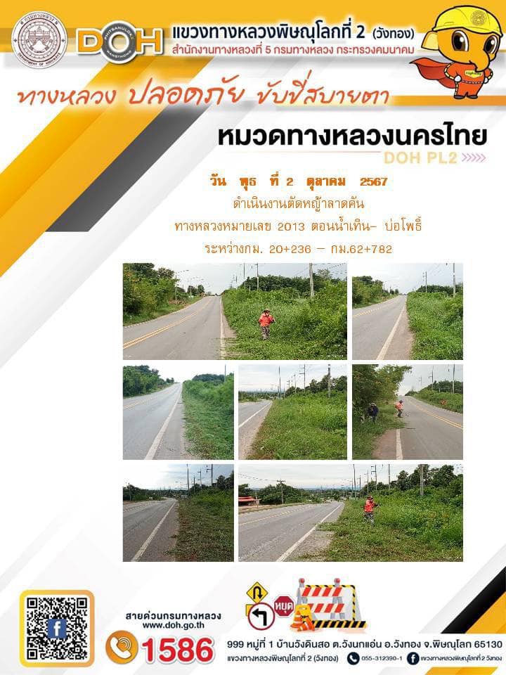 การปฏิบัติงานของ หมวดทางหลวง และ หน่วยงานในสังกัด เพื่ออำนวยความสะดวก และปลอดภัยให้กับประชาชนผู้ใช้เส้นทาง ประจำ วันพุธ ที่ 2 ตุลาคม 2567