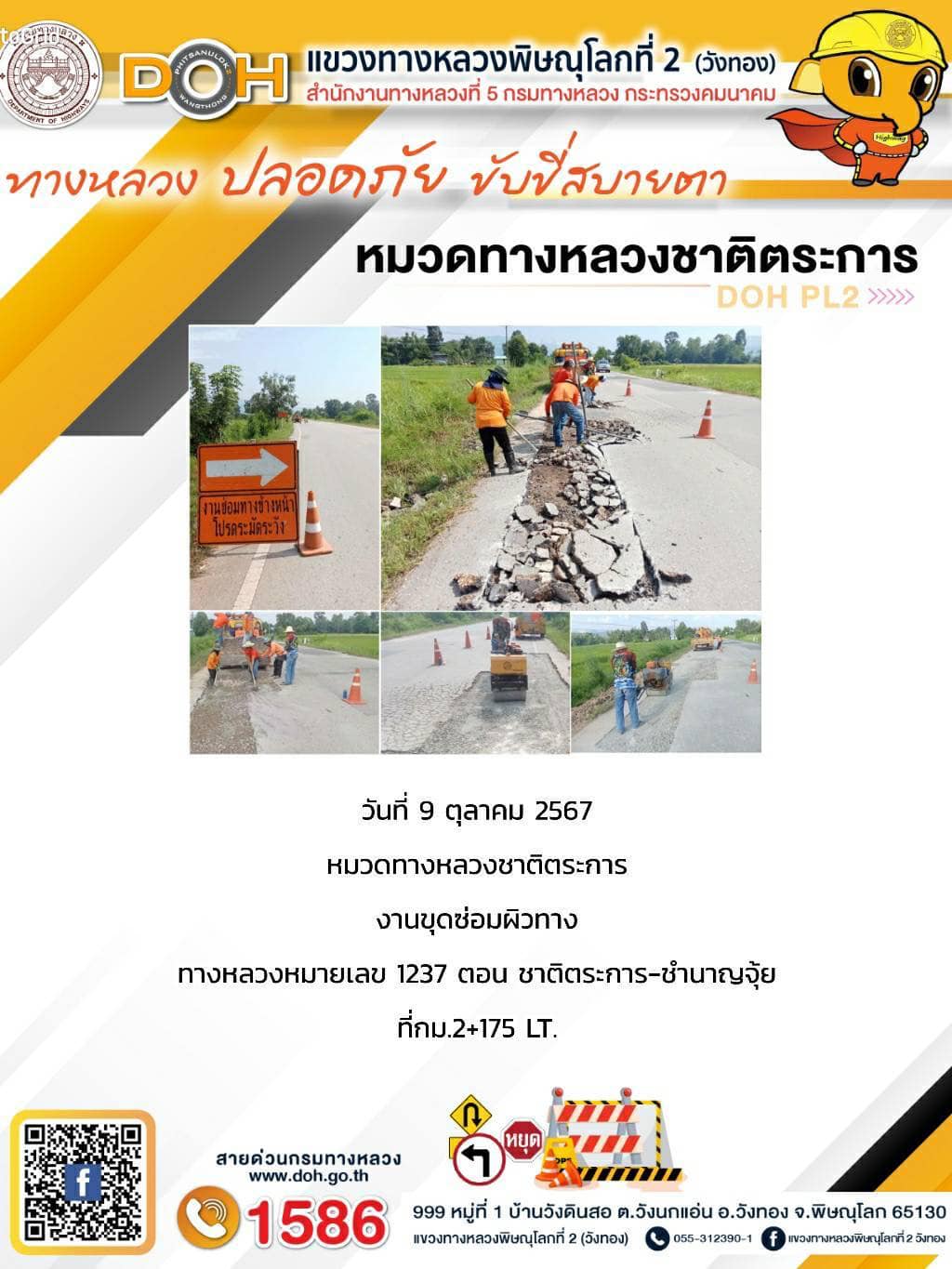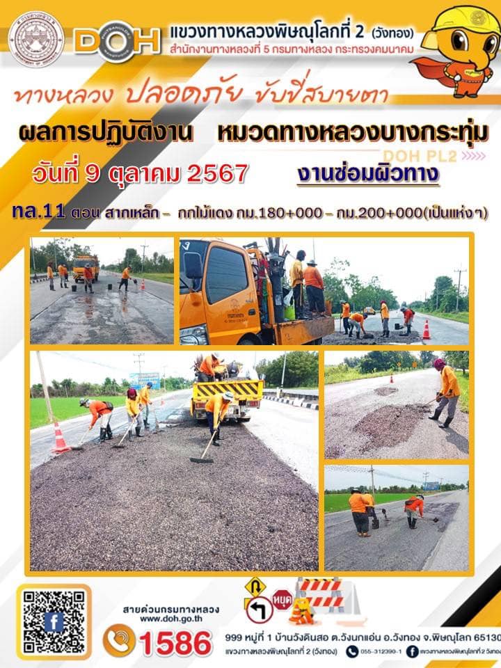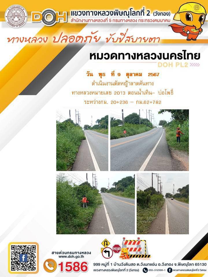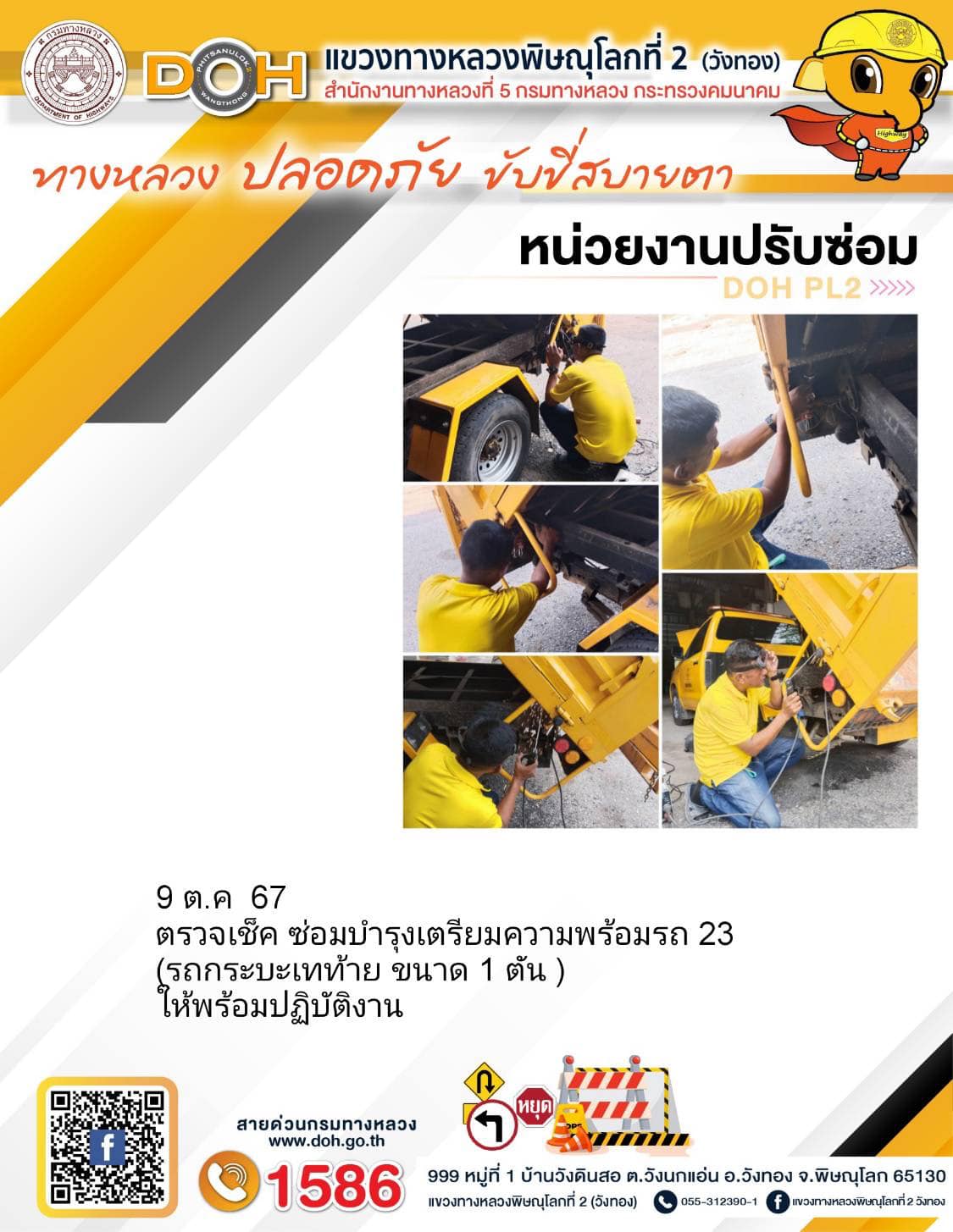 การปฏิบัติงานของ หมวดทางหลวง และ หน่วยงานในสังกัด เพื่ออำนวยความสะดวก และปลอดภัยให้กับประชาชนผู้ใช้เส้นทาง ประจำ วันพุธ ที่ 9 ตุลาคม 2567