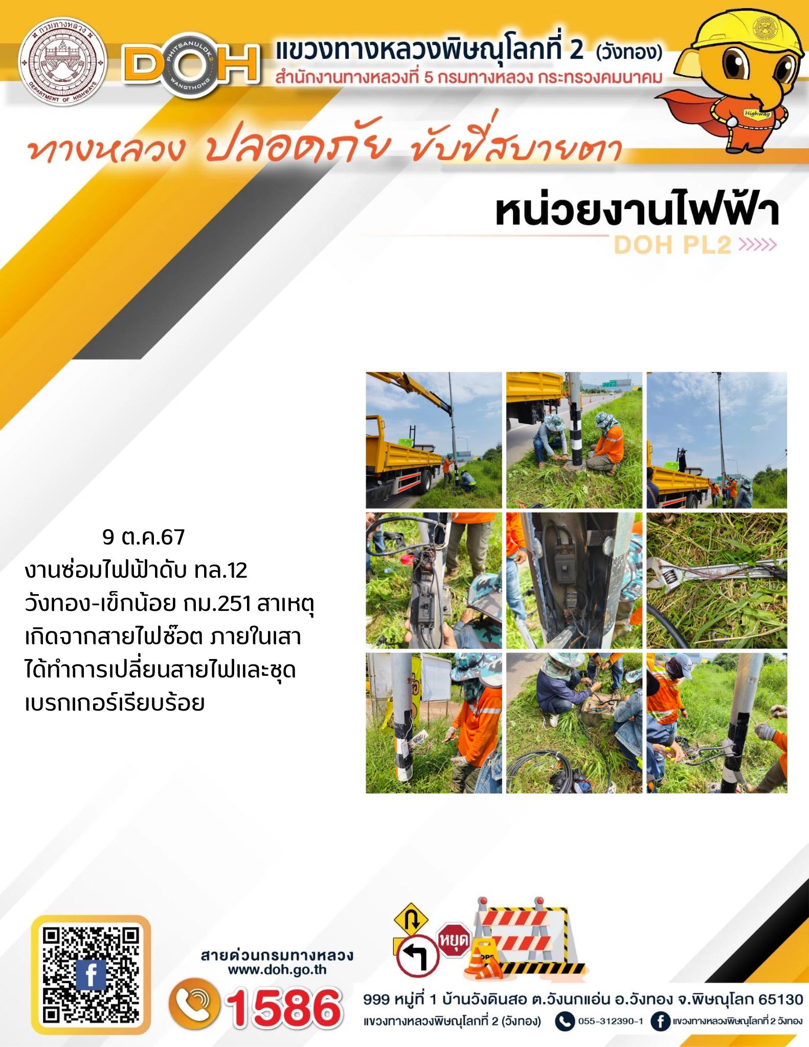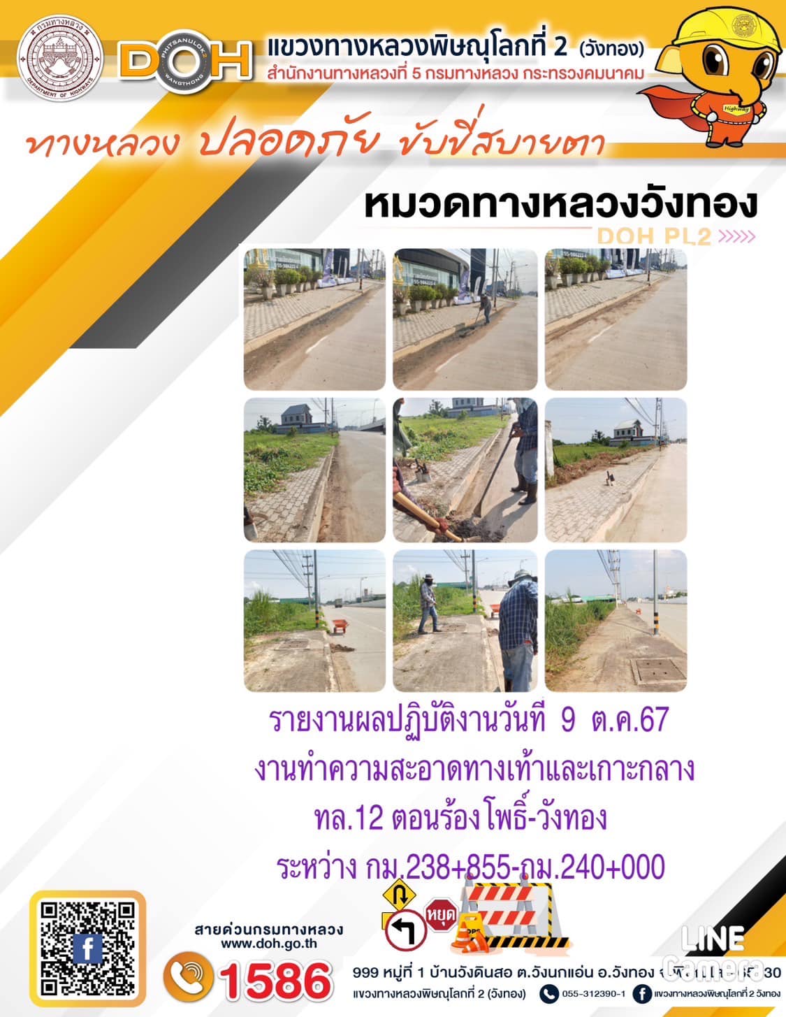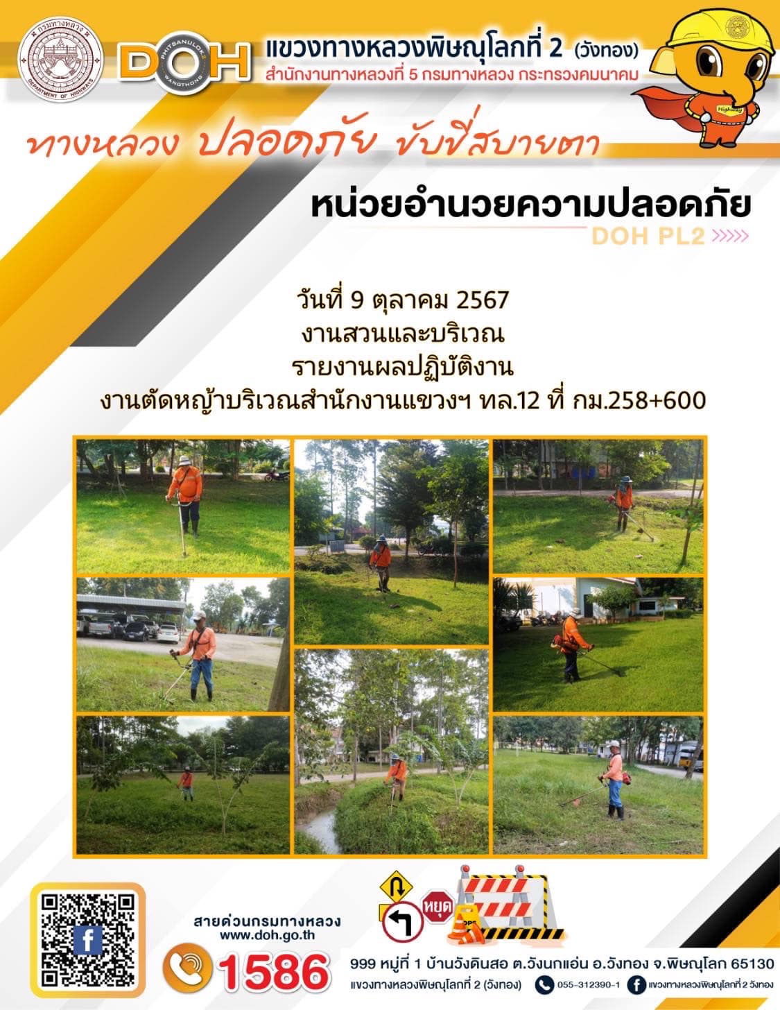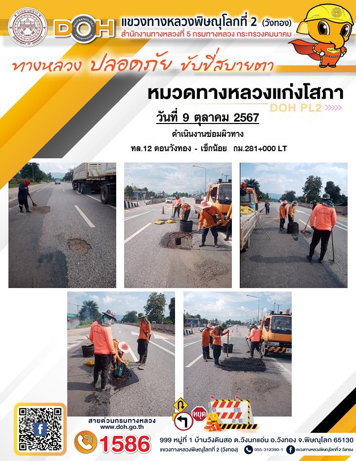 การปฏิบัติงานของ หมวดทางหลวง และ หน่วยงานในสังกัด เพื่ออำนวยความสะดวก และปลอดภัยให้กับประชาชนผู้ใช้เส้นทาง ประจำ วันพุธ ที่ 9 ตุลาคม 2567
