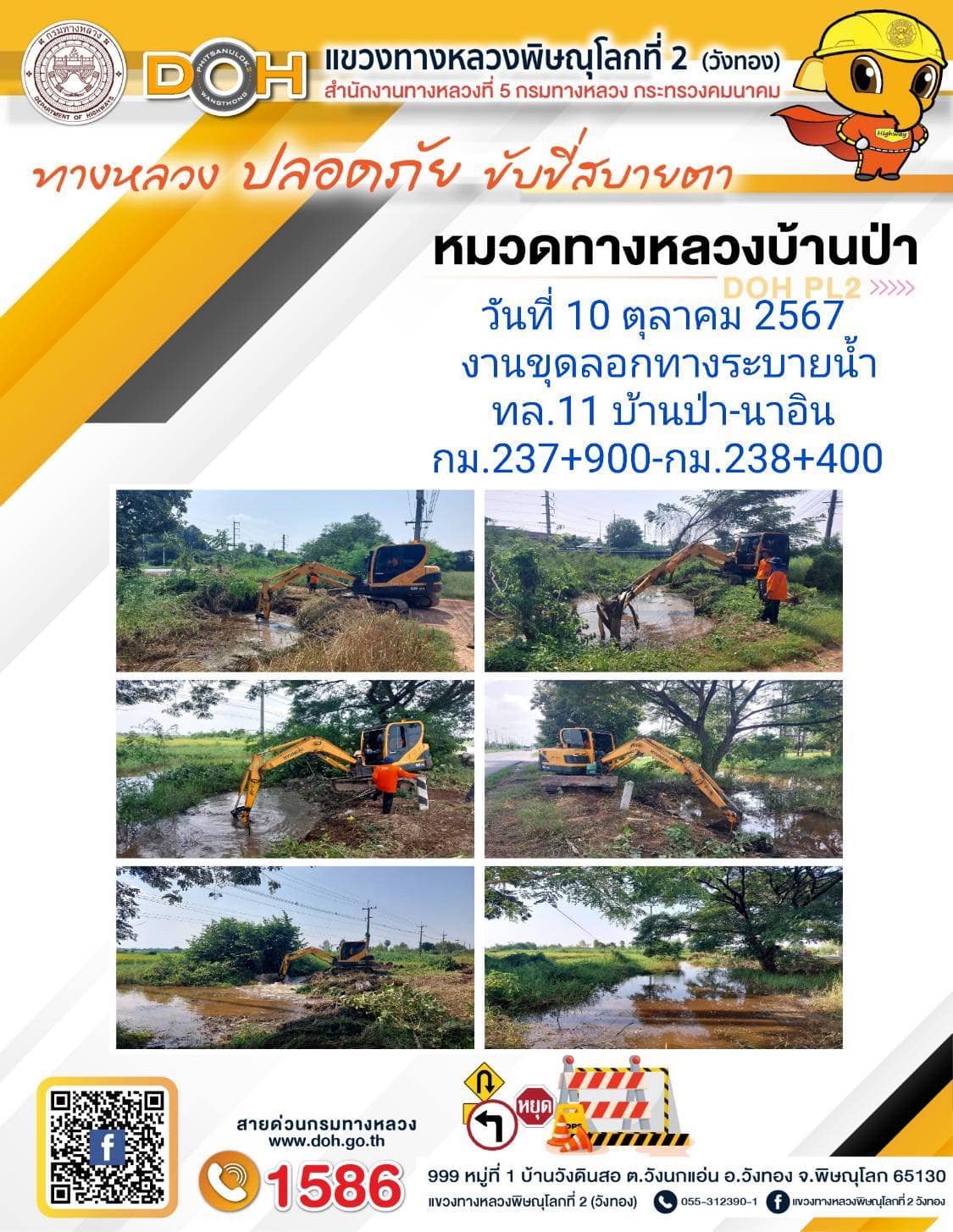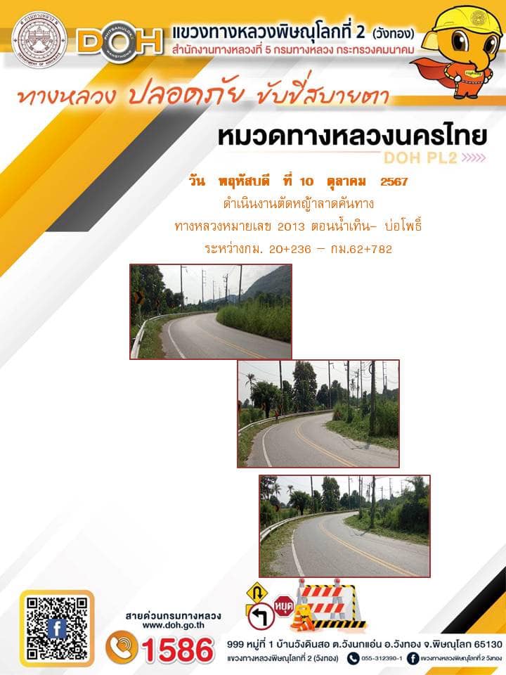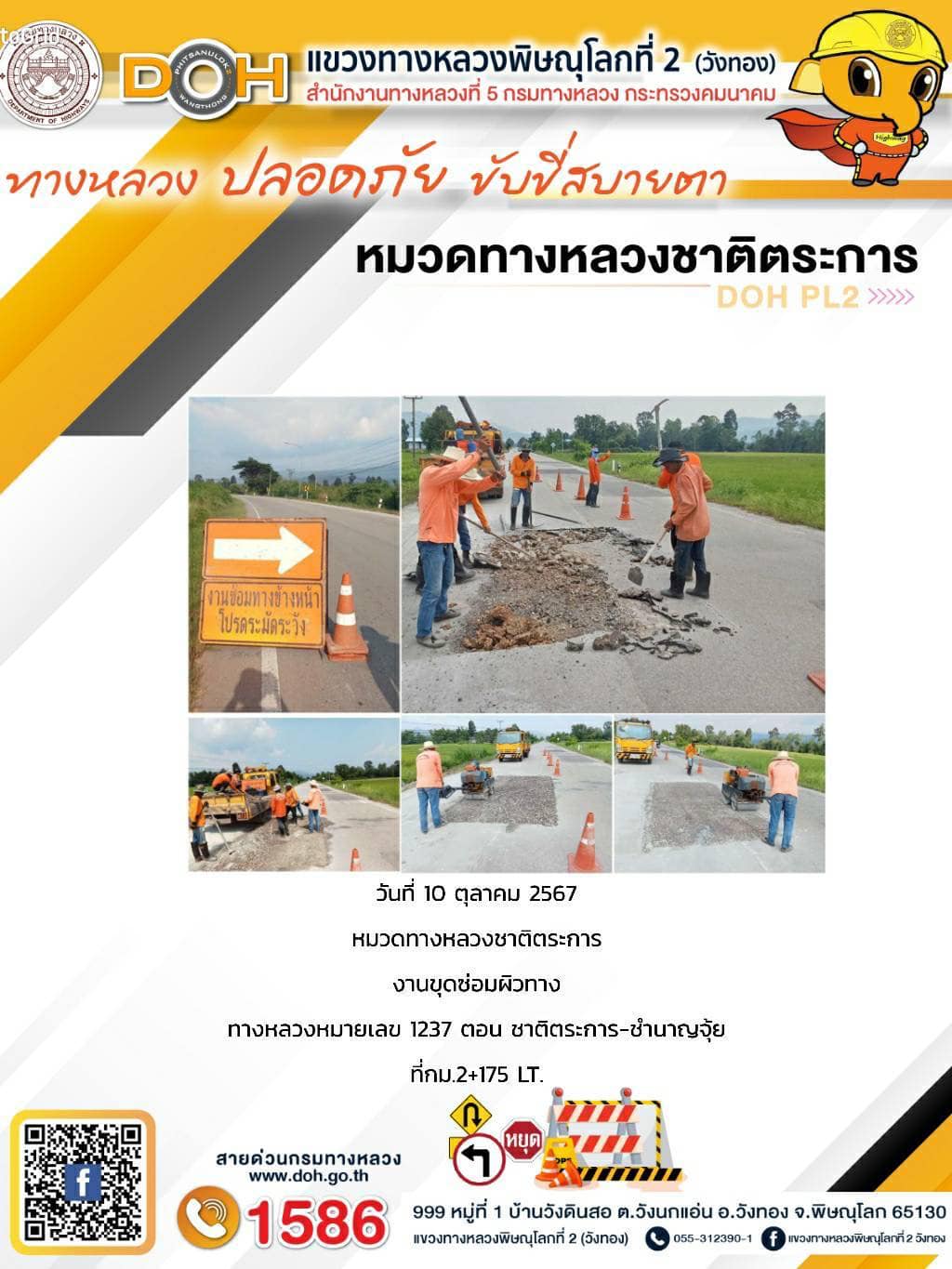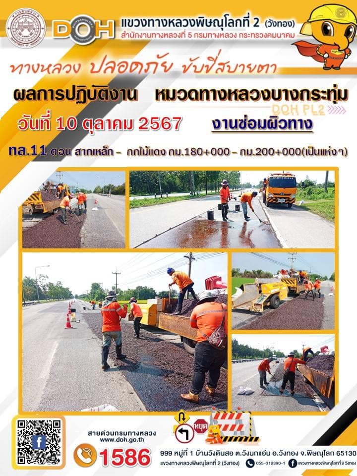 การปฏิบัติงานของ หมวดทางหลวง และ หน่วยงานในสังกัด เพื่ออำนวยความสะดวก และปลอดภัยให้กับประชาชนผู้ใช้เส้นทาง ประจำ วันพฤหัสบดี ที่ 10 ตุลาคม 2567